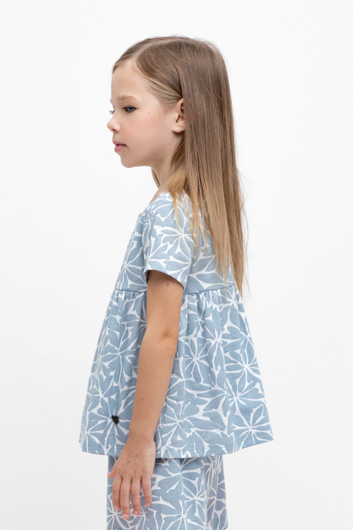 Футболка с кокеткой для девочки из высококачественного набивного трикотажного полотна. Оригинальная набивка выполнена из стойких текстильных красителей