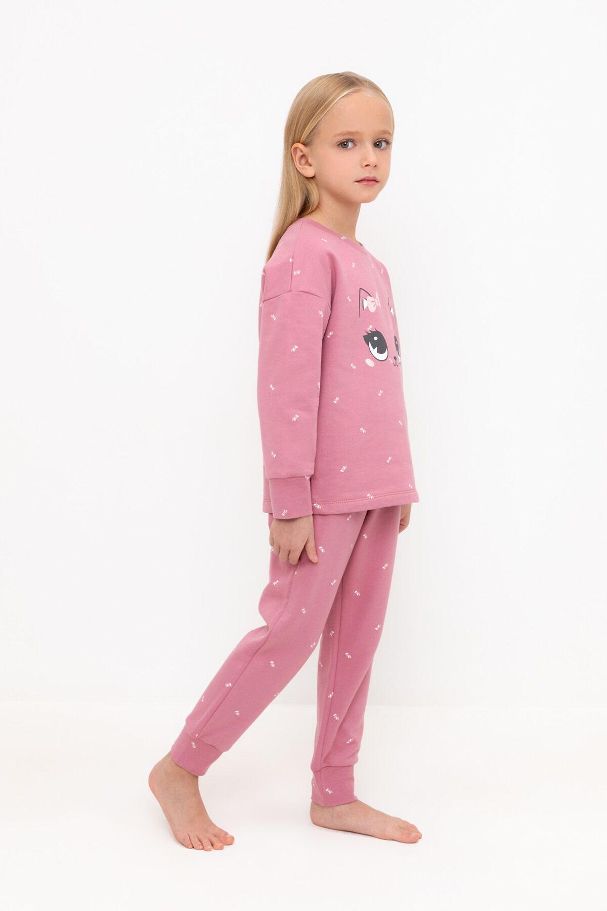 Трикотажный пижамный комплект из футера с начёсом, произведённого из натурального хлопка. У джемпера длинные рукава со спущенными плечами и эластичная мягкая горловина и манжеты. Брюки с удобным поясом на резинке, внизу манжеты. Оригинальная набивка и принт выполнены из стойких, гипоаллергенных текстильных красителей. Все трикотажные полотна производятся в соответствии с нормами Швейцарского сертификата ЭкоТекс.