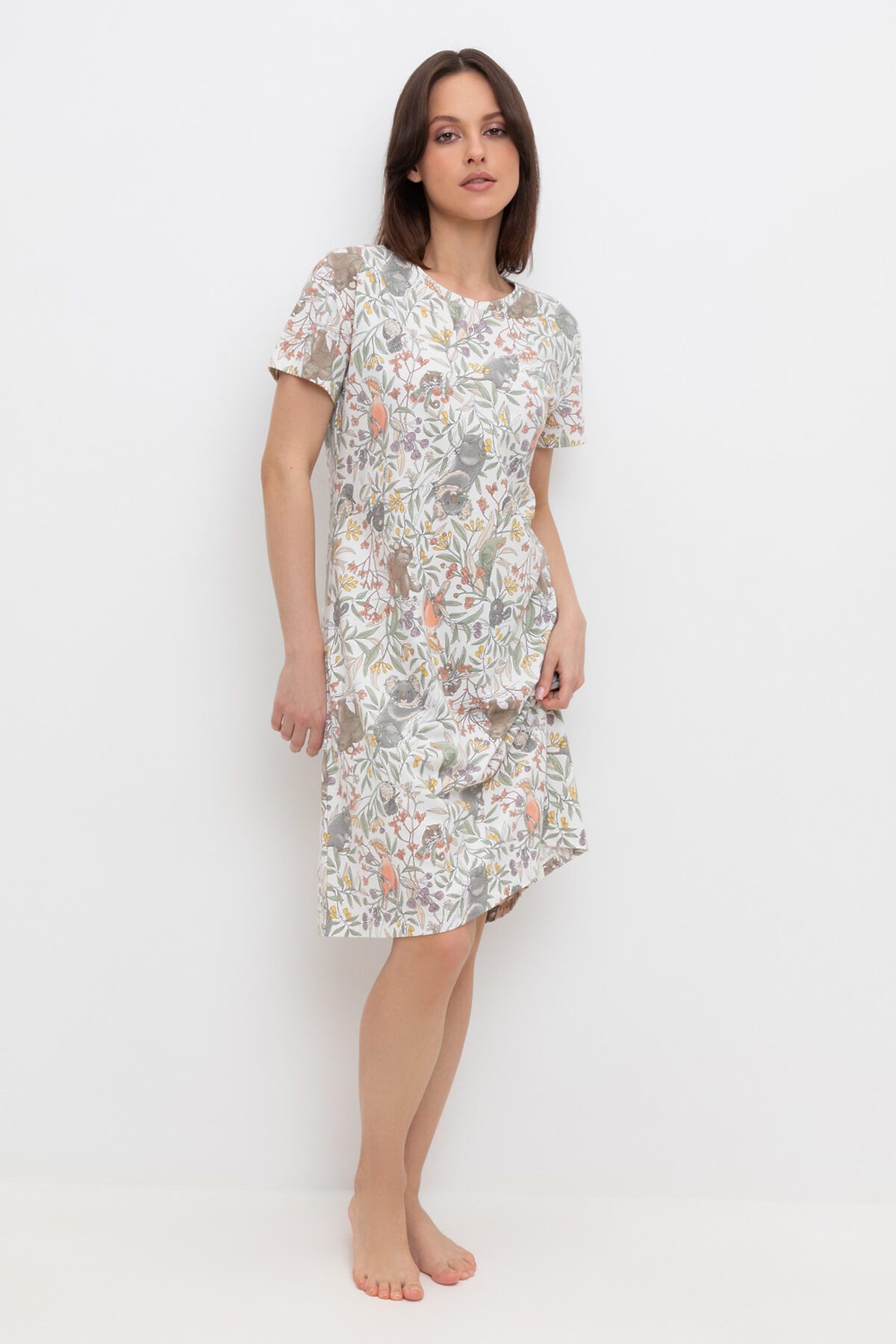 Уютная удлиненная сорочка с короткими рукавами из 100% натурального хлопка. Выполнена из набивного трикотажа супрем с нежным рисунком. Все трикотажные полотна производятся в соответствии с нормами Швейцарского сертификата ЭкоТекс. Сделано в России - 100% натуральный хлопок - гипоаллергенные красители - комфортная посадка