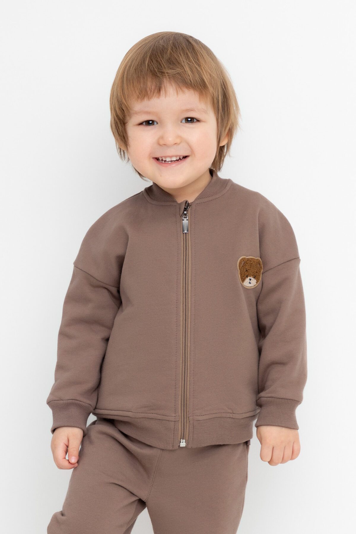 Трикотажная куртка для мальчика из футера с начесом. Манжеты и пояс из эластичного трикотажа в рубчик. В боковых швах удобные карманы.