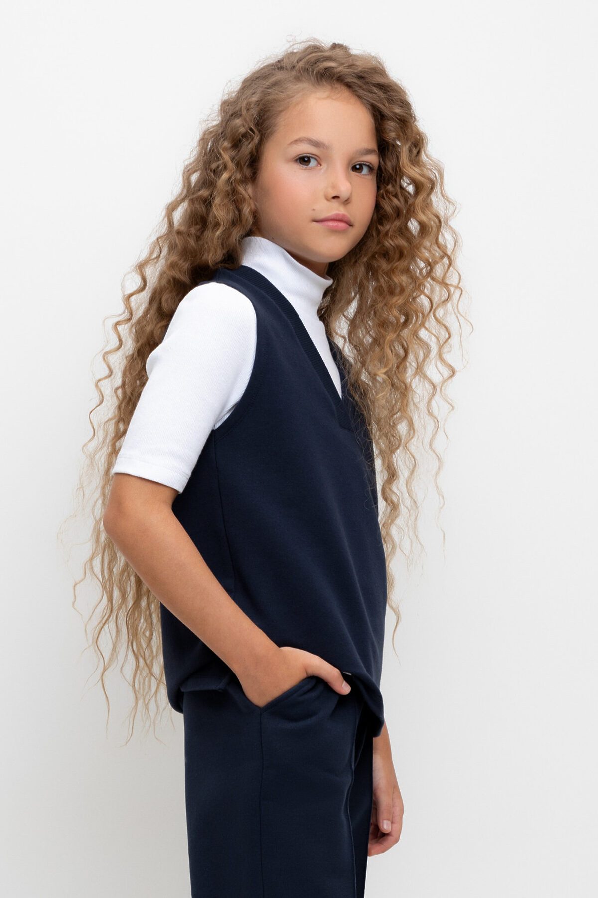 Жилет школьный для девочки. Произведен из мягкого трикотажного футера петли с добавлением эластана Все трикотажные изделия производятся в соответствии с нормами Швейцарского сертификата ЭкоТекс. Сделано в России