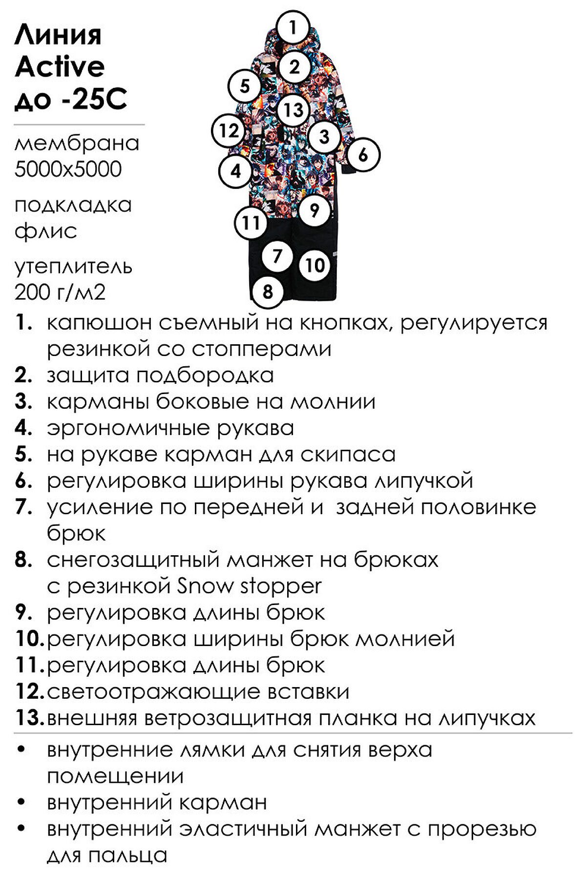 - СоставВерх: 100% Полиэстер; Мембранное покрытие 5000*5000; Подкладка: флис 100% Полиэстер 200 г, тафта 270T; Утеплитель: 200 г/м2