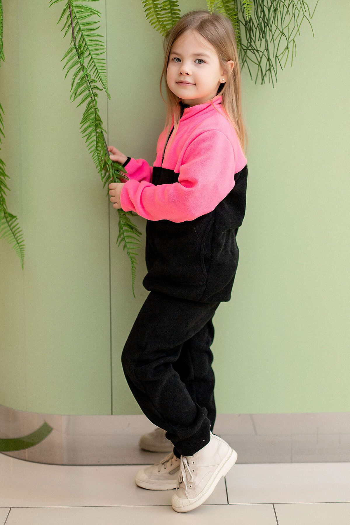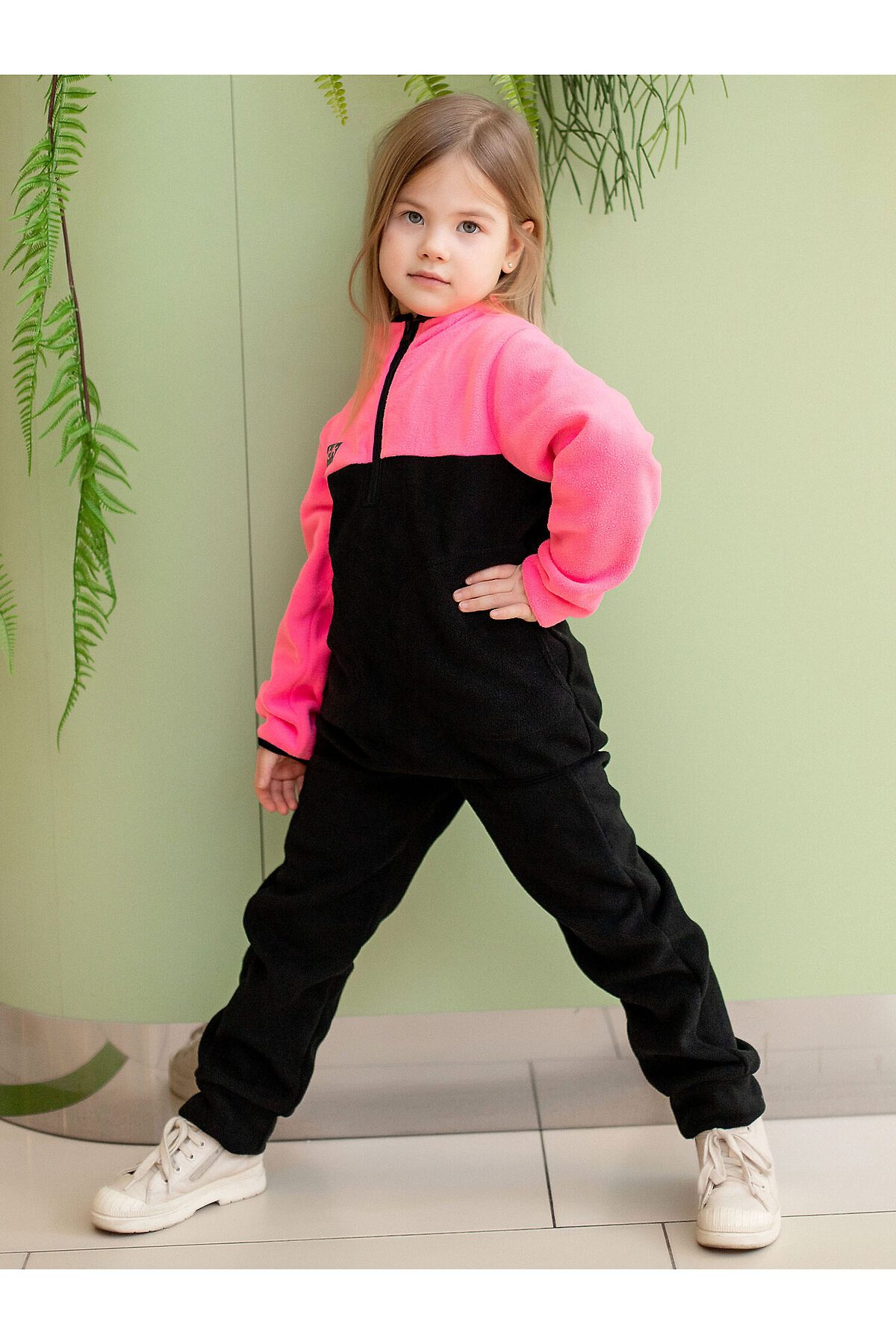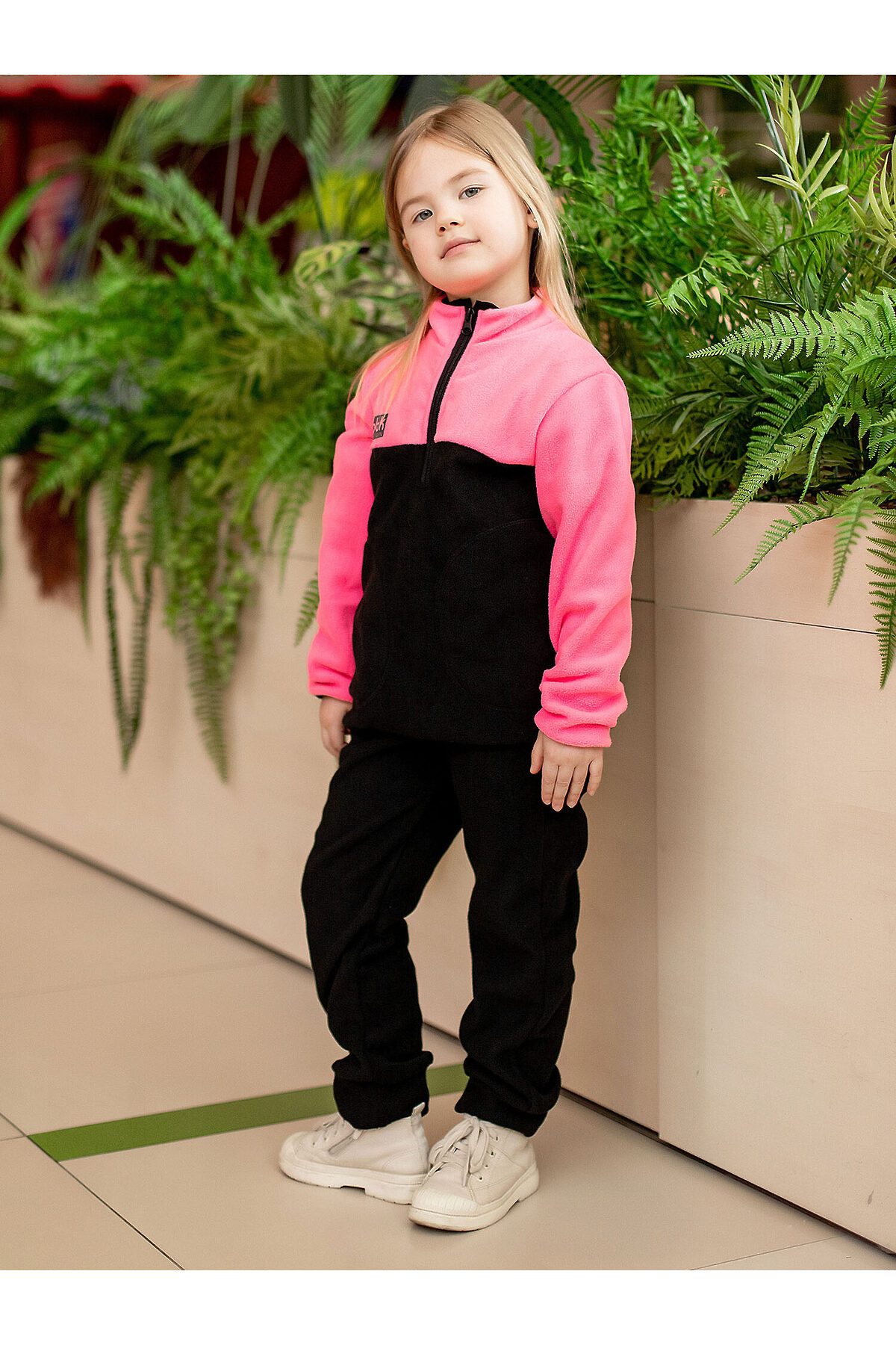 Флисовая кофта Франки детская в черно-розовой расцветке. Спереди молния и карманы, термотрансфер, светоотражающие элементы.