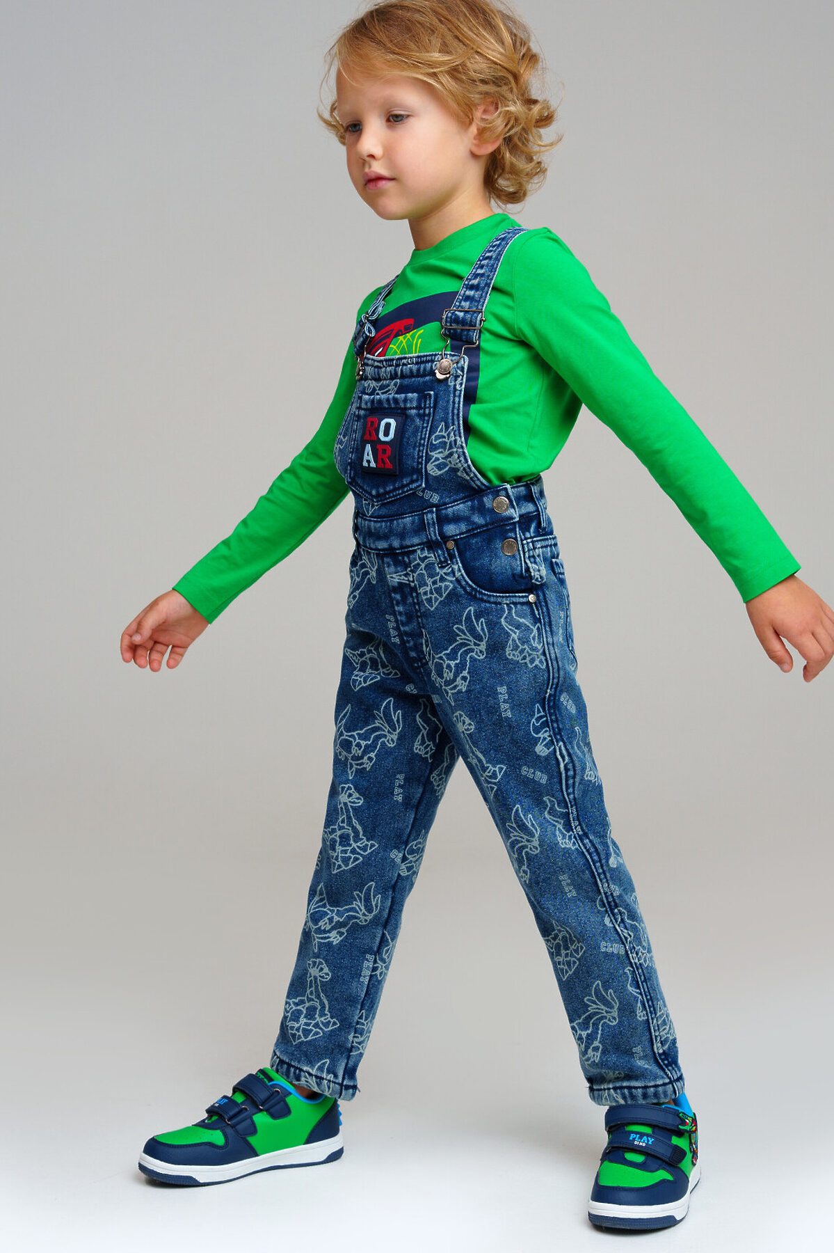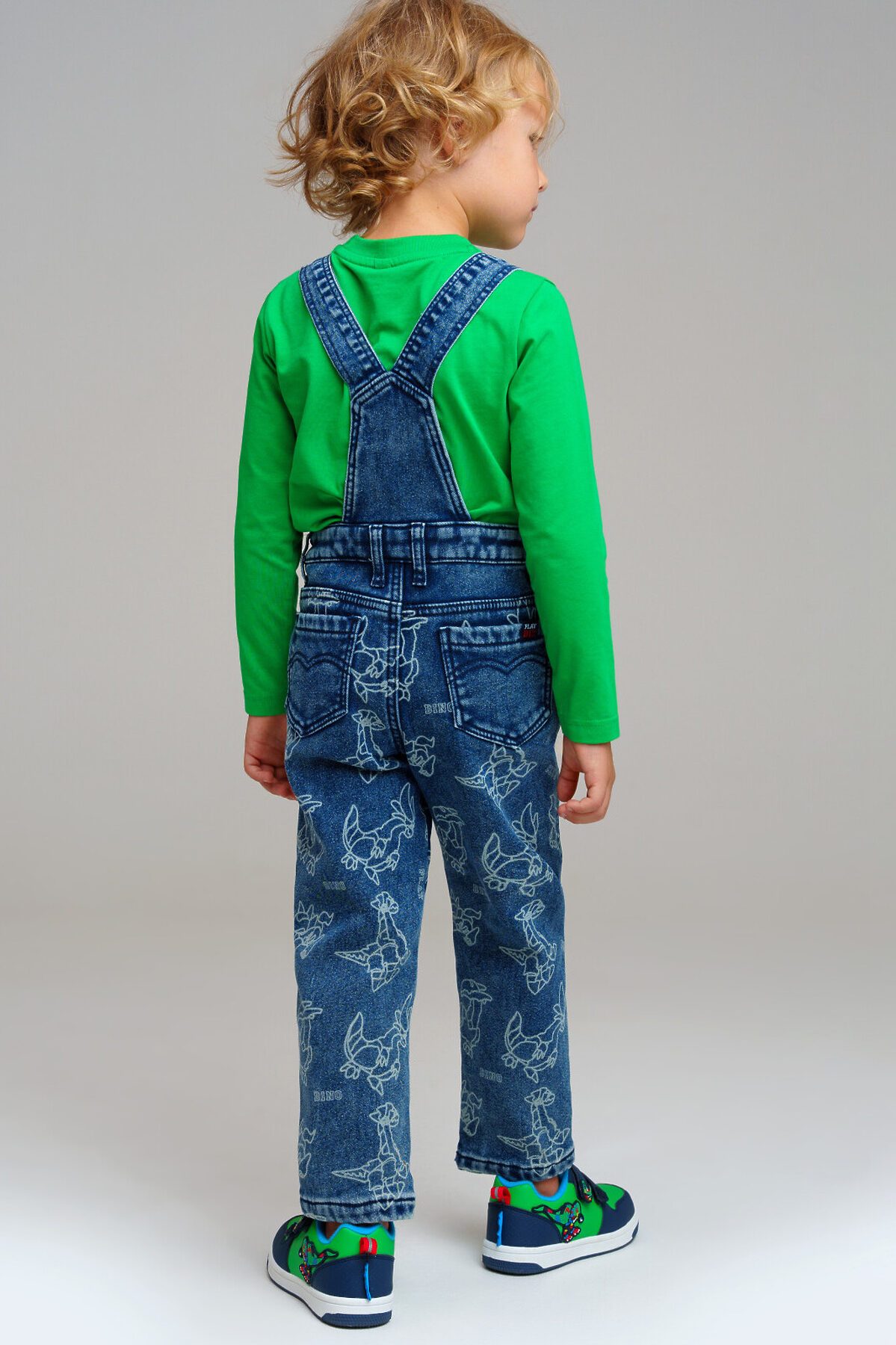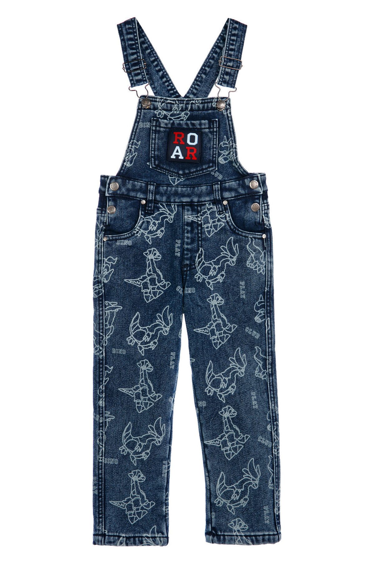 Джинсовый детский комбинезон comfort fit (свободная посадка) для мальчика. Модный джинсовый комбинезон на кнопках утепленный флисом. Внутренняя утяжка. Модель из капсульной коллекции DINO CLUB (ДИНО КЛАБ). Соберите полный образ в едином стиле! Комбинезон будет актуален для детского сада, в садик.