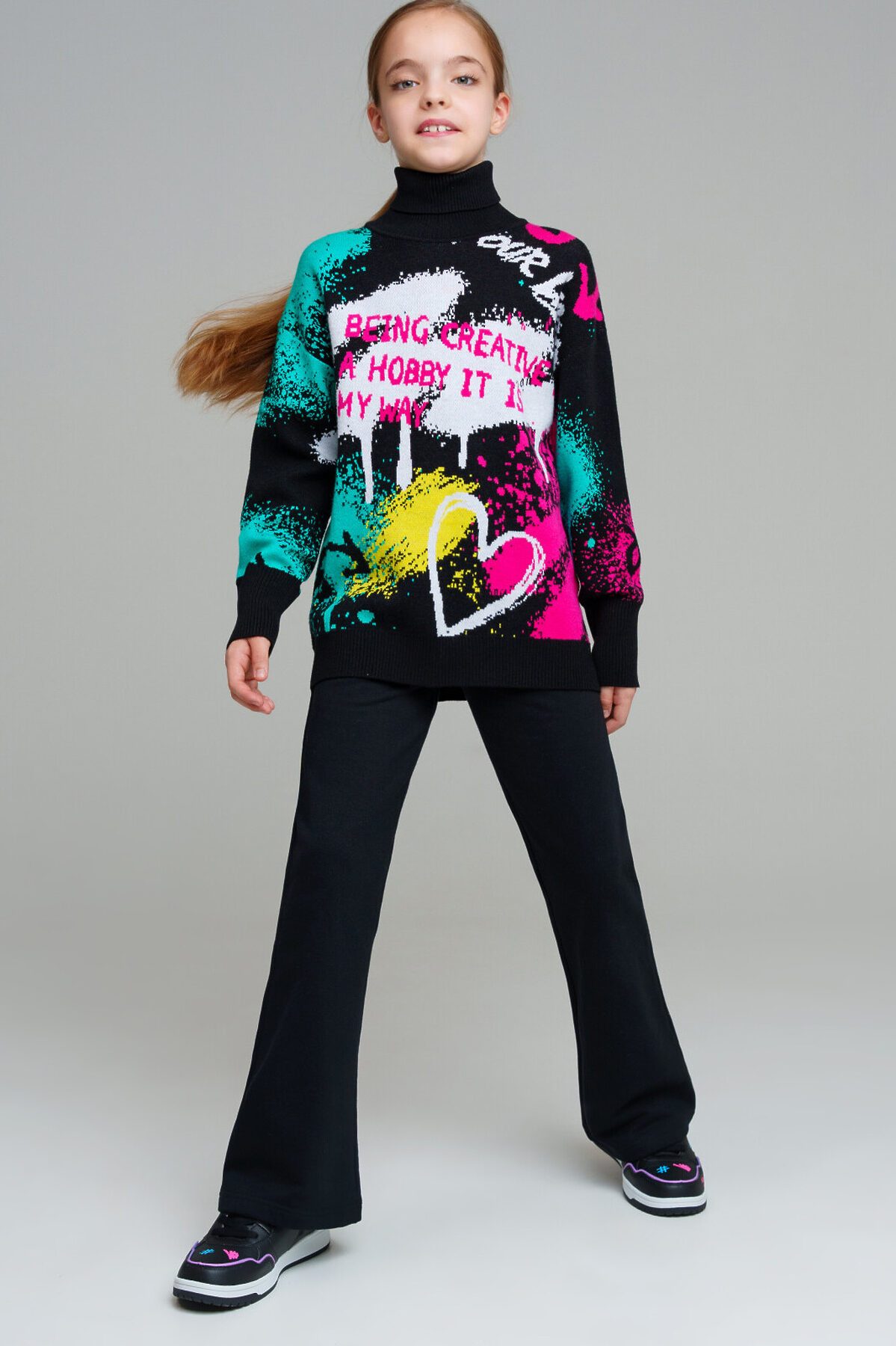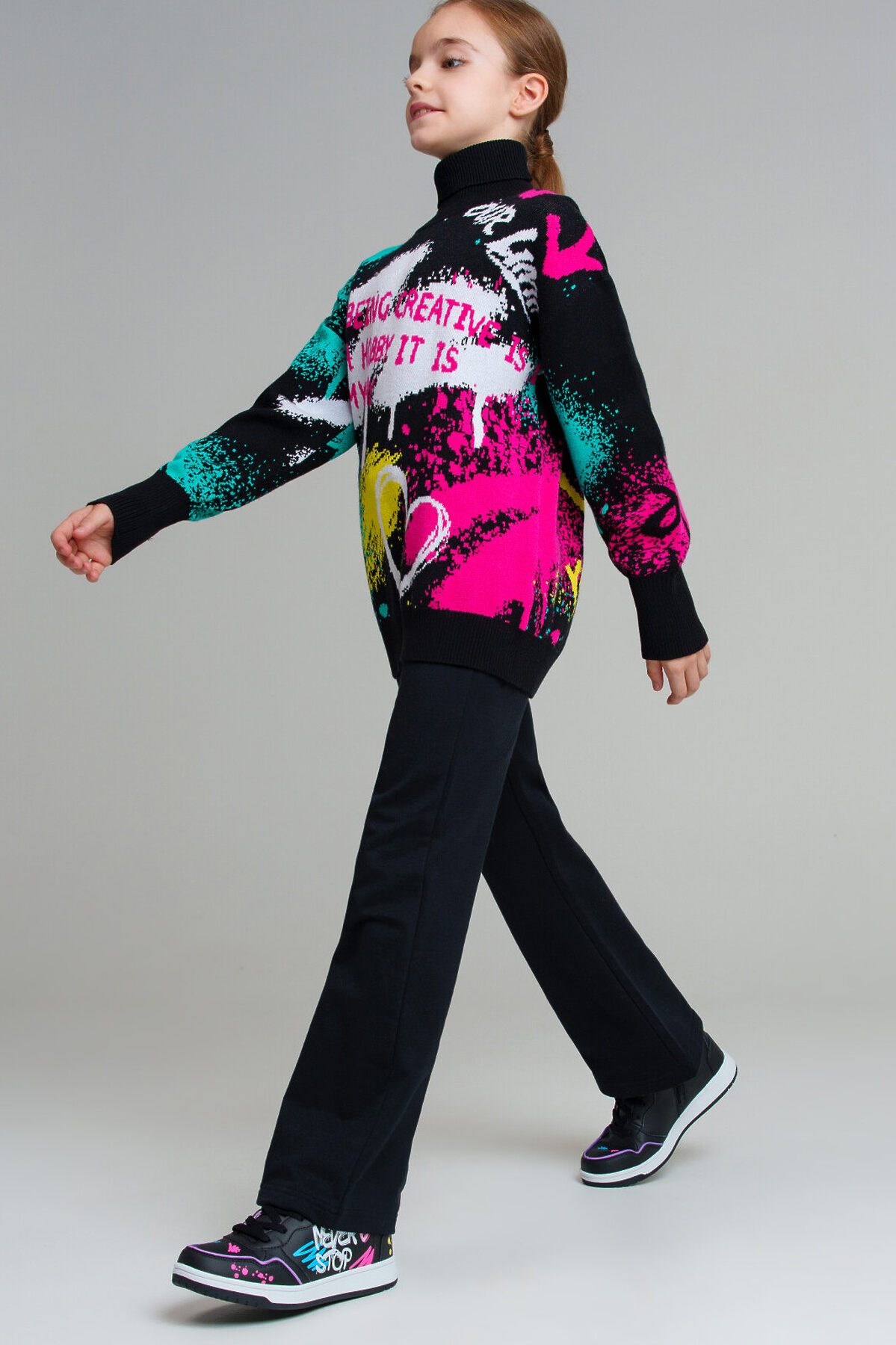 Брюки из футера с начесом для девочки подростка. Штаны на резинке с высоким содержанием хлопка. Модель из капсульной коллекции DIGITAL TRANSFORM (ДИДЖИТАЛ ТРАНСФОРМ). Соберите полный образ в едином стиле!