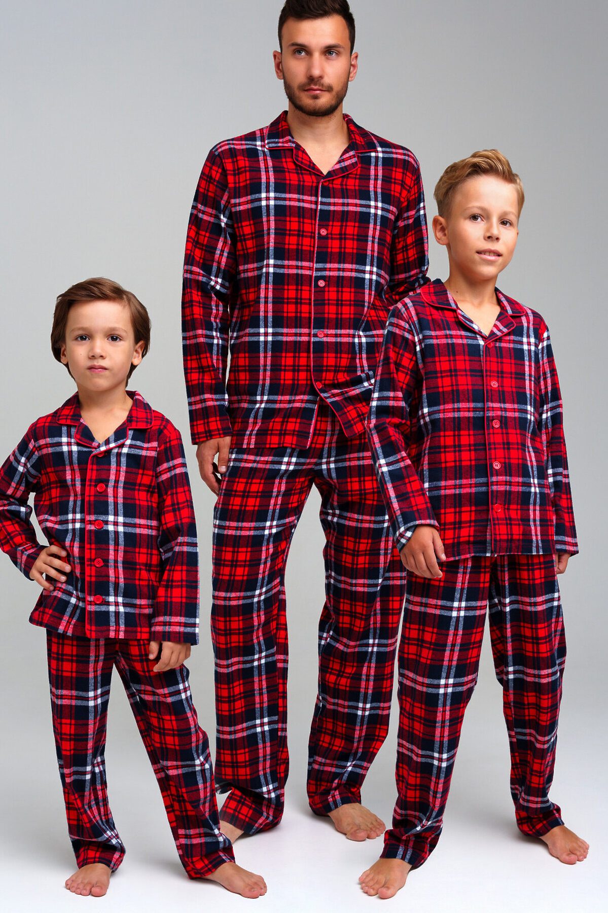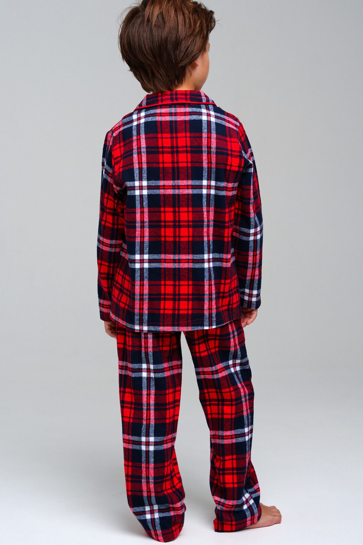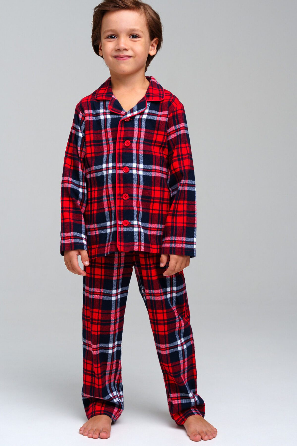 Пижама детская для мальчика. 100% хлопок. Фланель - мягкая, приятная к телу ткань с небольшим начесом. Застежка на пуговицы. Карманы в брюках. Эластичный пояс с тесьмой позволяет легко надевать брюки и утягивать до комфортной посадки.