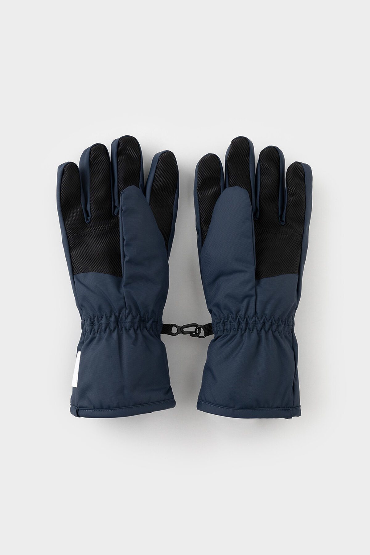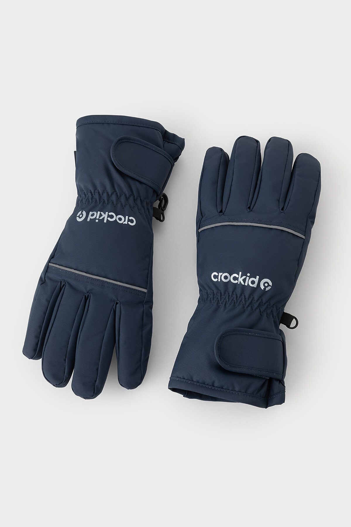 Детские утеплённые перчатки из однотонной мембранной ткани со вставками из искусственной кожи. Манжеты регулируются по ширине с помощью липучки. Мягкий подклад из флиса. Пластиковый карабин для скрепления перчаток между собой. Светоотражающие элементы.