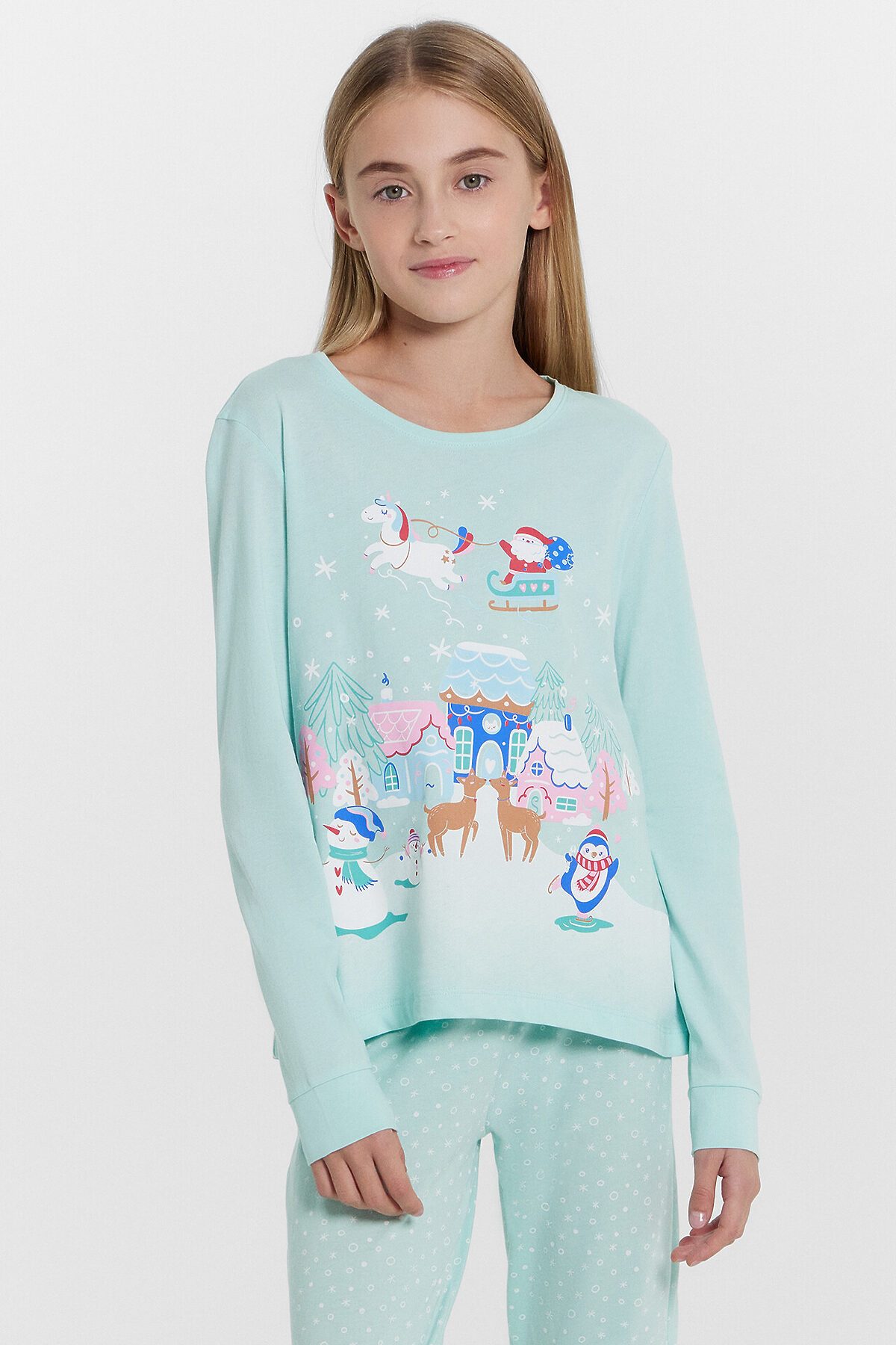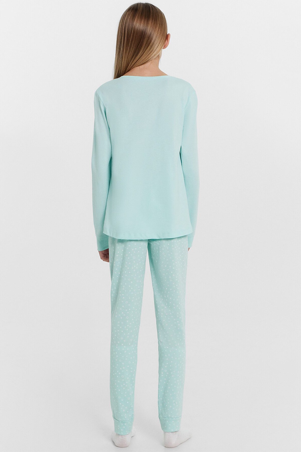 Уютная хлопковая пижама для девочки. Широкие эластичные манжеты на рукавах лонгслива и штанинах брюк. Интересный симпатичный дизайн. Продуманная конструкция. Идеальный вариант для приятного сна и расслабленного отдыха