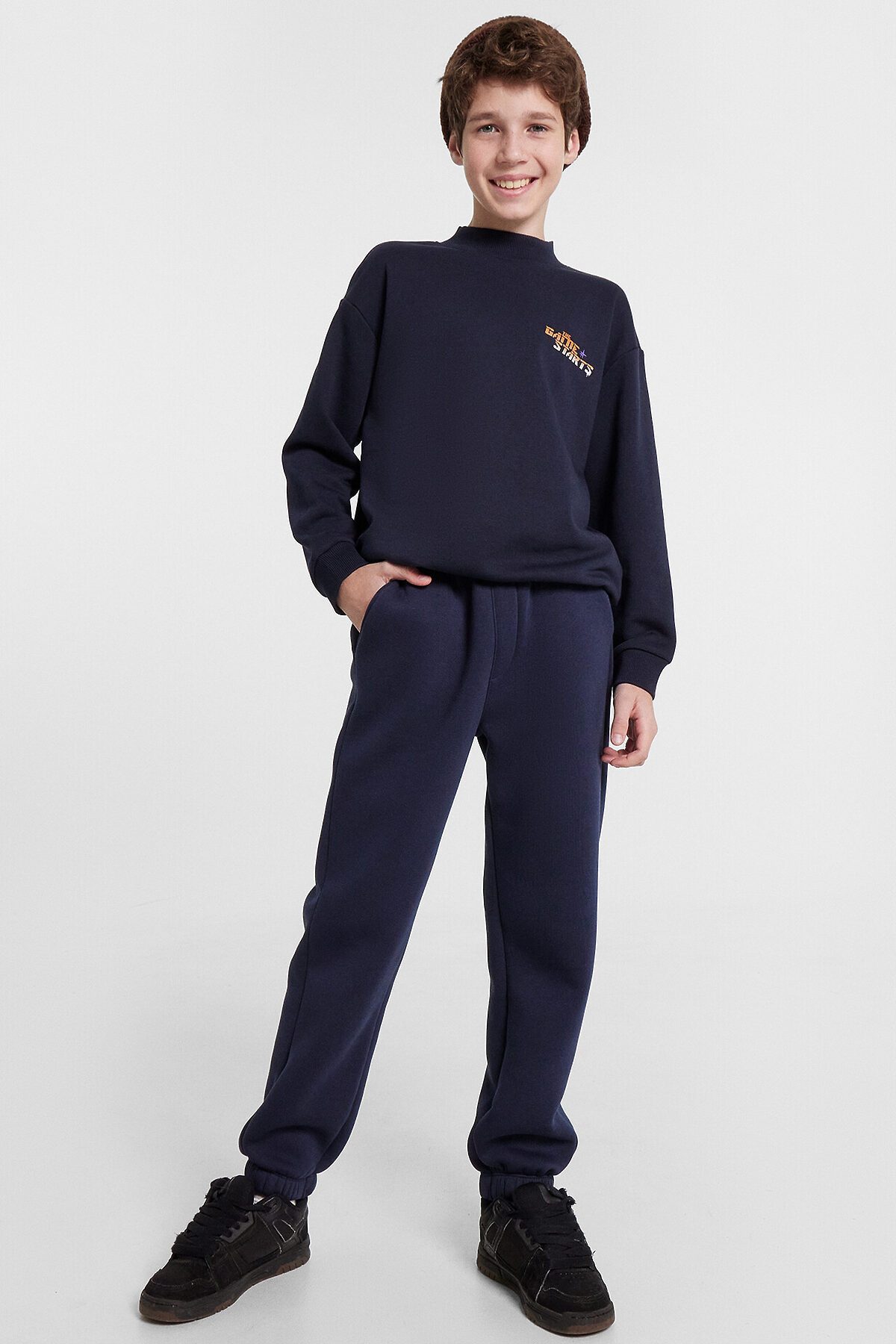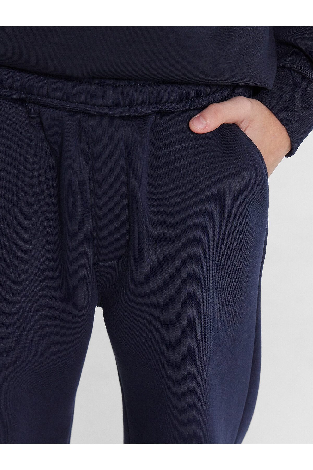 Брюки-джоггеры для мальчиков. Пояс отрезной с втачной эластичной тесьмой, внутри шнур. Пояс прострочен двумя отделочными строчками. По переду обработаны карманы с отрезным бочком. Низ брюк застрочен с эластичной тесьмой на двухигольной плоскошовной машине.