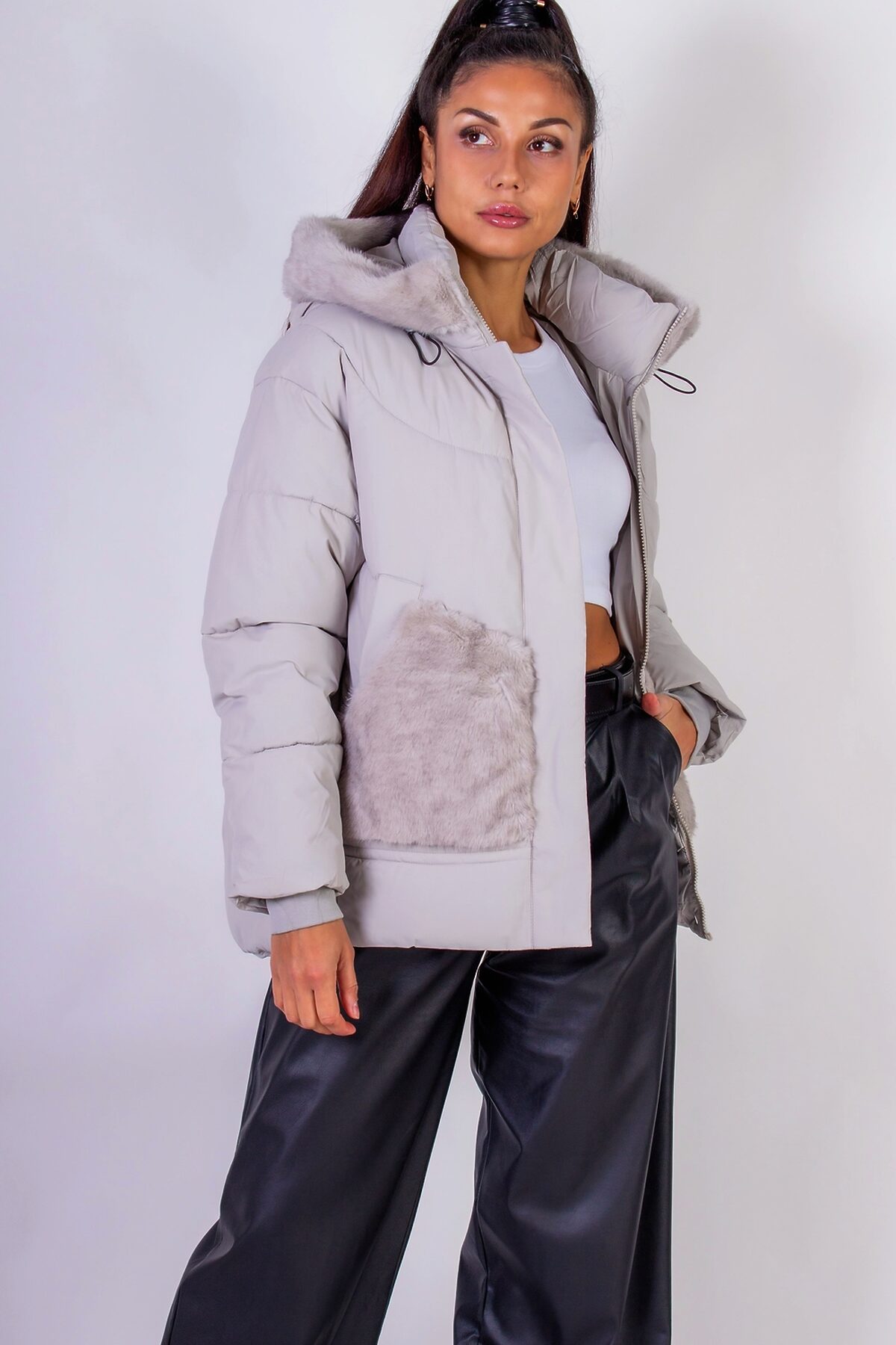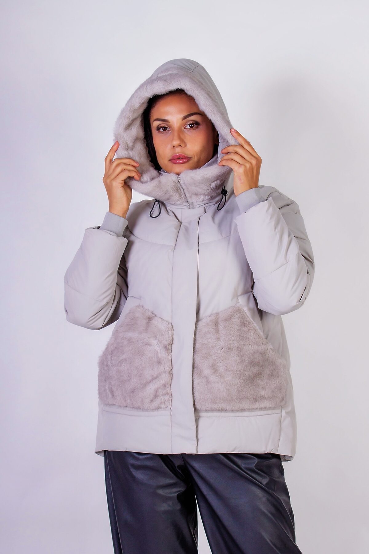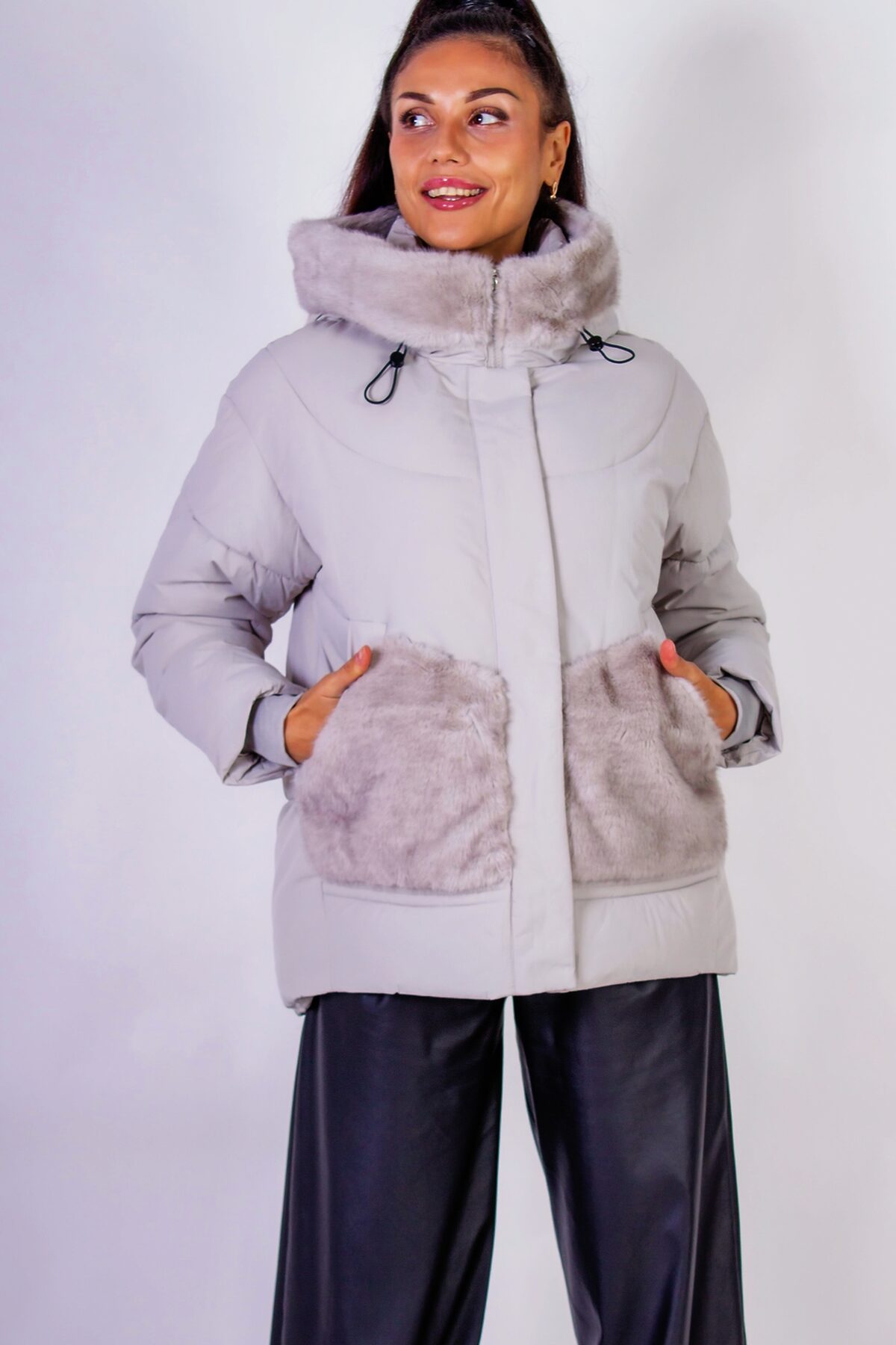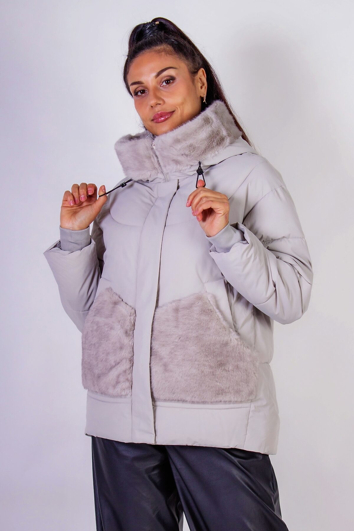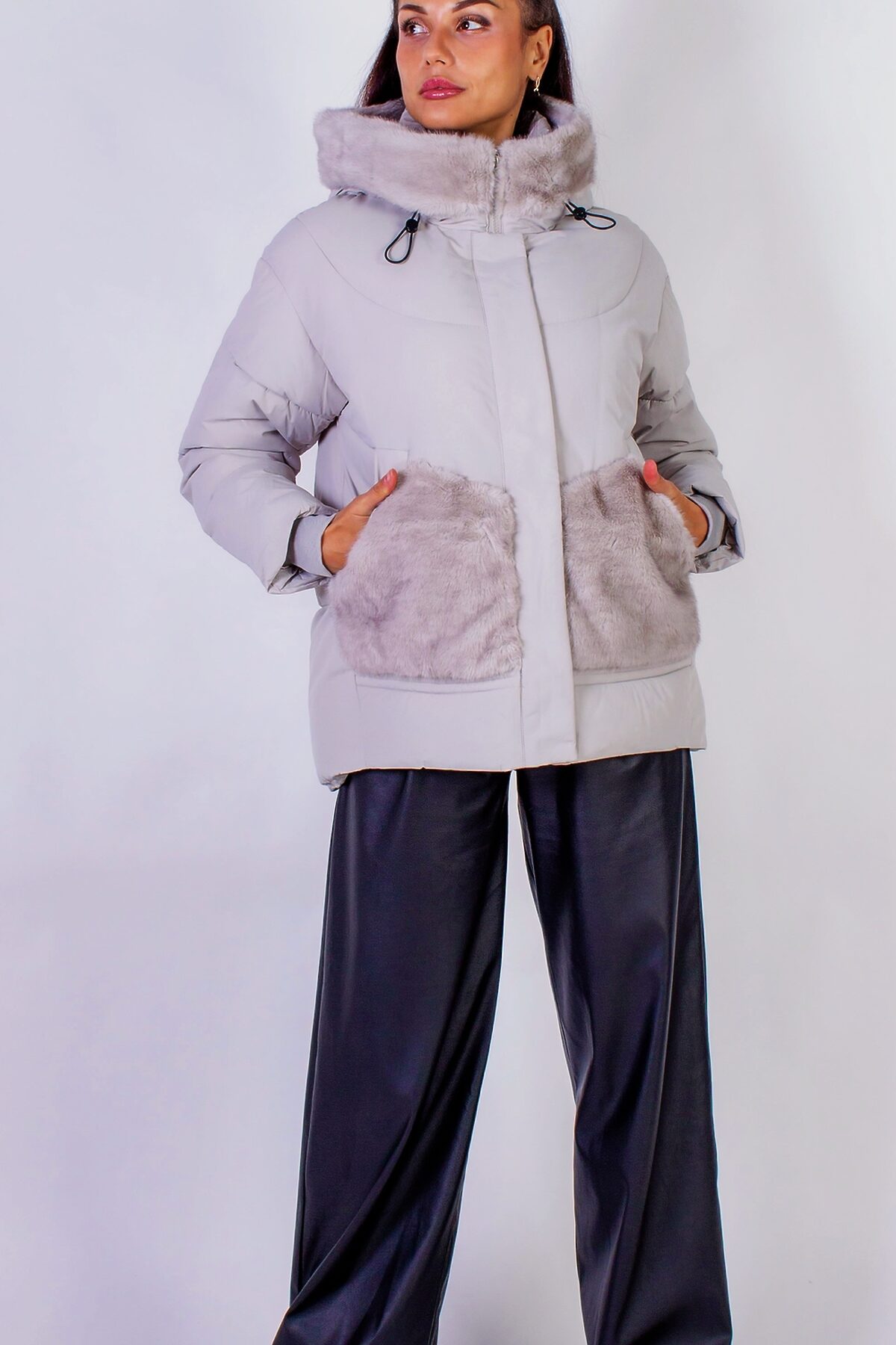 Куртка с капюшоном Меховая отделка арт. 631 НАТАЛИ, серый