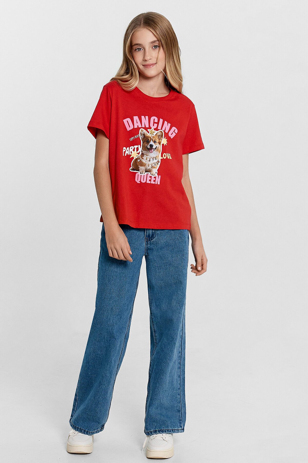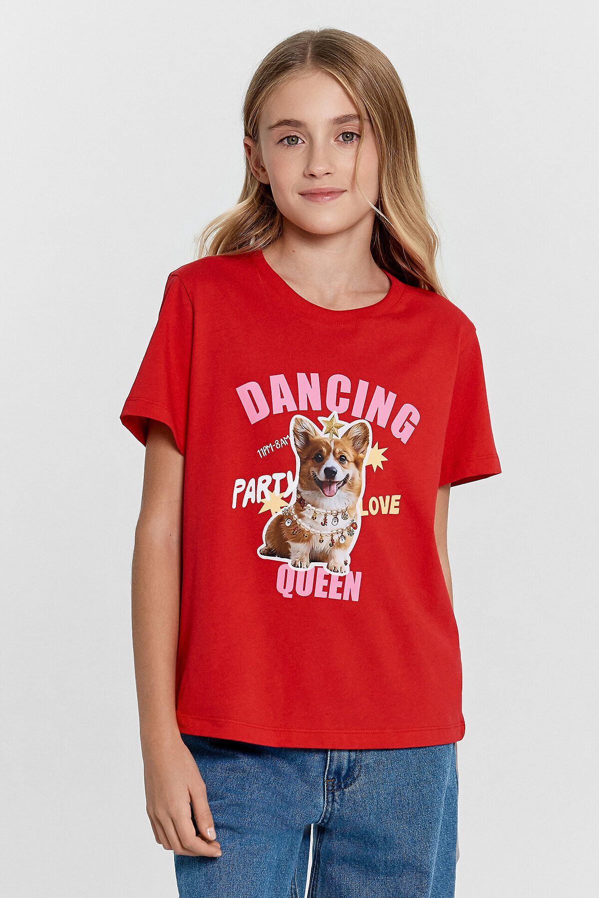 Модная футболка для девочек, выполненная из хлопковой трикотажной кулирки. Силуэт прямой. Перед и спинка без швов и рельефов. Рукава короткие, вырез классический – круглый, не глубокий. Стильная футболка с ярким дизайном!