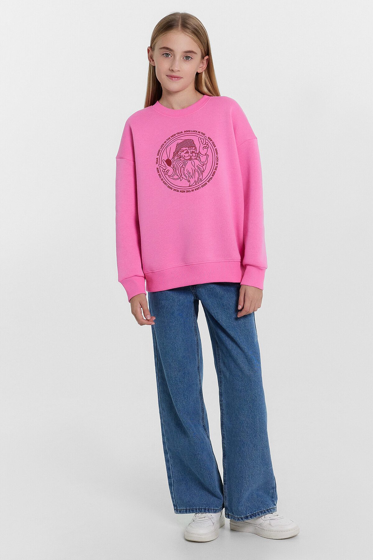 Стильный теплый свитшот свободного силуэта для девочек в интересной и оригинальной расцветке из футера с подчесом. Вырез круглый, не глубокий. Рукава длинные, манжеты из рибаны. В составе изделия - натуральный хлопок. Мягкая и невероятно комфортная модель для повседневной носки в школу, для внеклассных занятий и как базовая одежда на каждый день. Дополнить такой свитшот можно юбкой, брюками и другими вещами из детского гардероба. Широкий размерный и цветовой ряд. Рекомендуем!
