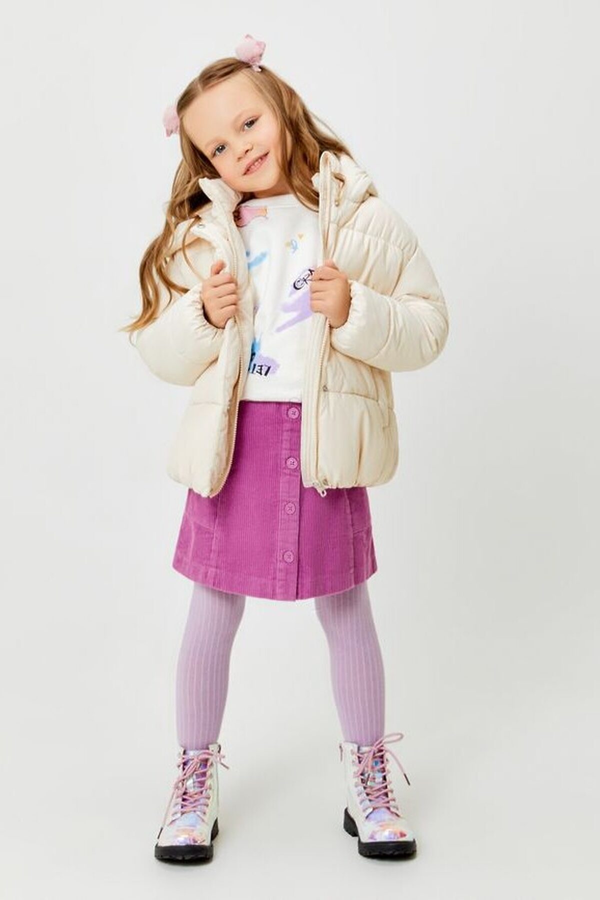 Утеплённая стеганая куртка для девочки изготовлена из качественной водонепроницаемой ткани. Подкладка для тела и карманов выполнена из стандартной подкладочной ткани. Утеплитель – синтепух (вес 250 гр/м2). Рекомендуемый температурный режим от +10 до -10 градусов. Застёжка на молнию и кнопки. Спереди расположены два кармана в листочку. Воротник-стойка и несъёмный капюшон защитят шею от дождя и ветра. Куртка представлена в двух цветах: фиолетовом и бежевом.