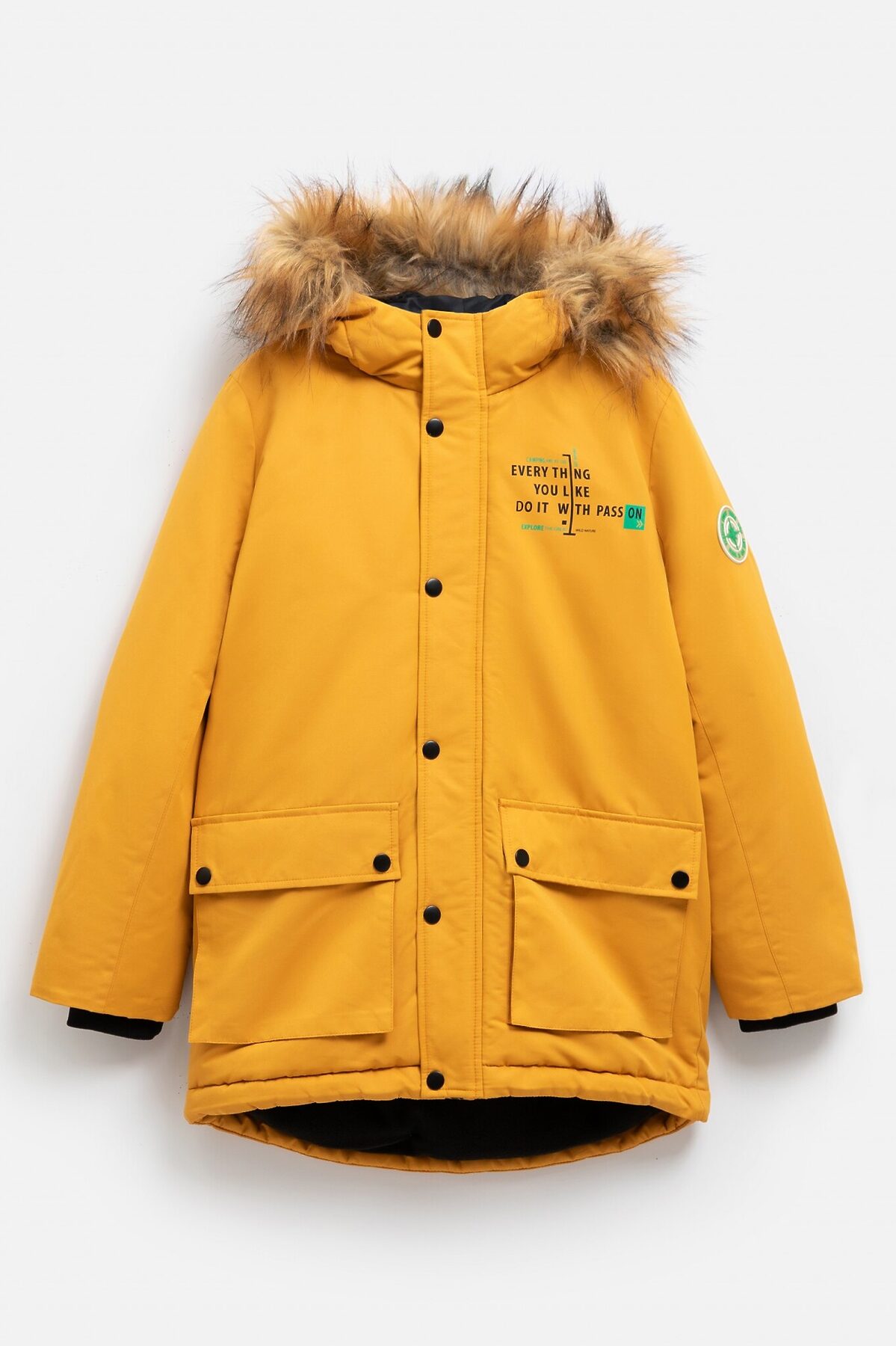 Утеплённая куртка с капюшоном для мальчика выполнена из водонепроницаемой ткани. Утеплитель - синтепон (вес 350 гр/м2). Подкладка для тела выполнена из флиса, в рукавах и капюшоне стандартная подкладочная ткань. Рекомендованный температурный режим от 0 до -20 градусов. Капюшон с отстегивающимся мехом. Застёжка на молнию с внутренней и внешней планками, внешняя планка застёгивается на кнопки. Спереди два накладных кармана. Трикотажные манжеты предотвращают задувание холодного воздуха.