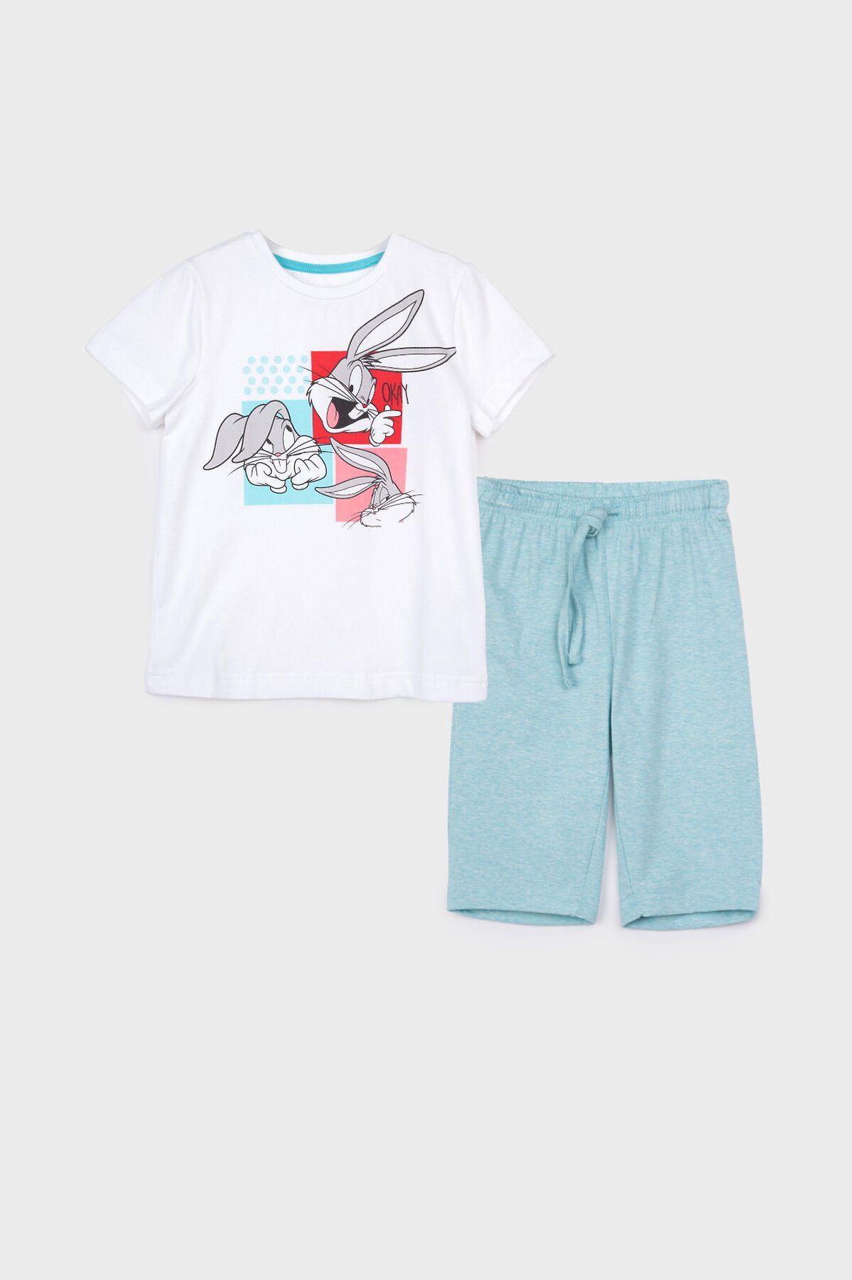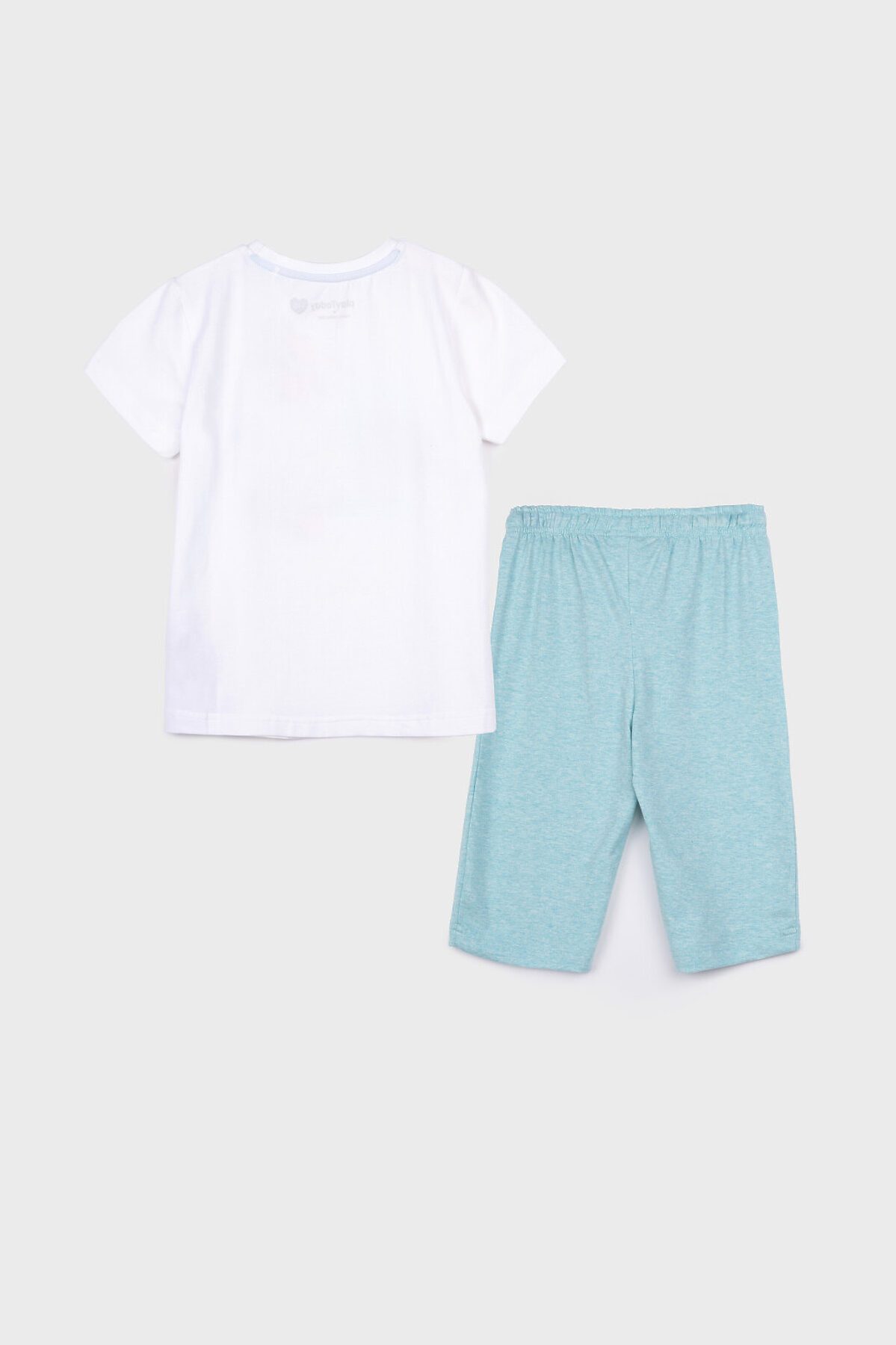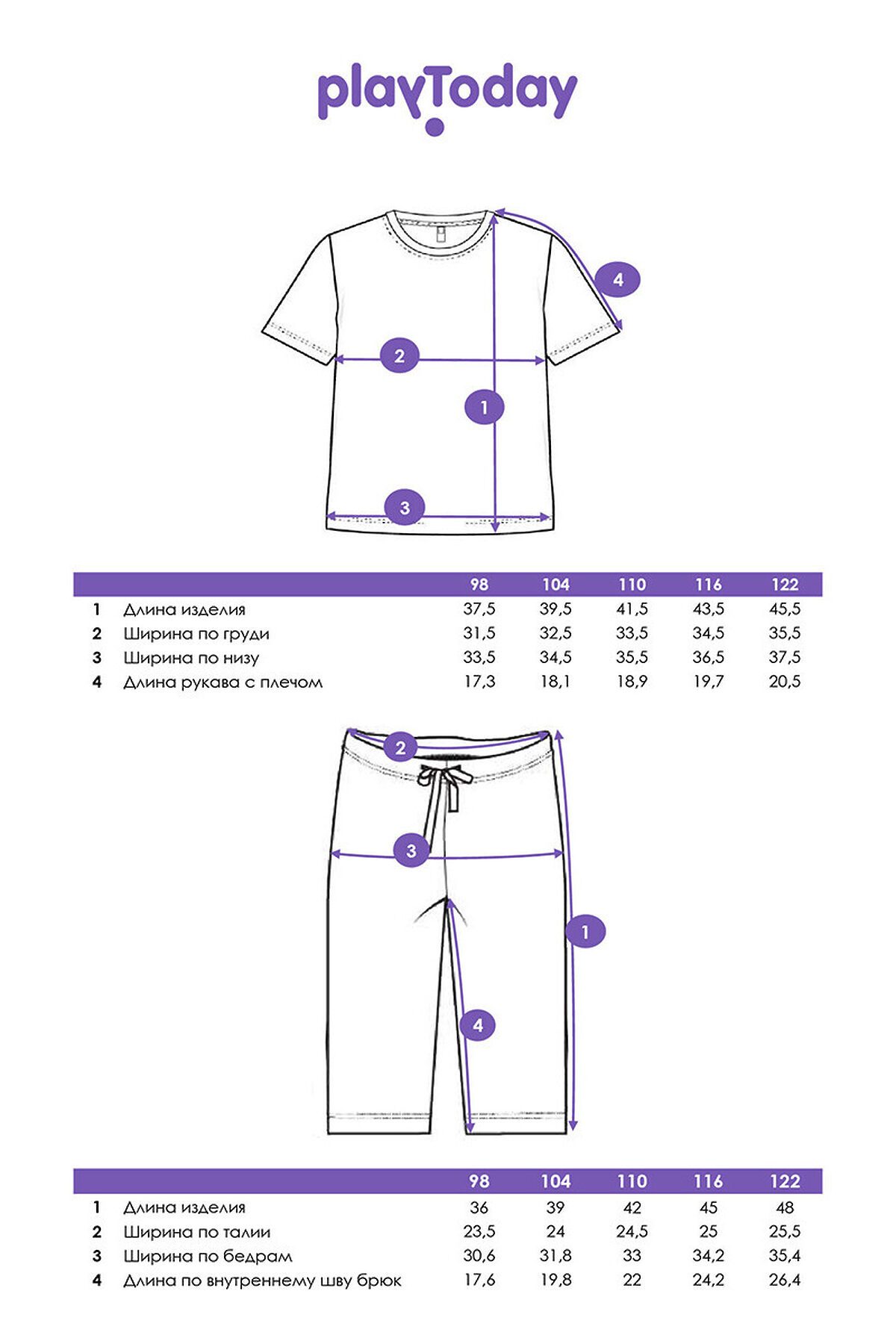 Пижама для девочки подростка. Футболка и капри из эластичного и приятного на ощупь трикотажа. Шорты-капри на резинке со шнурком. Высокое содержание хлопка 95%. Благодаря наличию эластана в составе ткани изделие держит форму и меньше мнется.
