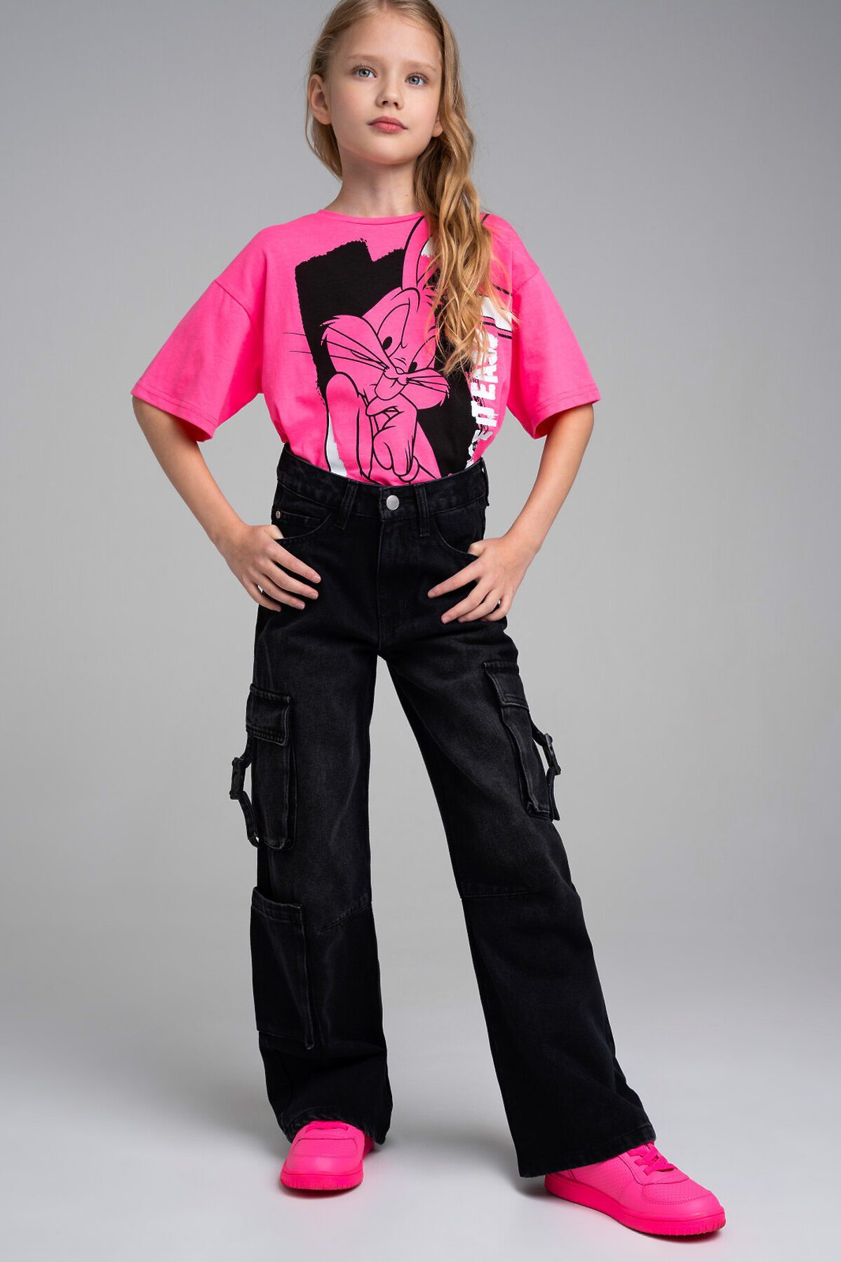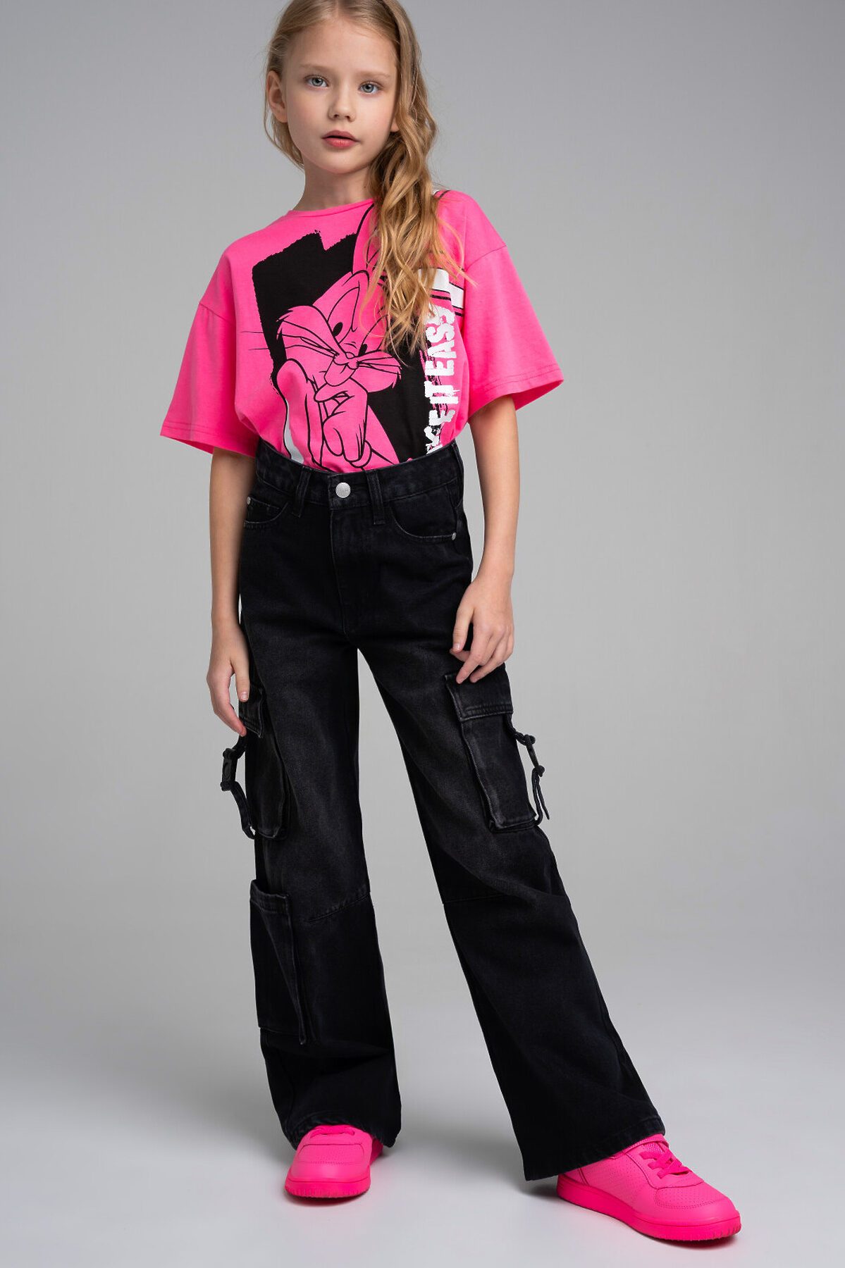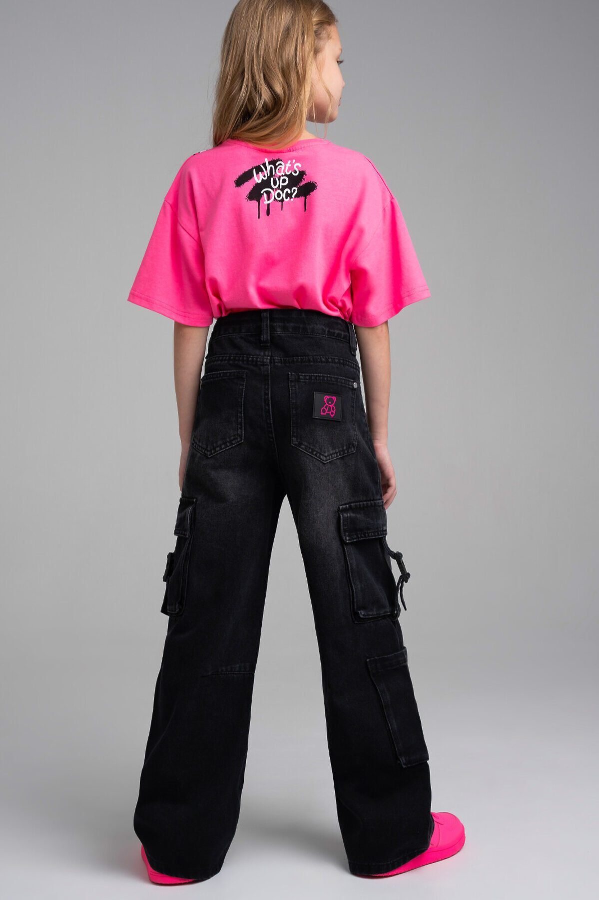 Джинсы для девочки подростка. WIDE LEG - свободная посадка и расклёшенные от бедра штанины. Высокая посадка. Внутренняя утяжка. Внутренняя утяжка. Застежка на молнию и болт. Накладные карго-карманы.