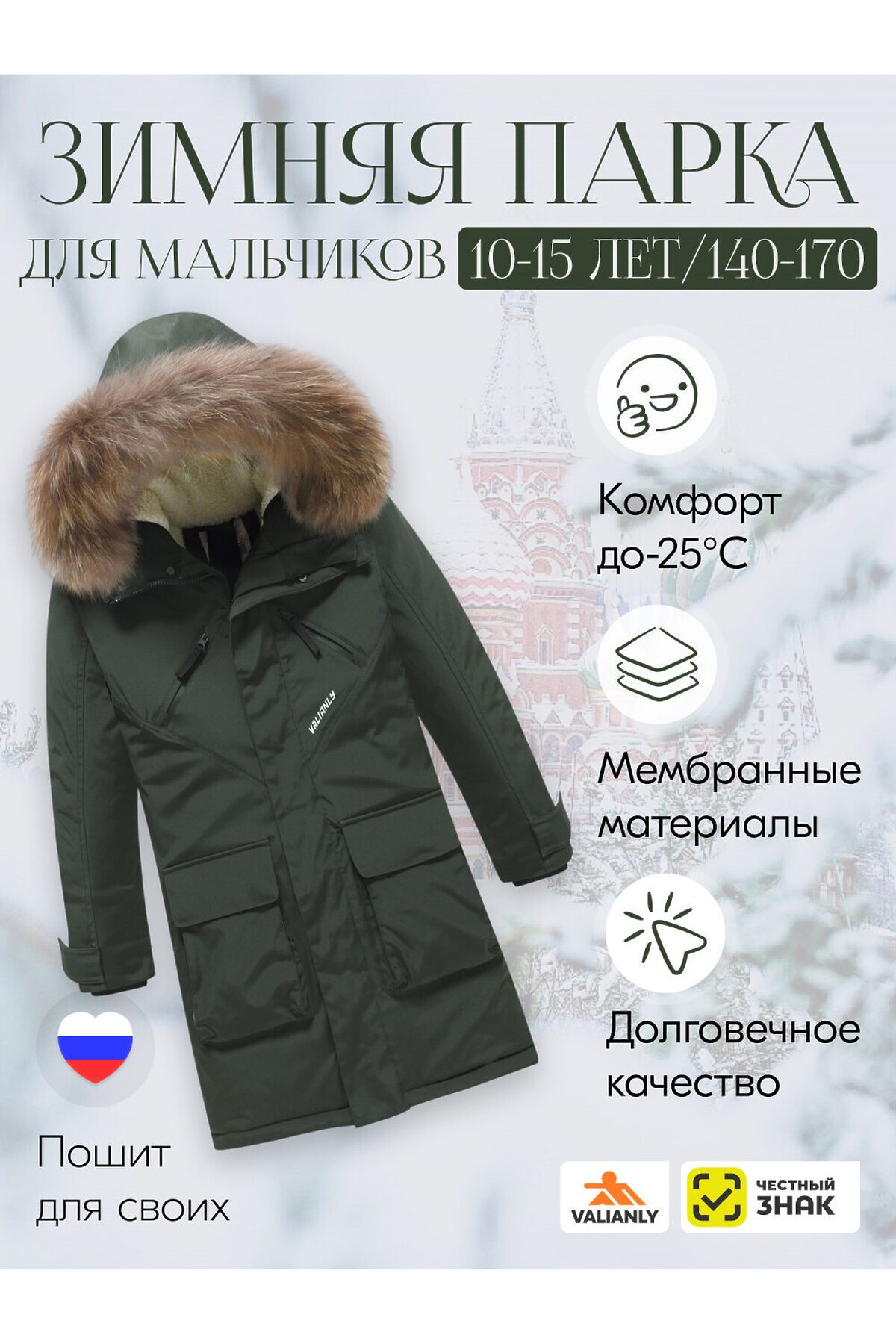 Стильная и функциональная парка для мальчика подростка идеально подойдет для холодной погоды и активного отдыха. Она сочетает в себе современные технологии и однотонный дизайн, обеспечивая максимальный комфорт и защиту. Основные характеристики: - Ветрозащитная планка на кнопках: Защищает от холодного ветра, сохраняя тепло внутри. - Съемная меховая опушка: Из натурального меха, добавляет стильный акцент и дополнительное тепло. - Подкладка из искусственной овчины: Обеспечивает комфорт и тепло, приятна на ощупь. - Мембранный материал: Легкий и прочный, защищает от влаги и ветра. - Внутренние лямки: Позволяют удобно носить парку на плечах, освобождая руки. - Несъемный капюшон: Защищает голову от непогоды, обеспечивая дополнительное тепло. - Утяжка в области груди: Позволяет подогнать куртку по фигуре, предотвращая попадание холода. - Эластичный манжет: Обеспечивает плотное прилегание к запястью, не позволяя холодному воздуху проникать внутрь. - Регулируемый манжет на пуговицах: Позволяет настроить ширину манжета для удобства. - Защита подбородка: Специальный элемент, предотвращающий раздражение кожи при закрытии молнии. - Фиксатор капюшона: Обеспечивает надежную фиксацию капюшона в ветреную погоду. - Двойной замок: Удобен в использовании и обеспечивает дополнительную защиту от холода. - Водонепроницаемость: Материалы парки защищают от дождя и снега, сохраняя сухость и тепло мальчишек, обеспечивая надежную защиту от непогоды и стильный внешний вид. Уверены, вы по достоинству оцените высокое качество нашей продукции! Пусть зима станет временем незабываемых приключений!