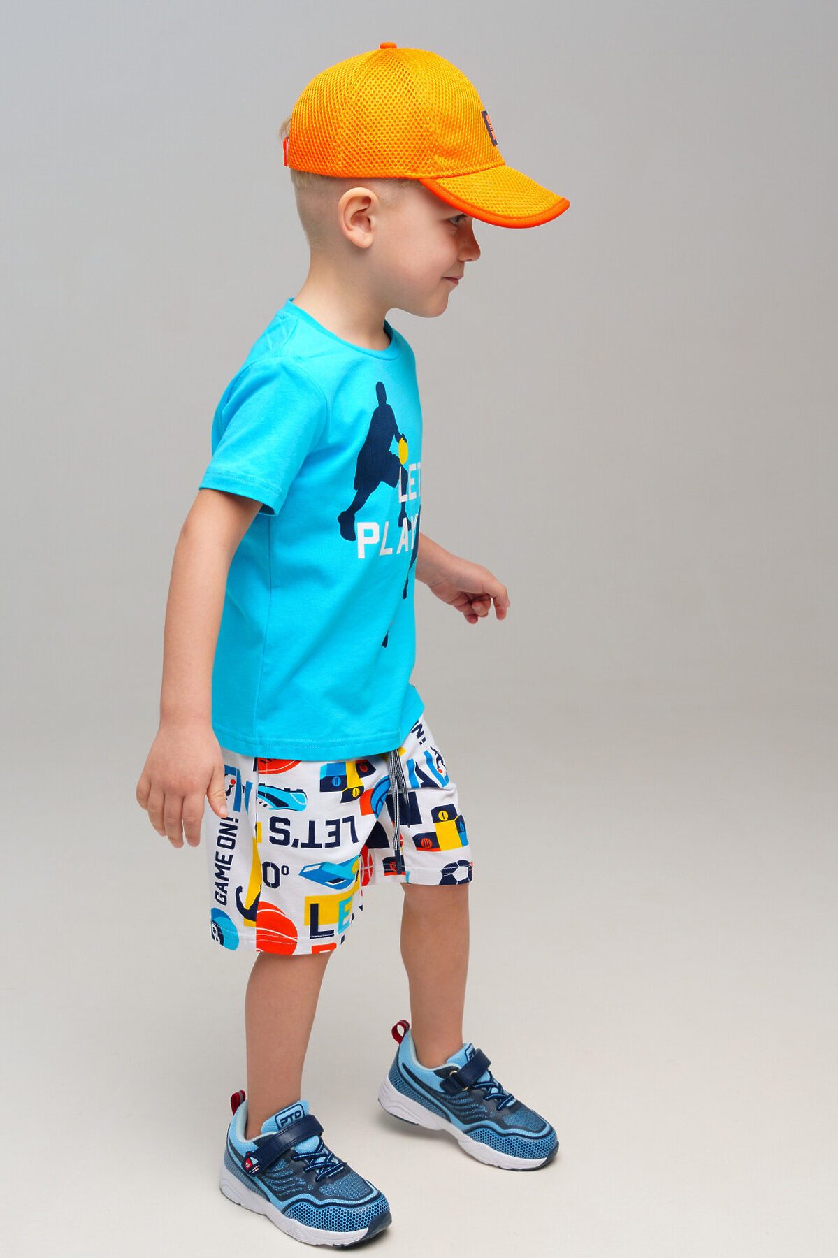 Костюм детский для мальчика. Комплект: футболка, шорты с высоким содержанием хлопка 95%. Благодаря наличию эластана в составе ткани изделие проще в уходе и держит форму. Шорты на резинке со шнурком. Боковые карманы. Модель выполнена из качественного и приятного на ощупь трикотажа.