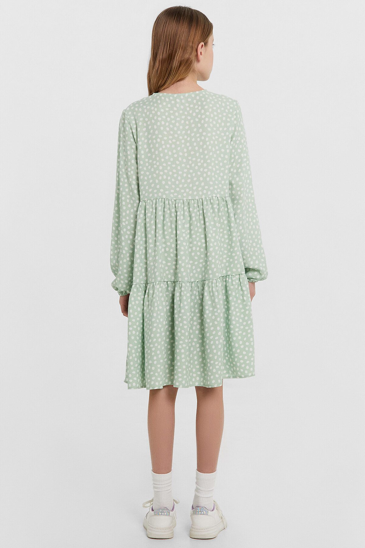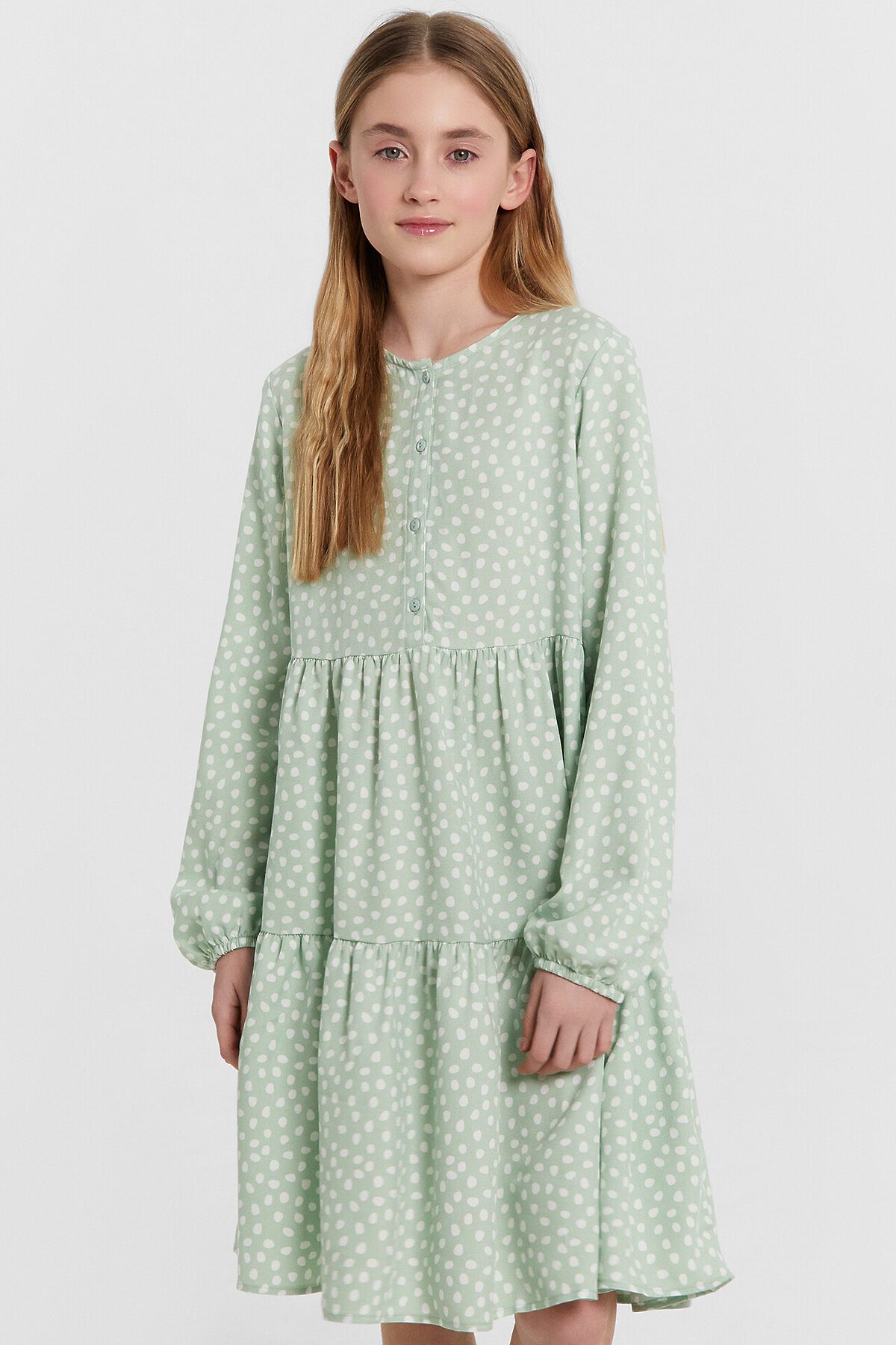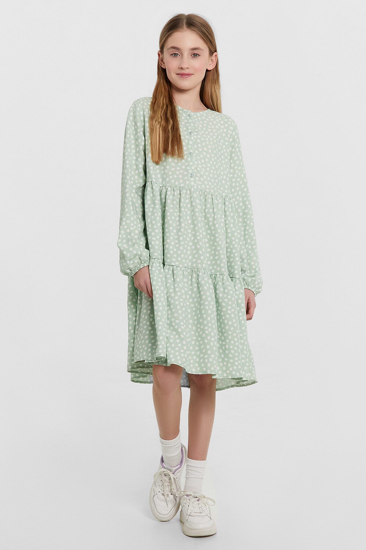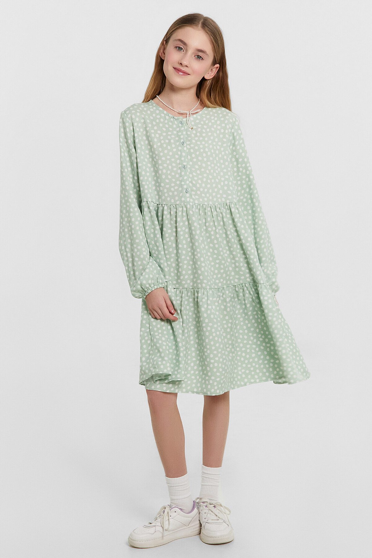 Красивое детское платье для девочек в классическом А-силуэте с отрезными воланами. Эта модель из 100% вискозы сочетает в себе изящество и шарм, создавая идеальную гармонию стиля. По переду платья расположена застежка-планка, состоящая из четырех элегантных пуговиц. Горловина платья выполнена в форме круглого выреза. Длинные втачные рукава придают платью элегантность и изысканность. Такое платье станет идеальным выбором на каждый день и для праздников. Оно подчеркнет индивидуальность вашей девочки, а его оригинальный дизайн не оставит равнодушными окружающих. Рекомендуем!