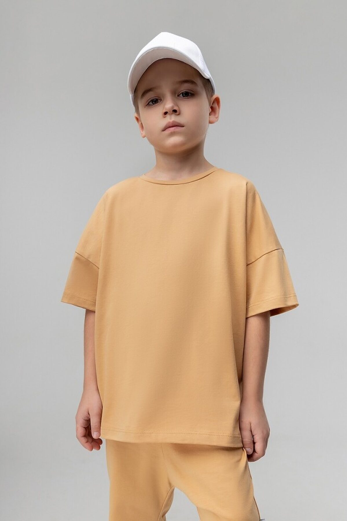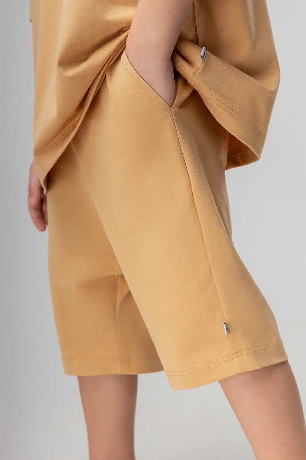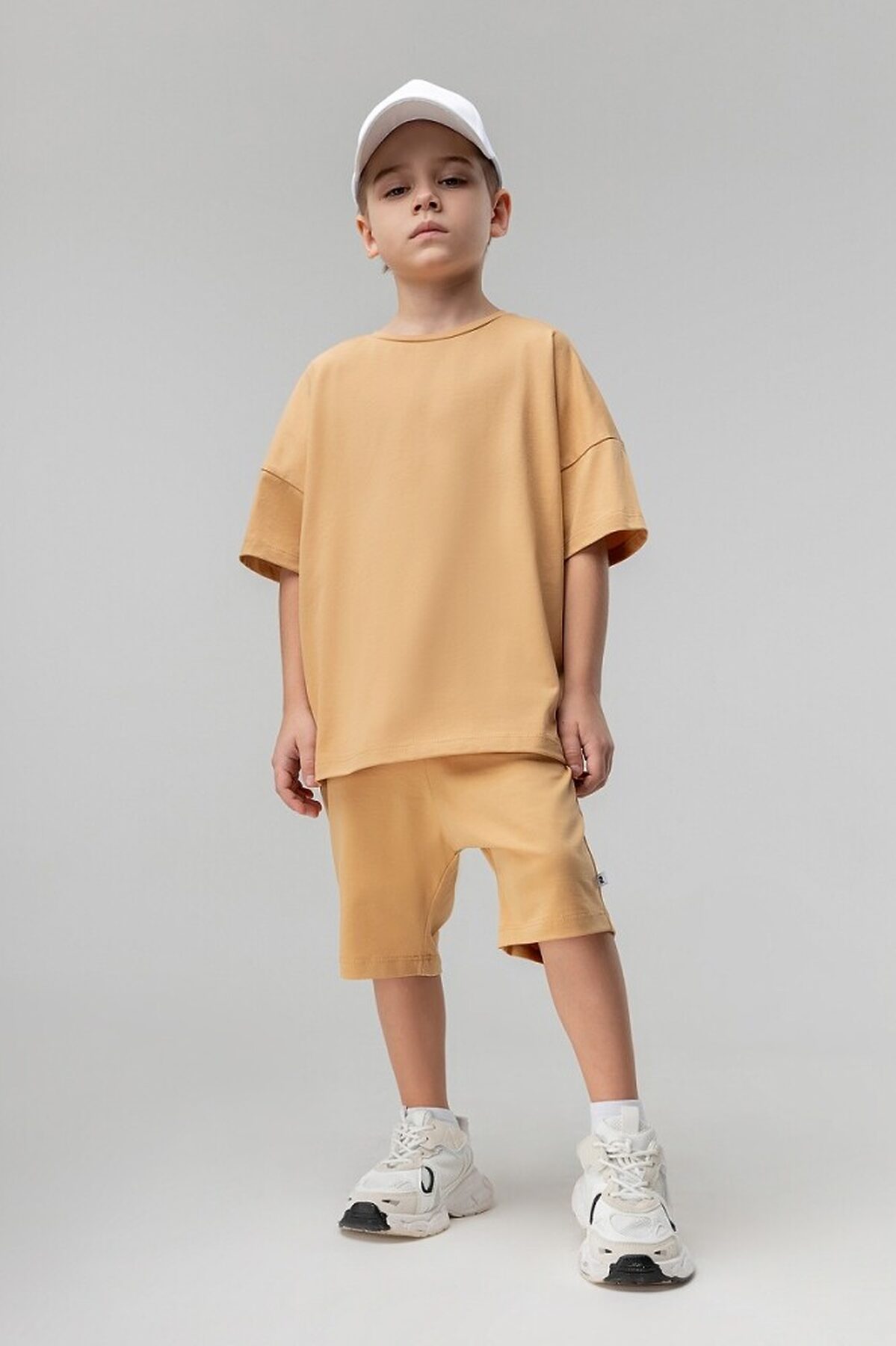 Костюм детский. Шорты, детали: свободный покрой, пояс - эластичная резинка, карманы с отрезным бочком. Футболка, детали: короткие рукава, свободный покрой, округлый вырез горловины. Состав:кулирная гладь 92% хлопок 8% лайкра