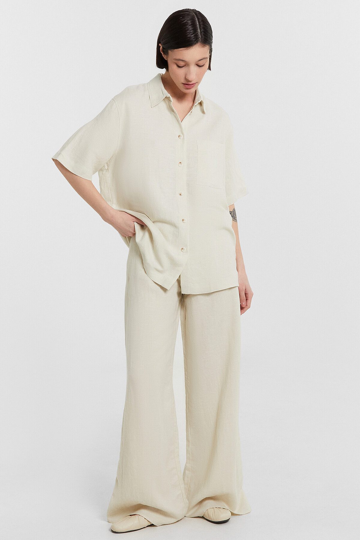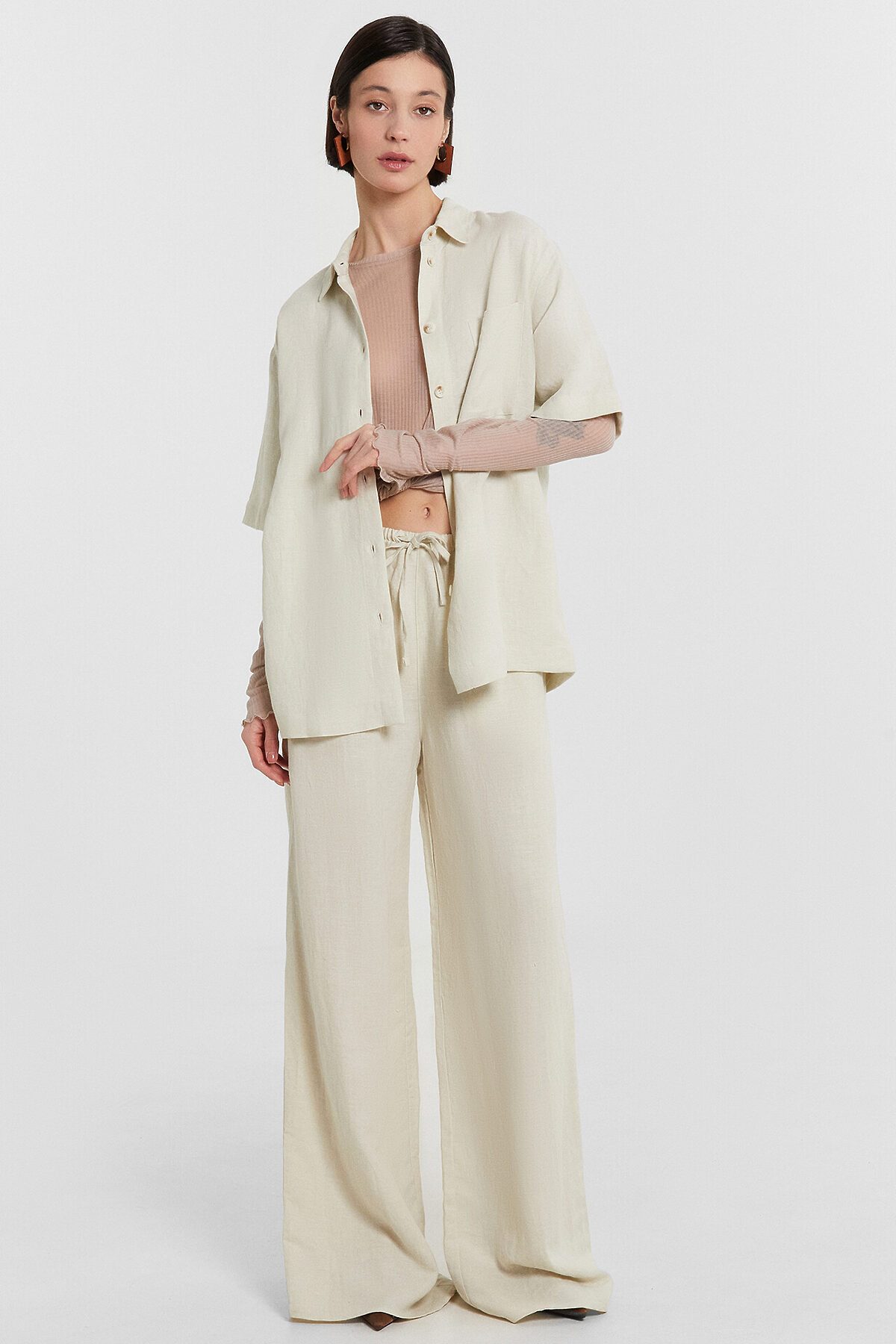 Льняной женский комплект – идеальный выбор на лето! Он сочетает в себе стиль и комфорт, обеспечивая легкость и свободу движений. Рубашка свободного силуэта с классическим воротником и спущенной линией плеча создает непринужденный образ. Углубленная пройма и короткие рукава добавляют комфорта, а накладной карман на груди придает оригинальности. Брюки свободного силуэта со средней посадкой и эластичным поясом на кулиске обеспечивают удобство и свободу движений. А боковые карманы добавляют функциональности. Комплект выполнен из натурального льна, идеально подходящего для жаркой погоды. Он позволяет коже дышать и создает ощущение прохлады. Такой комплект станет незаменимой частью вашего летнего гардероба, подчеркивая ваш стиль и даря комфорт в любой ситуации.