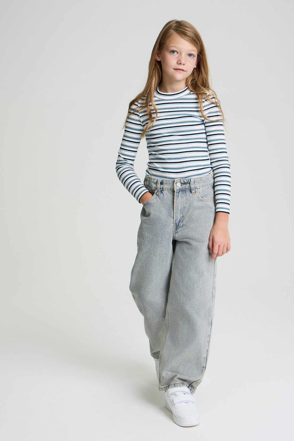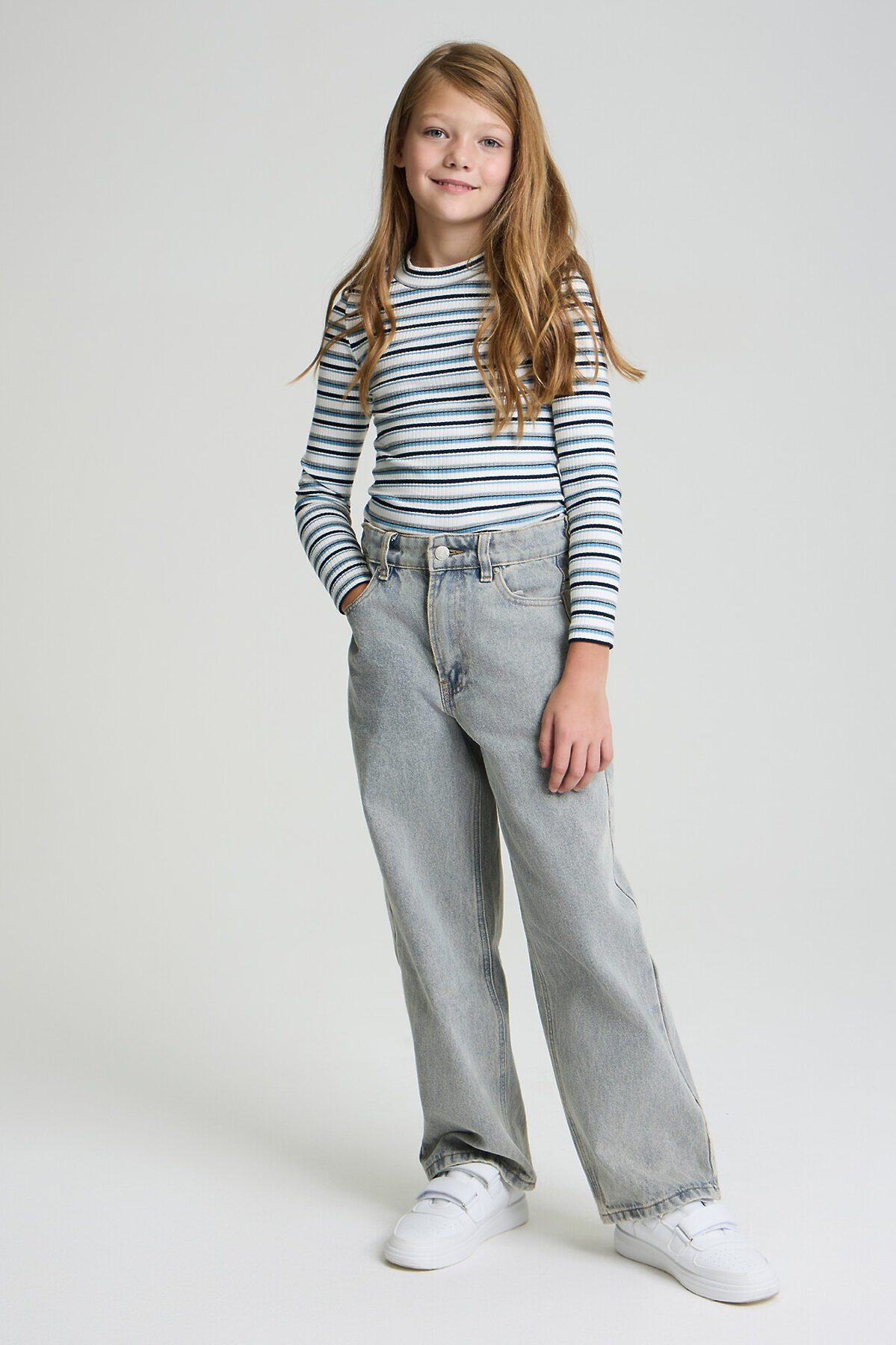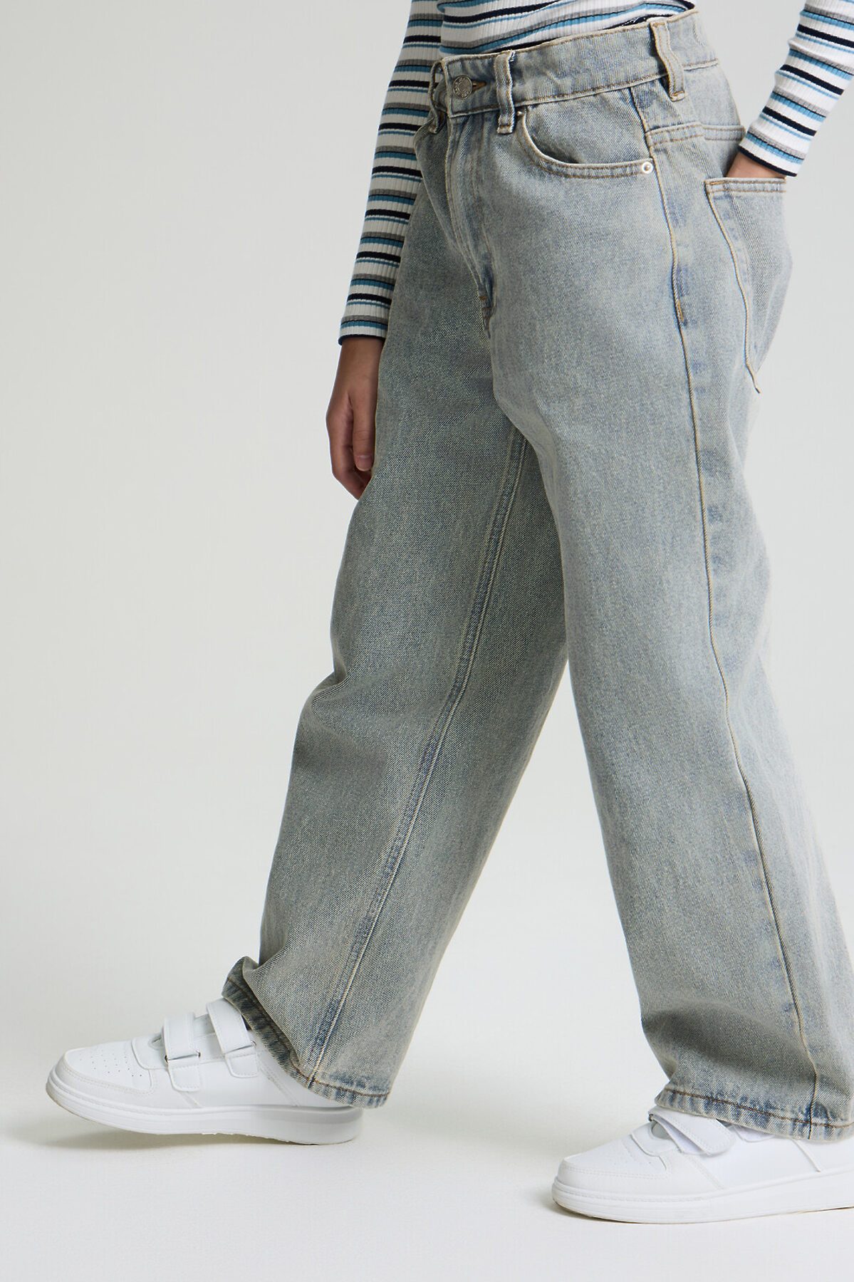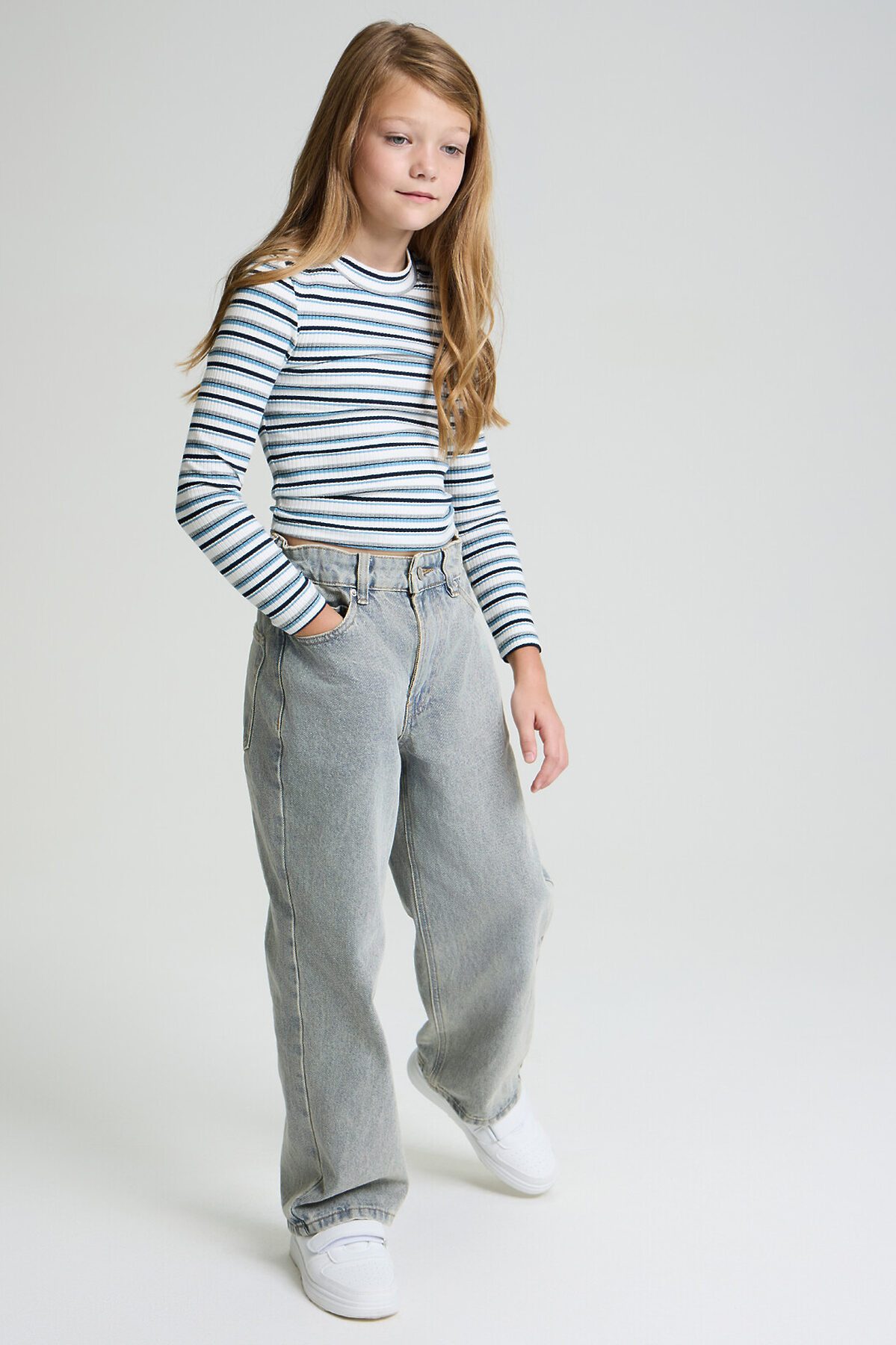 Baggy – это модный тренд надеконструктивизм. Багги дословно переводится как мешковатые, тоесть уних свободная посадка поталии. Это широкие джинсы из плотного денима. Модель дополнена двумя накладными карманами сзади. Подходят для создания различных образов, от гранжа до романтичного. Плотный деним обеспечивает долговечность изделия. Представлены в двух цветах – грязно-голубой и темно-синий. Размерный ряд от 128 см до 176 см.
