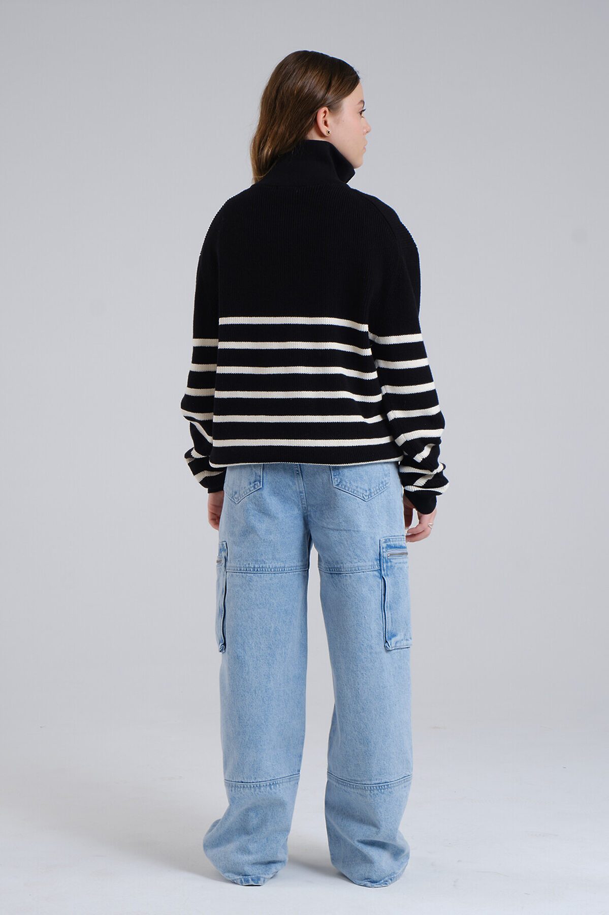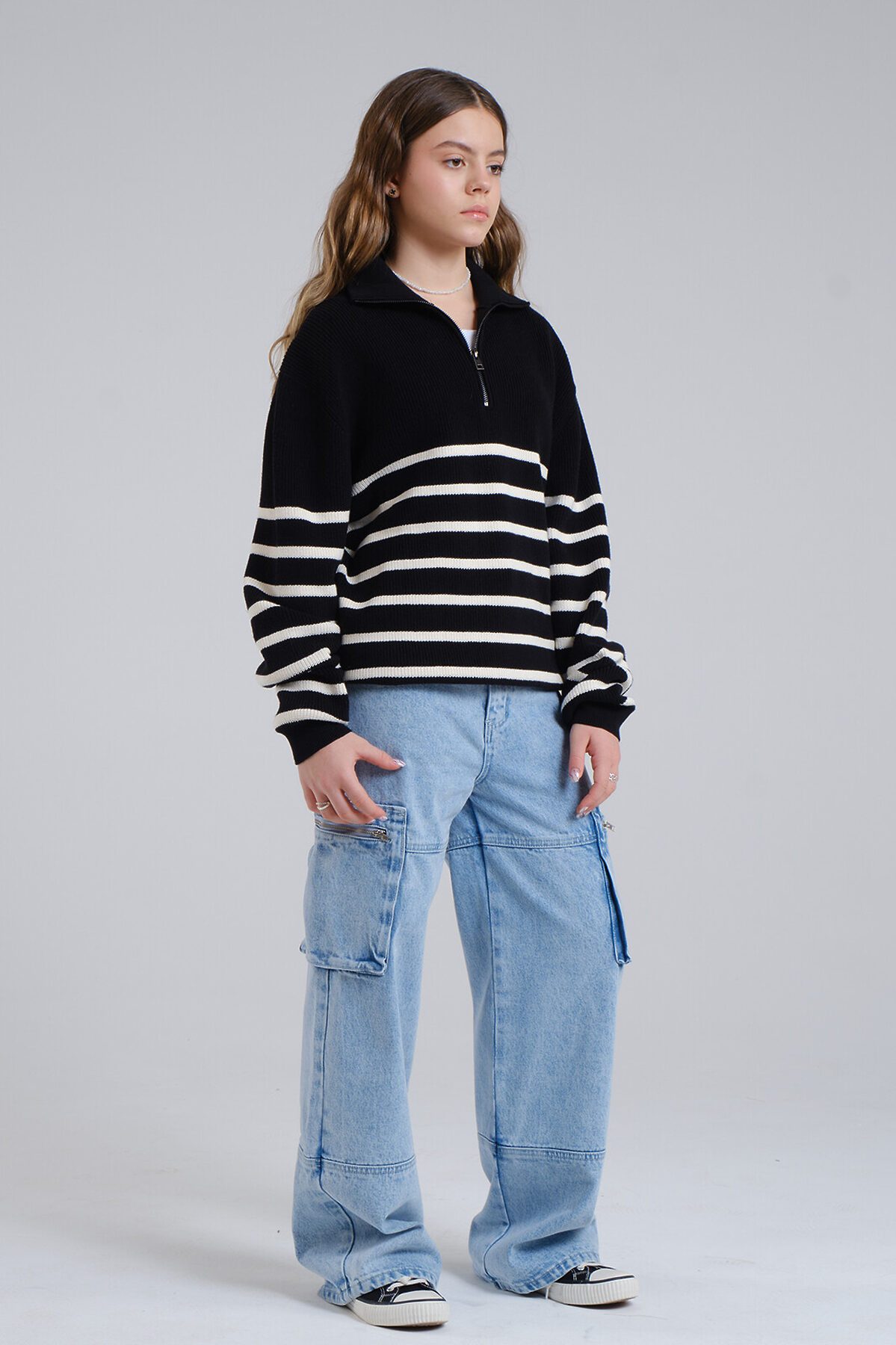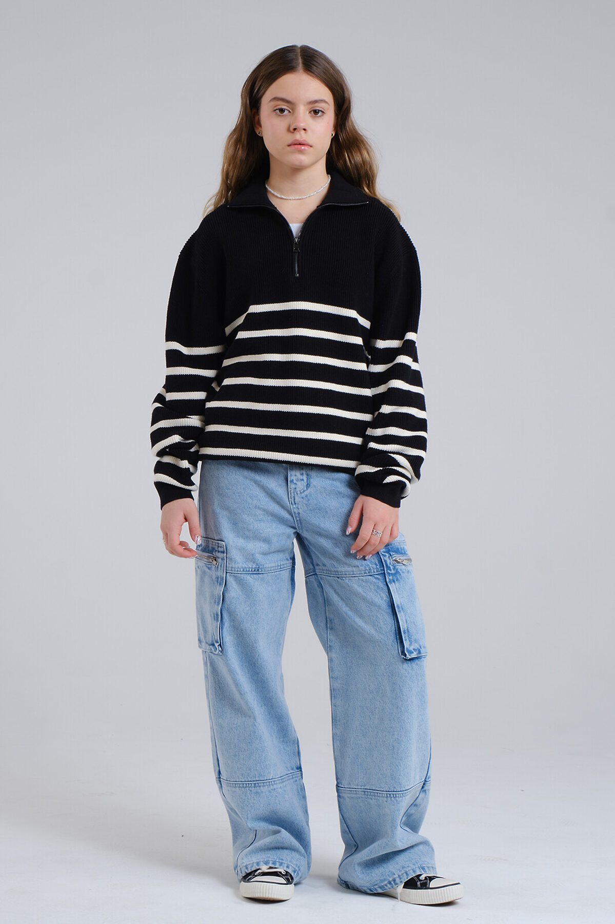 Джемпер для девочек с длинными рукавами — это идеальный вариант для прохладных вечеров. Он выполнен из высококачественной хлопковой пряжи, что обеспечивает комфорт и уют в любую погоду. Воротник-стойка сочетает деловой и спортивный стиль для создания трендовых луков. А черно-белая расцветка подойдет для любого гардероба.