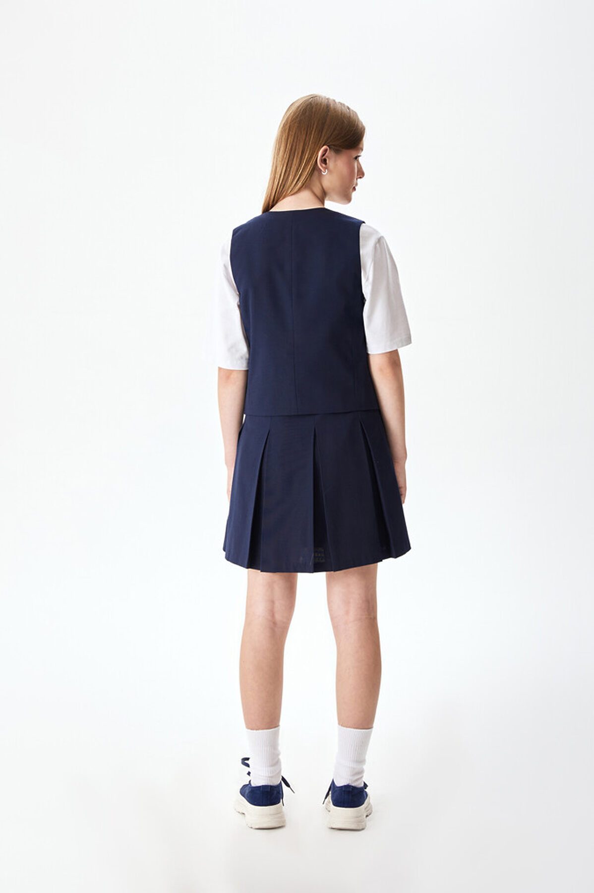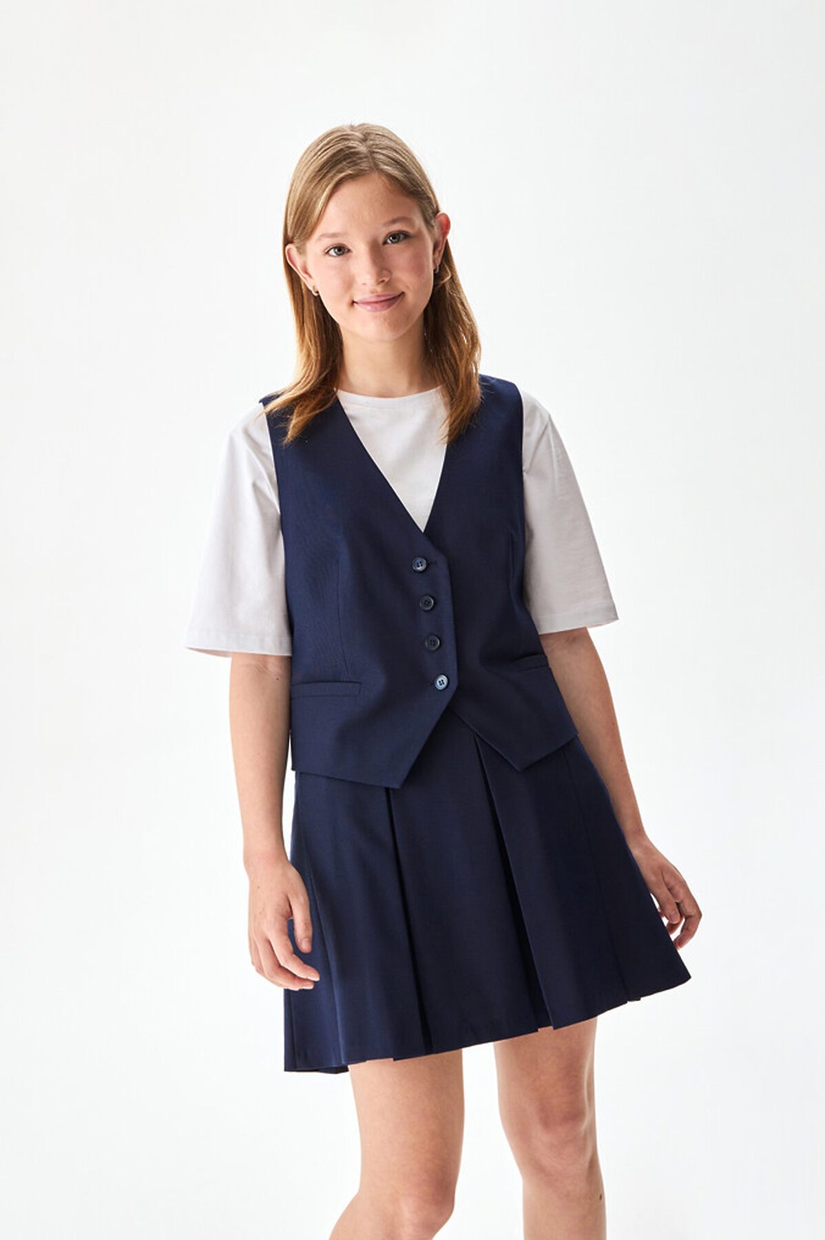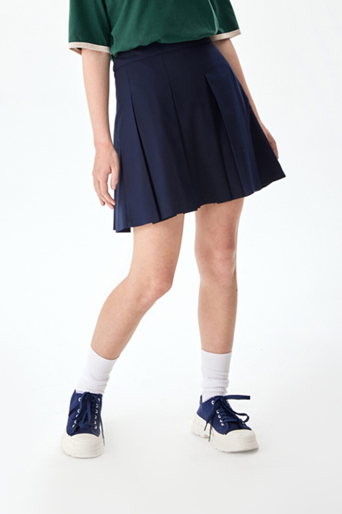 Юбка со встречными складками, выполненная из прочной костюмной ткани, без подкладки. Оформлена с застежкой на потайную молнию в левом боковом шве. Пояс с регулируемой резинкой для удобной посадки на талии. Прочная ткань устойчива к частым стиркам. Клетчатый узор делает юбку классическим элементом для любого школьного образа.