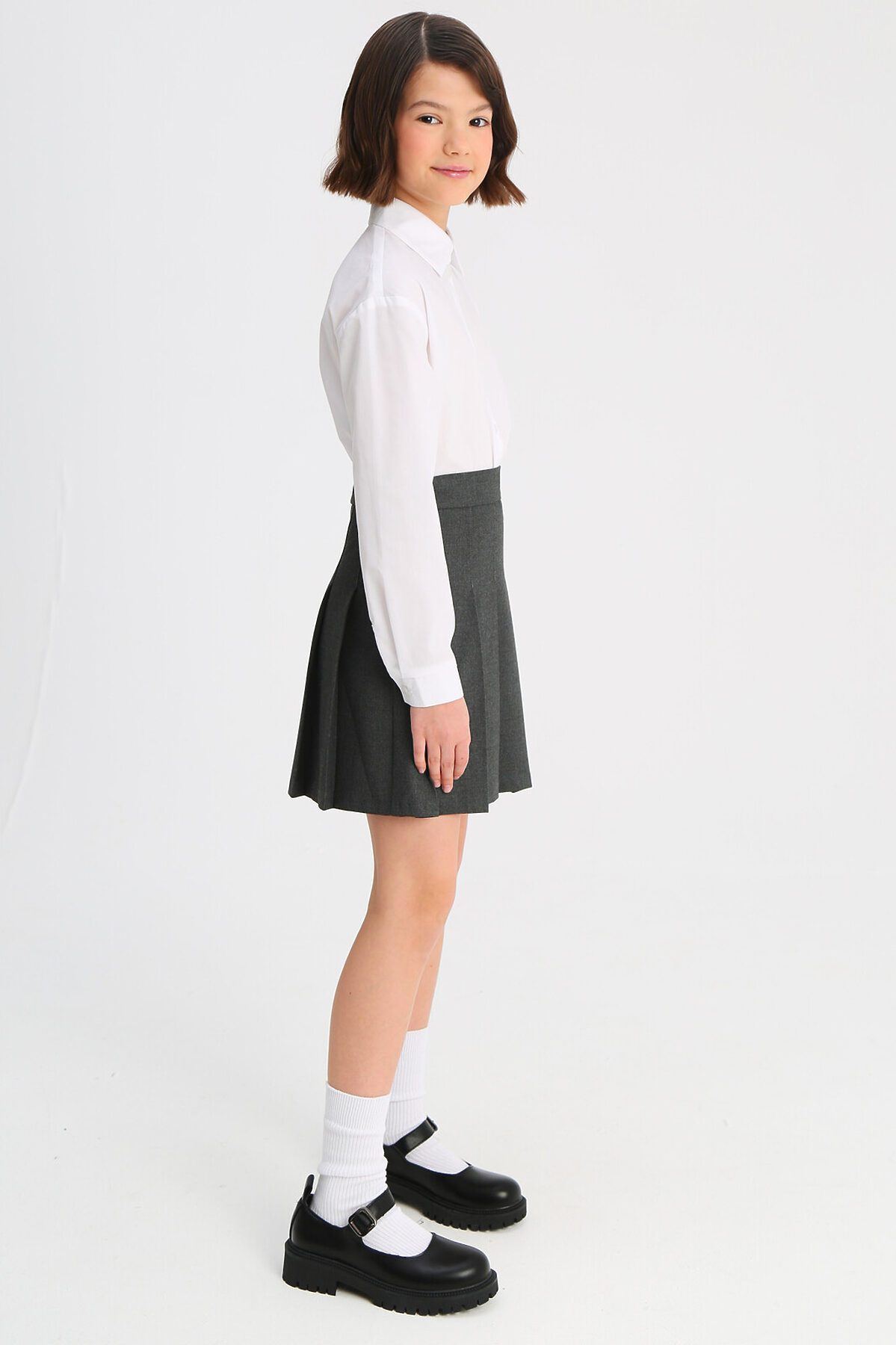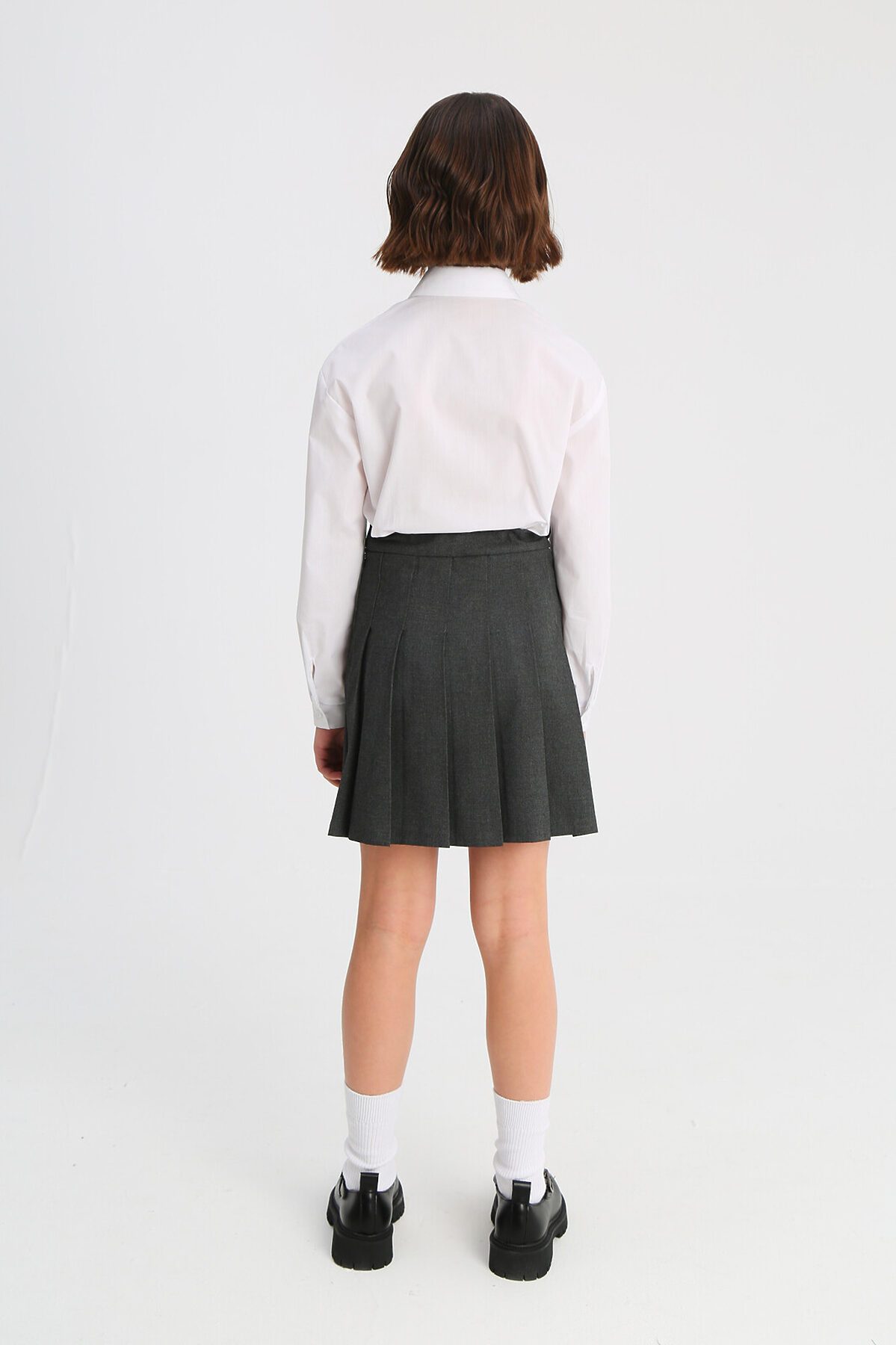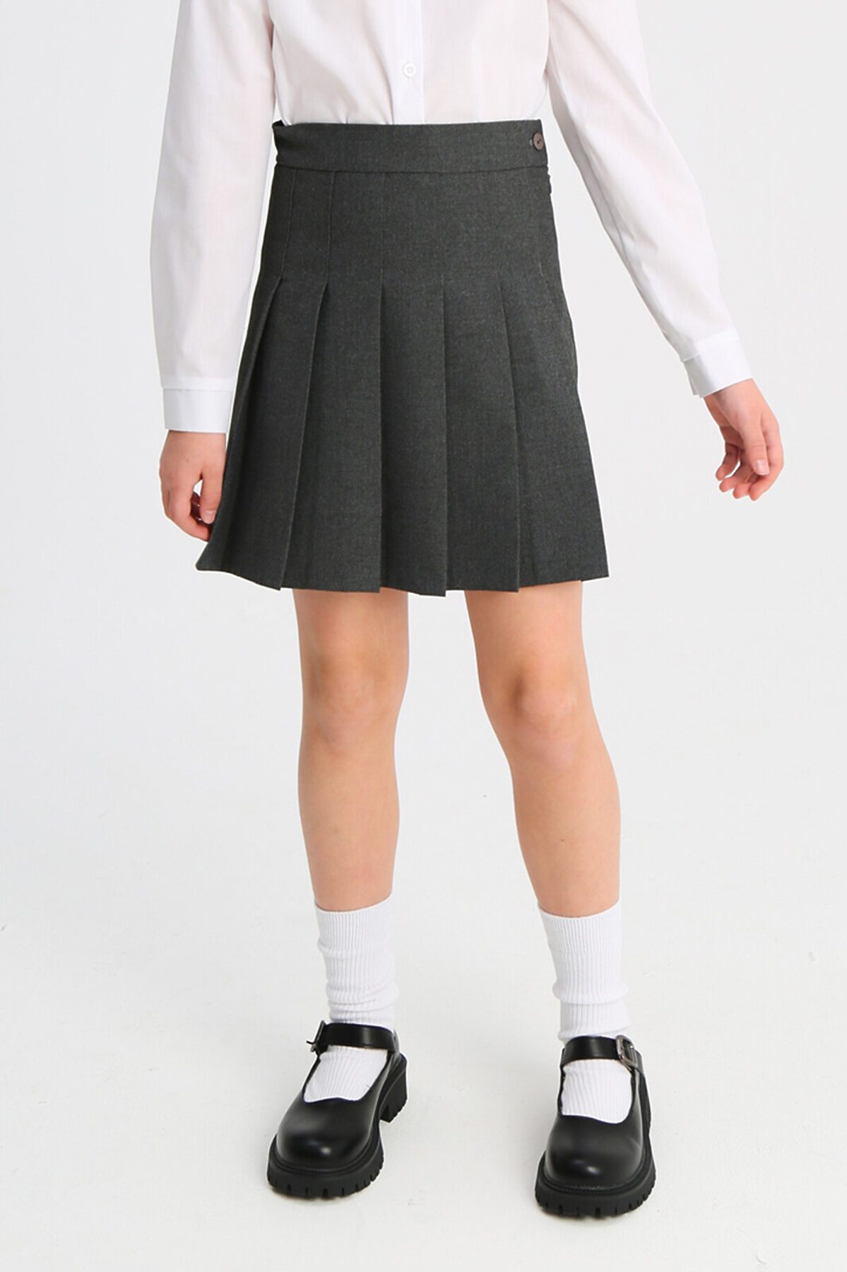 Элегантная юбка тенниска в складку, из износостойкой и устойчивой к смятию поливискозы. Складки частично застрочены Застёгивается на потайную молнию в боковом шве и пуговицу на втачном поясе. Пояс с регулируемой резинкой обеспечивает удобную посадку и комфорт в ежедневной носке. Эластичные волокна в составе обеспечивают комфорт в движении.
