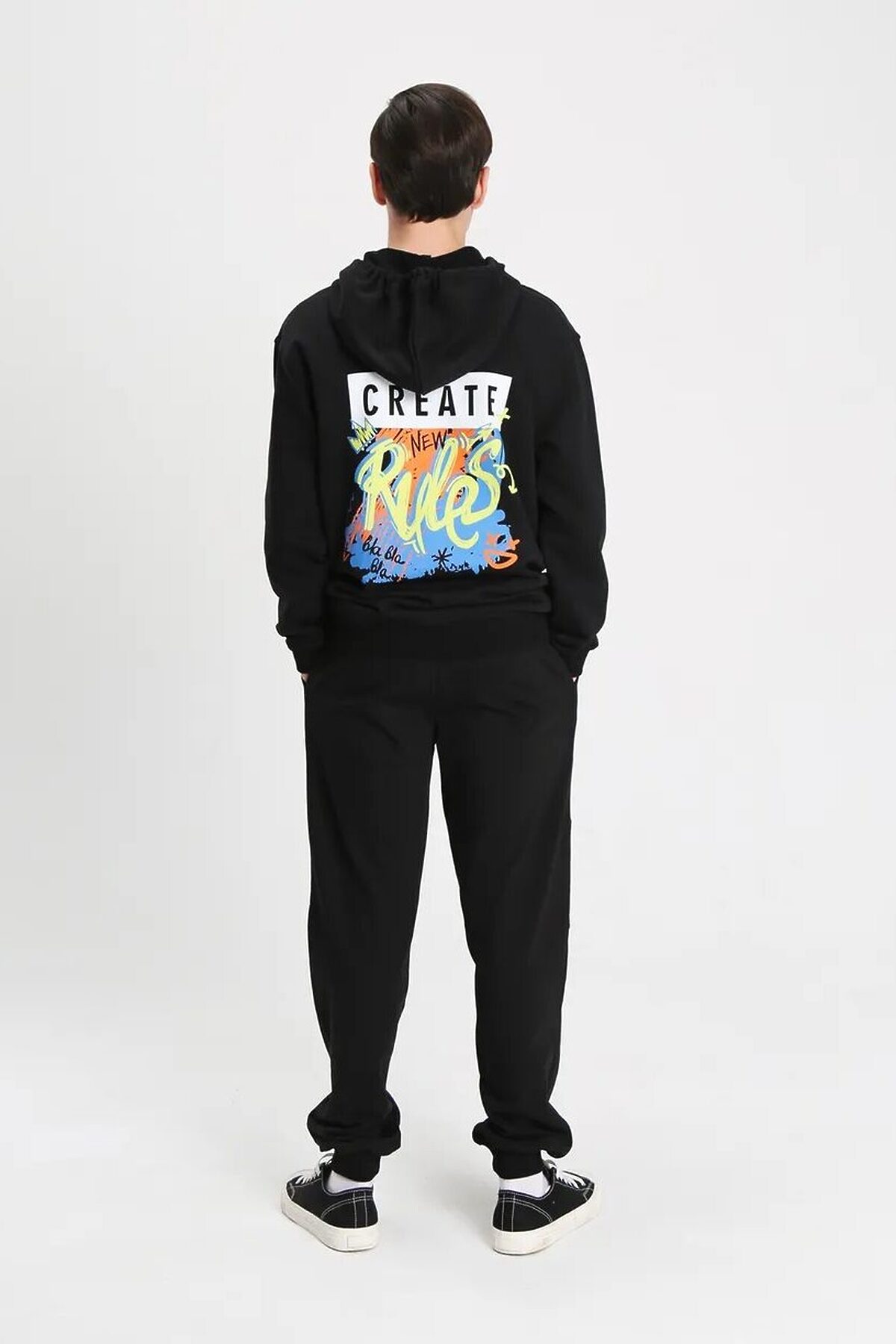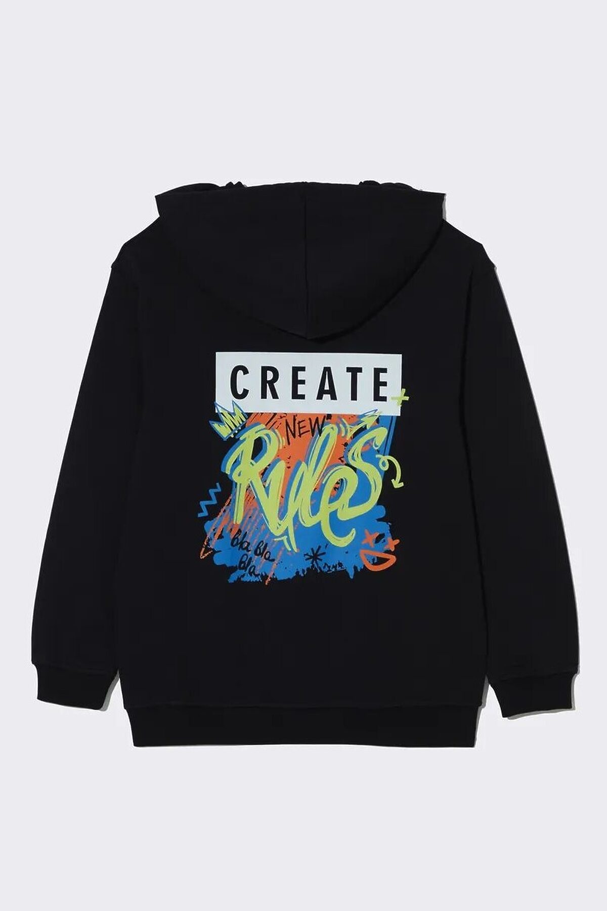 Толстовка для мальчика изготовлена из высококачественного трикотажа, который отлично отводит влагу и не раздражает кожу. Кроме того, капюшон худи для мальчика со шнурком и обеспечивает дополнительную защиту от внезапной непогоды. Карман-кенгуру оверсайз худи позволит хранить различные важные мелочи. Сзади худи для мальчика расположен принт в стиле граффити с текстовыми надписями, который станет прекрасным дополнением к любому образу.