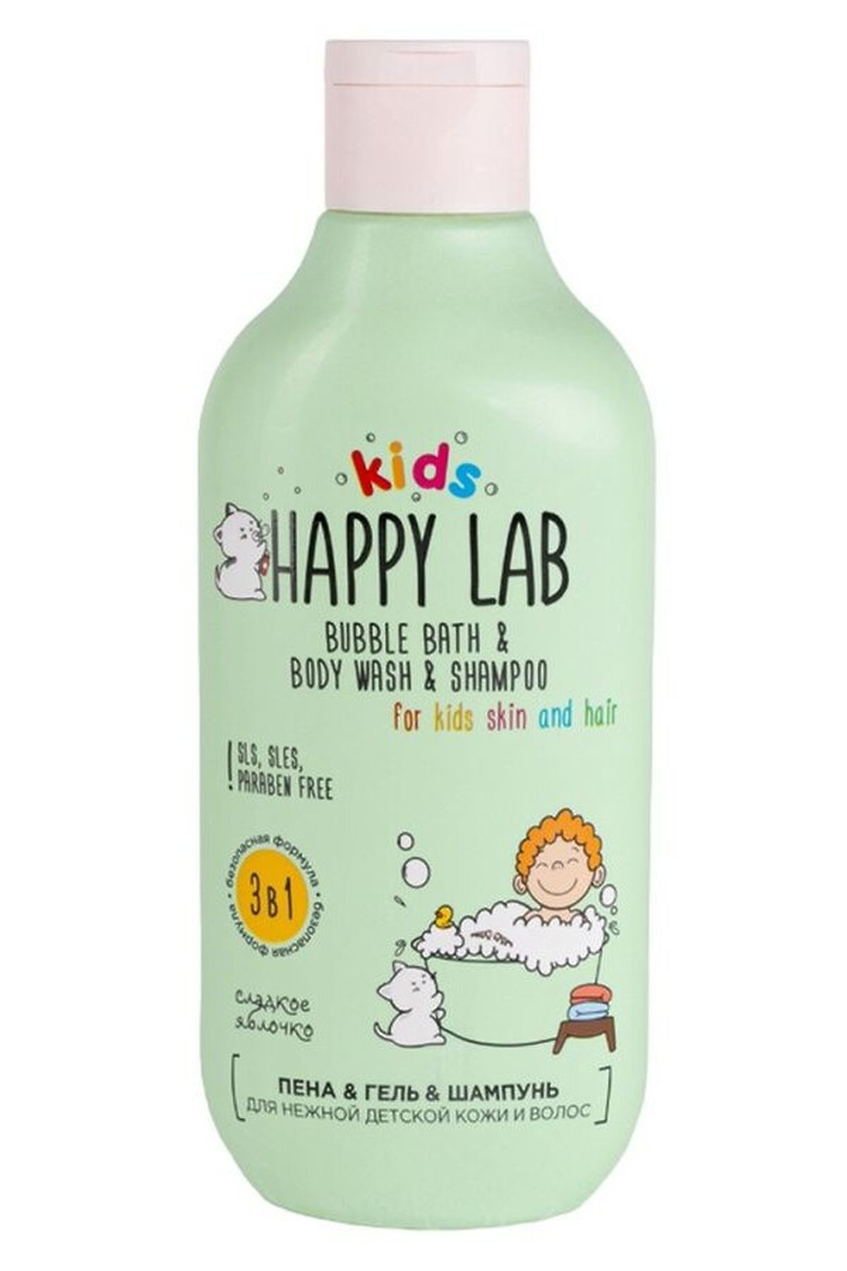 Happy Lab Kids Средство 3 в 1: пена, гель, шампунь для нежной детской кожи и волос / Сладкое яблочко, 300 мл KRISTALLER, зеленый
