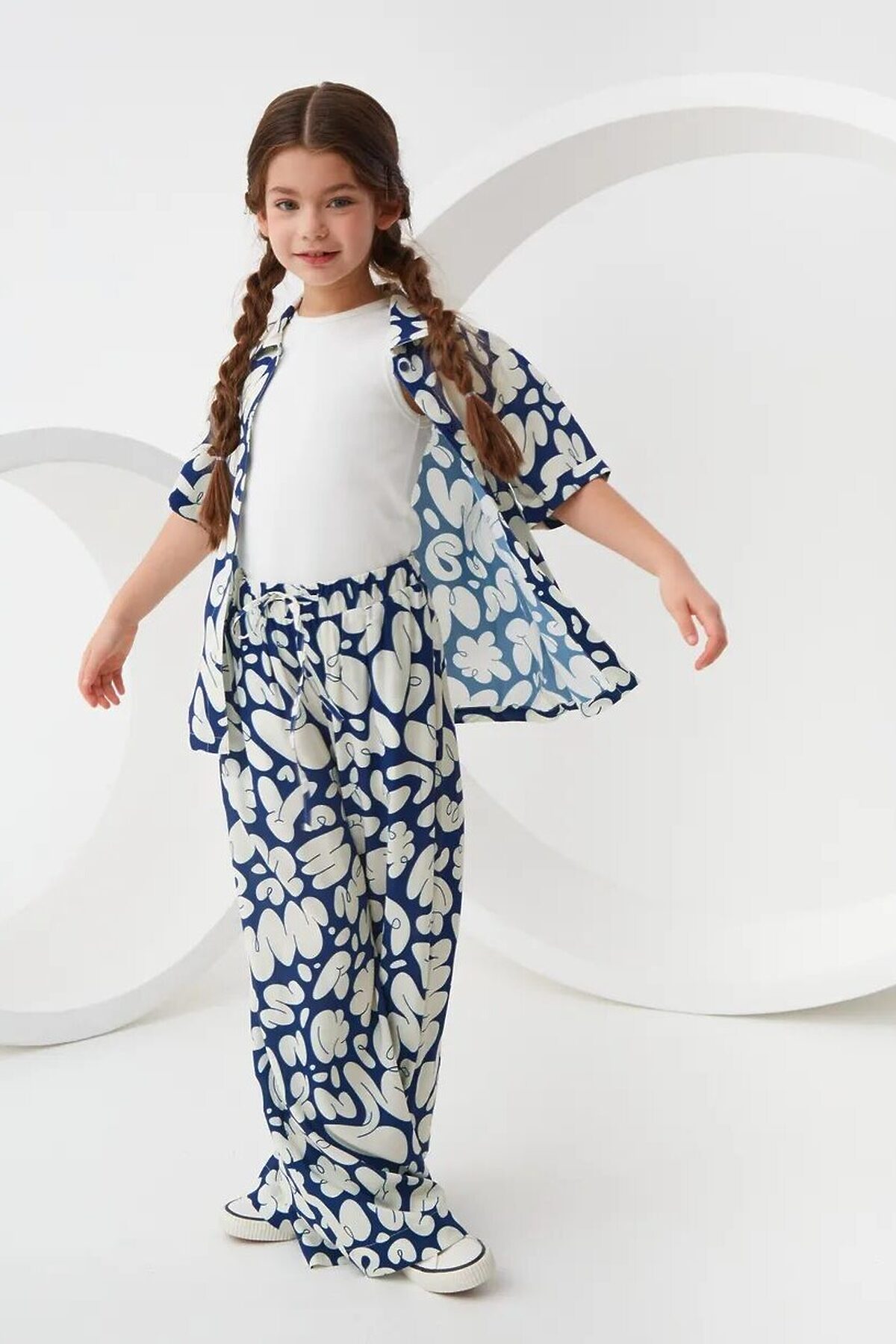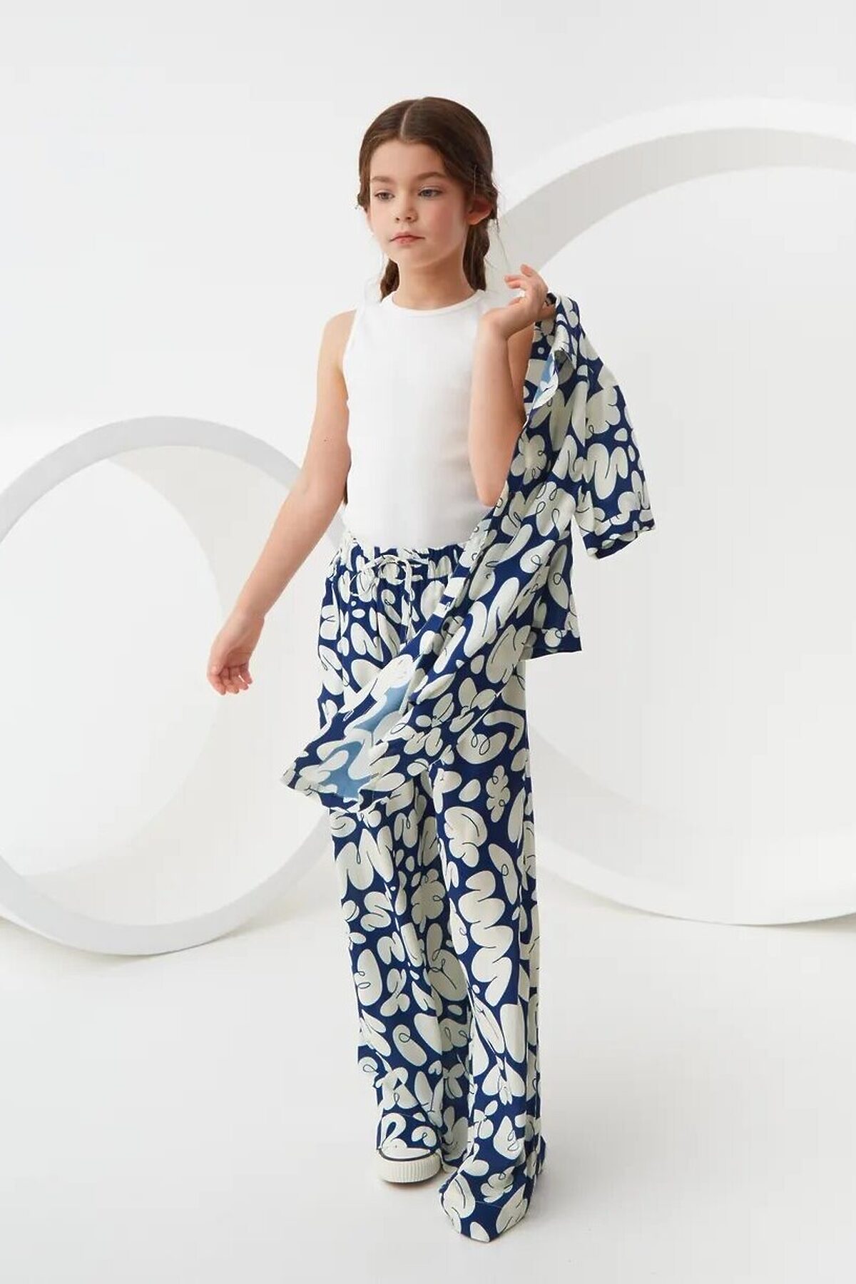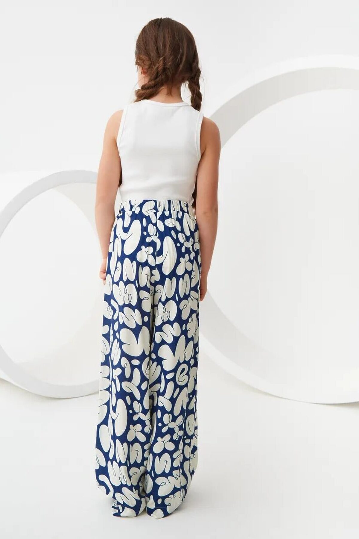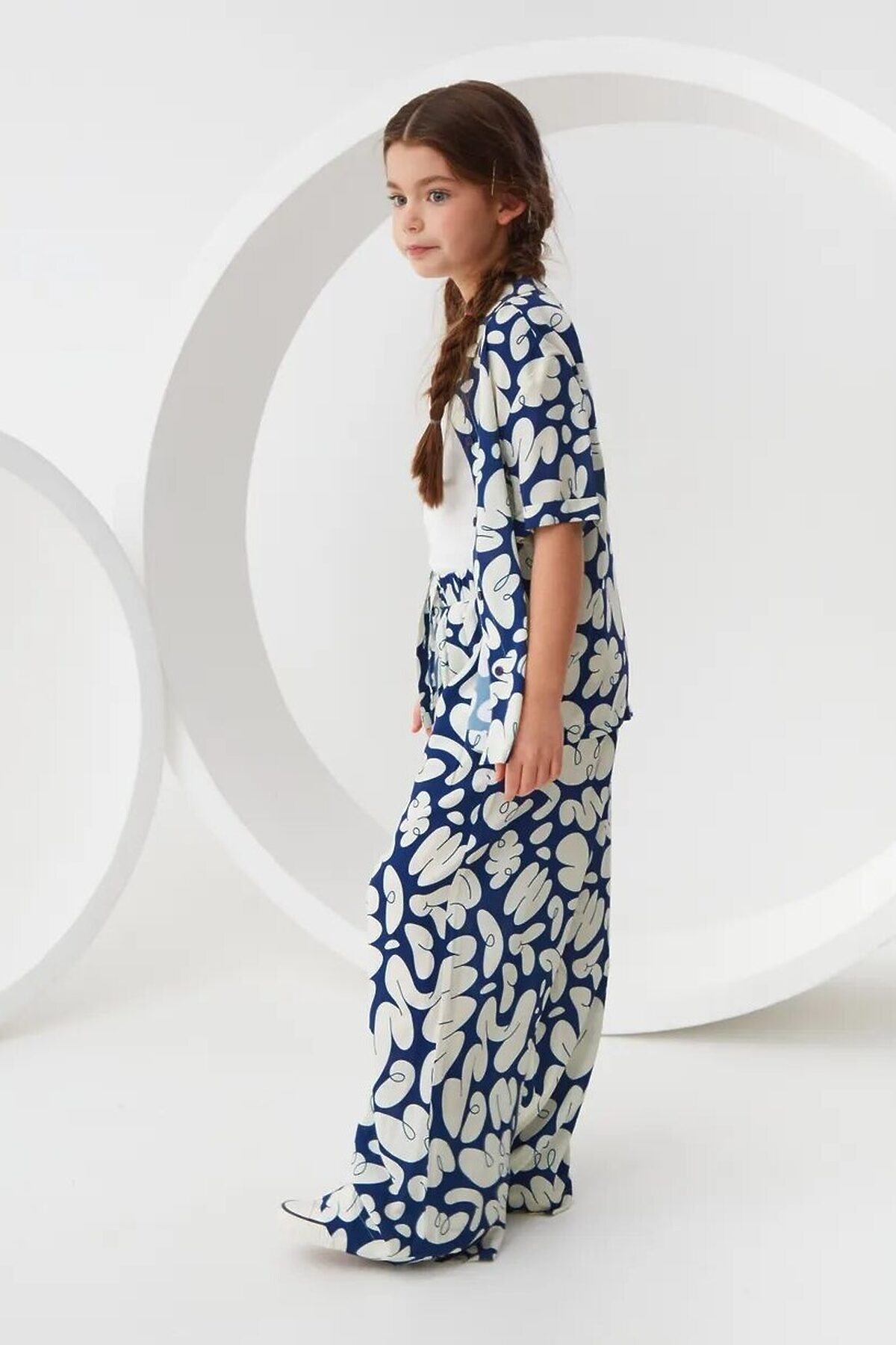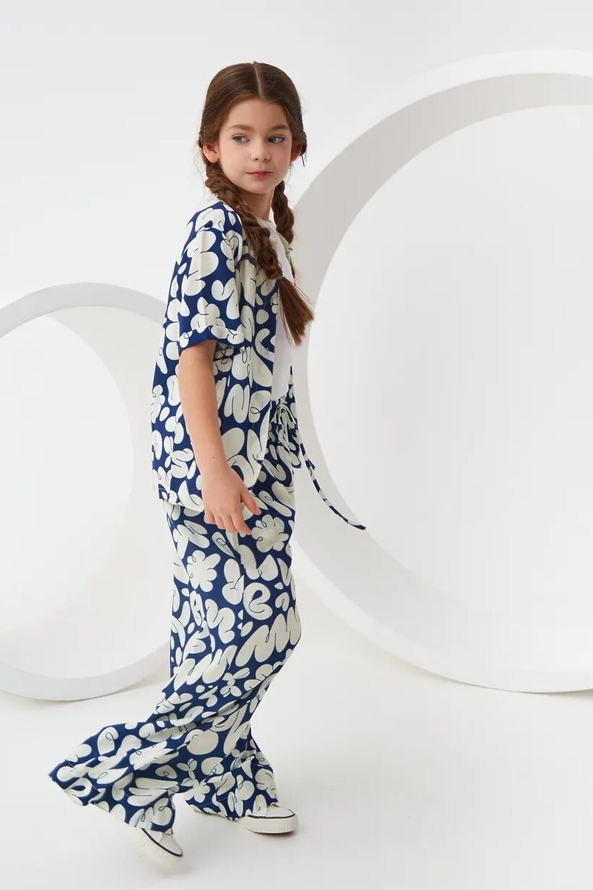 Широкие брюки из легкой струящейся ткани из 100% вискозы. Приятная на ощупь ткань не потеряет своего первоначального вида после множества стирок. Ткань хорошо пропускает воздух и не закатывается. Расслабленный силуэт с комфортной средней посадкой талии. Эластичный пояс с кулиской. Прорезные карманы в боковых швах и брючины полной длины. Размерный ряд 128 – 176 см.