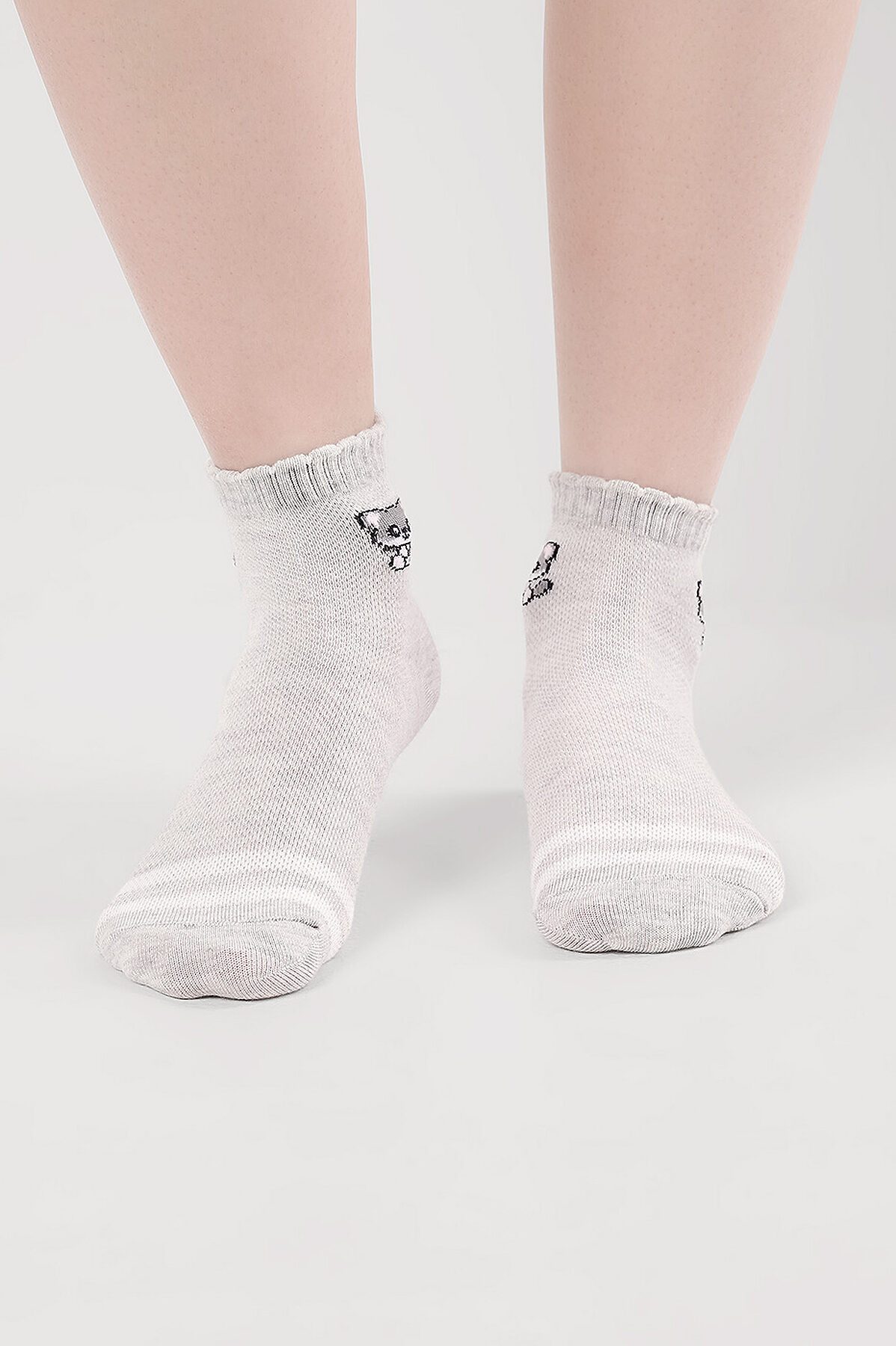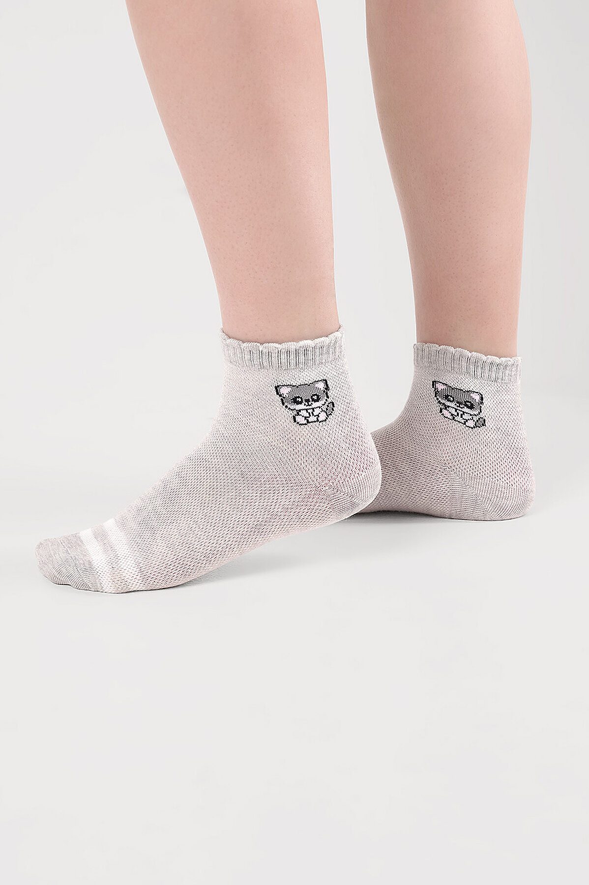 Облегченные носки плетение сетка для девочки с рисунком кошки на паголенке.
