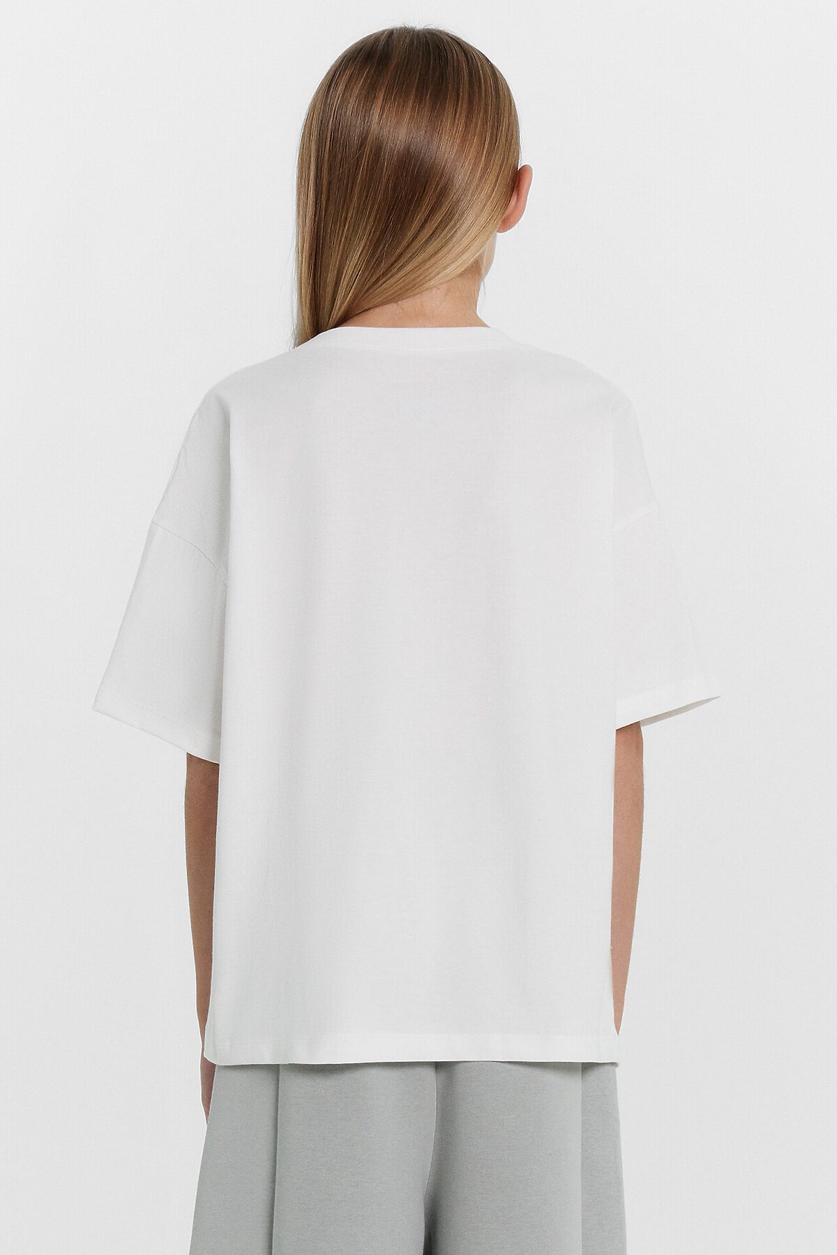 Футболка для девочки выполнена из мягкой и приятной кулирки, обеспечивая комфорт и легкость при носке. Силуэт свободный, позволяя вашей девочке двигаться свободно и комфортно. Длина до середины бедра делает эту модель идеальной для любых активностей. Короткие рукава и круглая горловина придают футболке стильный и современный вид. Эта футболка станет отличным дополнением к гардеробу вашей девочки, даря ей комфорт и стиль каждый день!