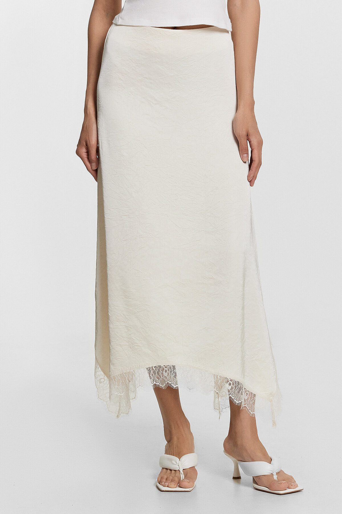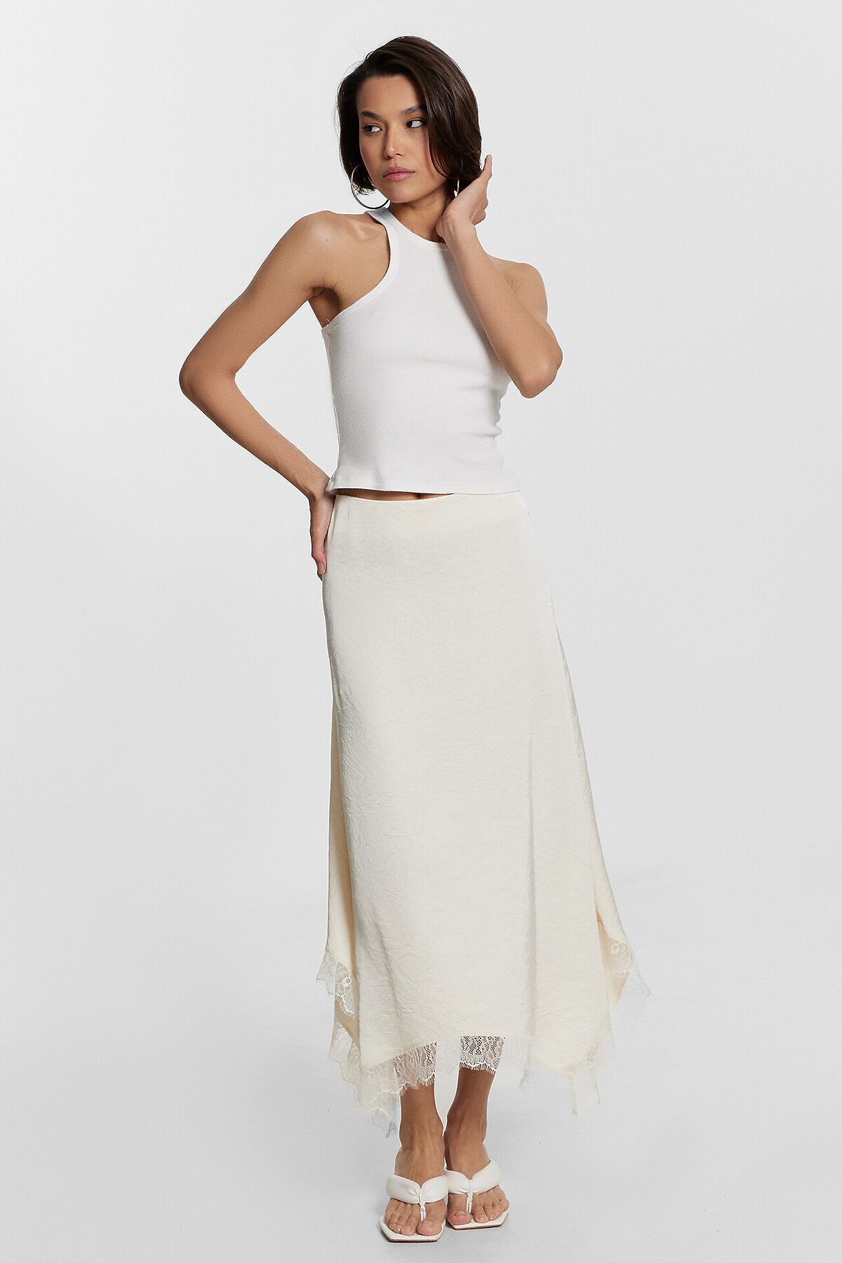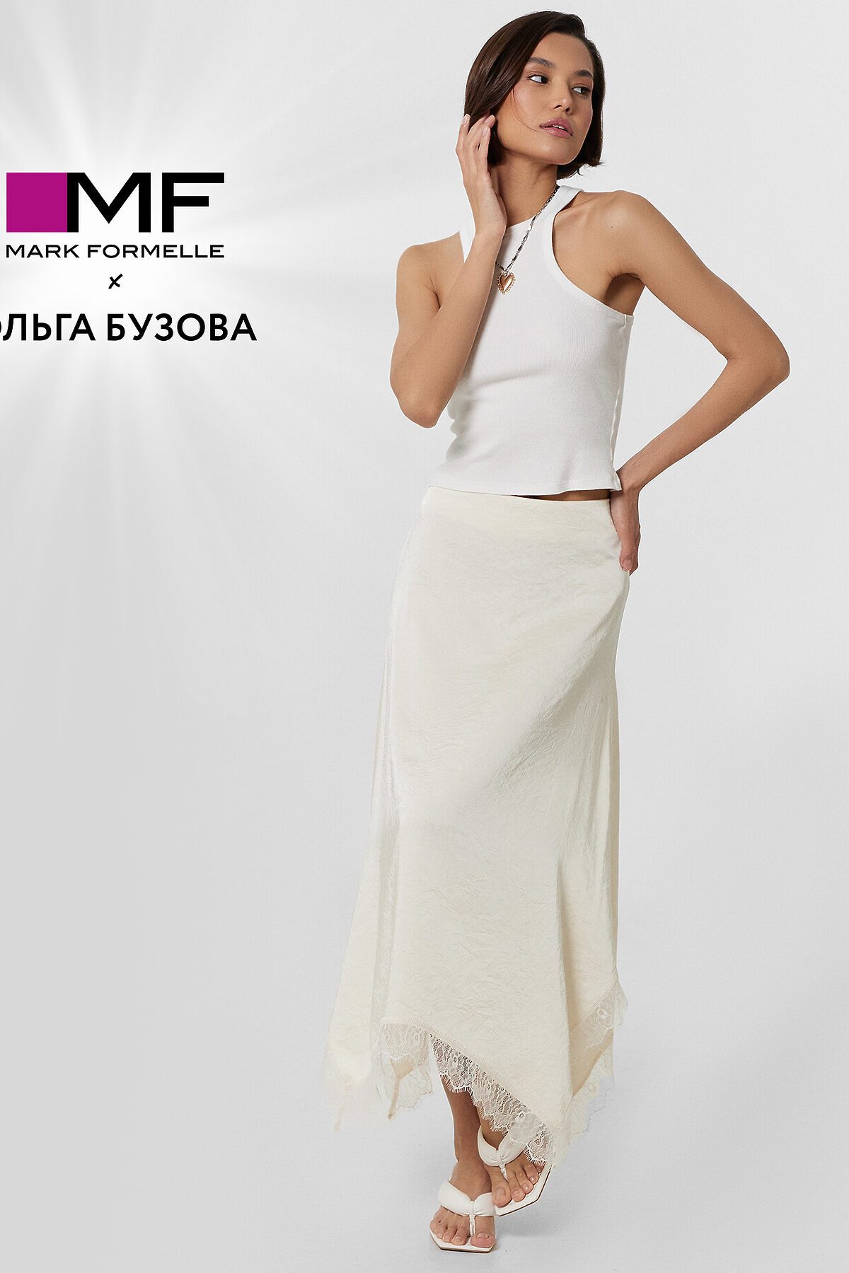 Юбка женская Mark Formelle x Ольга Бузова с кружевными деталями. Лимитированная коллекция "Мне можно все" — яркое и стильное решение для поклонников современного дизайна и самовыражения. Эта элегантная юбка А-силуэта — идеальное сочетание женственности и утонченности. Длина миди подчеркивает изящность образа, создавая гармоничные пропорции. Потайная молния в боковом шве делает посадку аккуратной, обеспечивая комфорт и удобство в носке. Фигурный нижний срез, декорированный кружевом, добавляет юбке романтичный акцент, придавая образу нежность и изысканность. Изделие выполнено из смесового материала с добавлением вискозы, который отличается мягкостью, легкостью и приятной текстурой. Эта юбка станет стильным дополнением как повседневных, так и особенных образов, позволяя создавать элегантные и гармоничные сочетания.