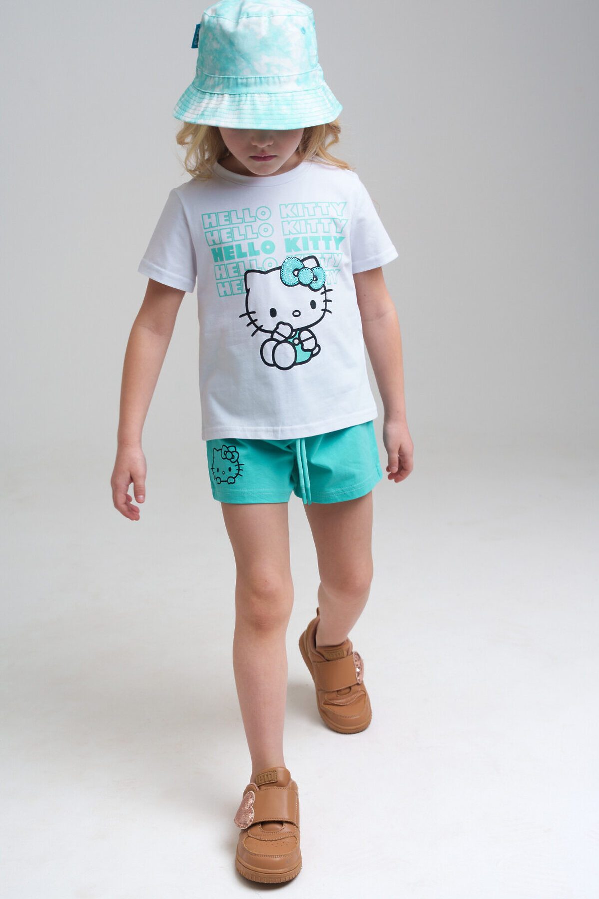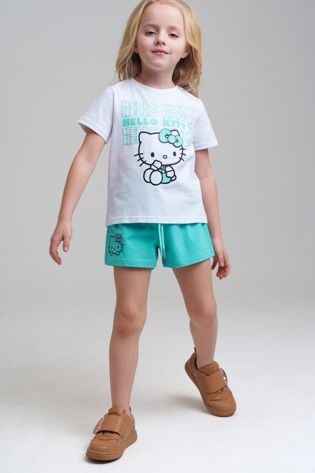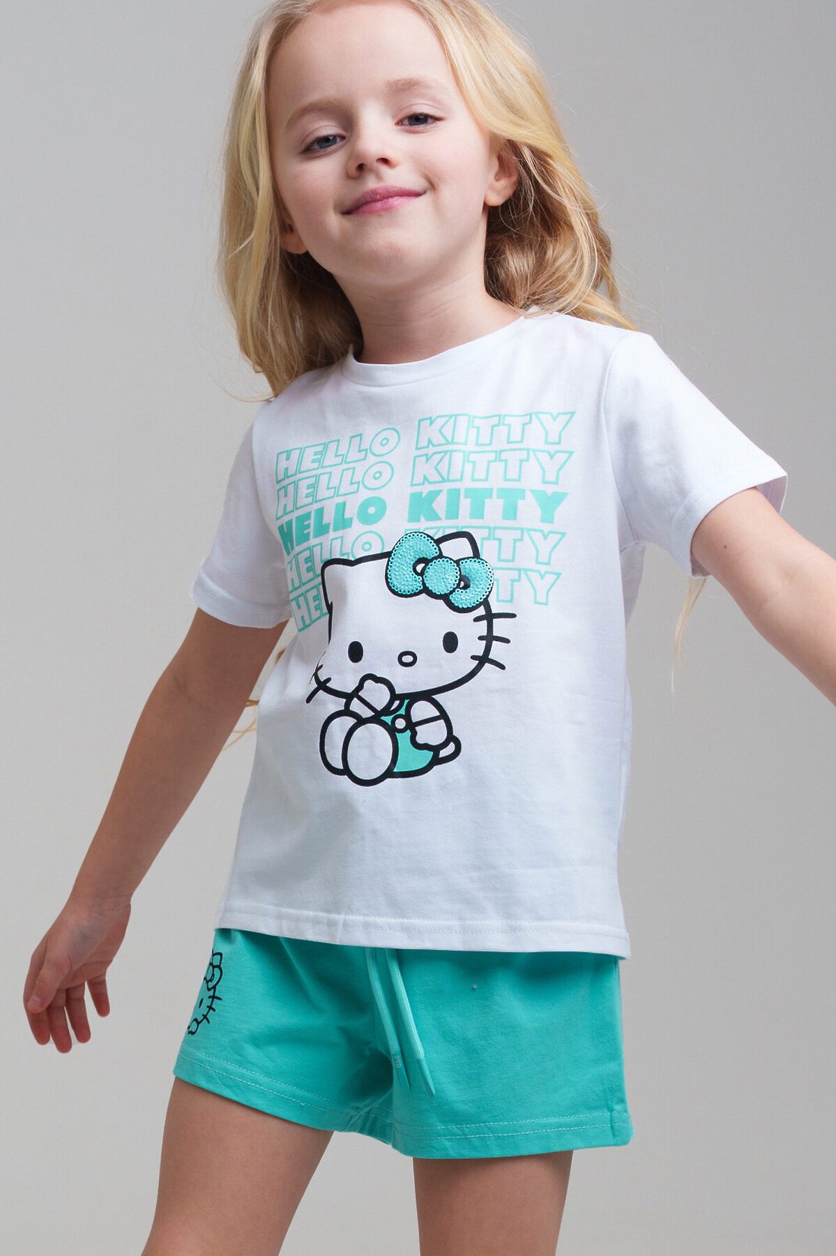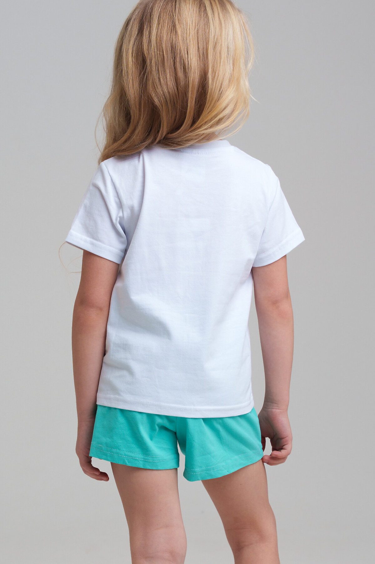 Костюм детский для девочки. Футболка, шорты из эластичного и приятного на ощупь трикотажа джерси. Шорты на резинке со шнурком. Высокое содержание хлопка 95%. Благодаря наличию эластана в составе ткани изделие держит форму и меньше мнется. Модель выполнена из качественного и приятного на ощупь трикотажа.