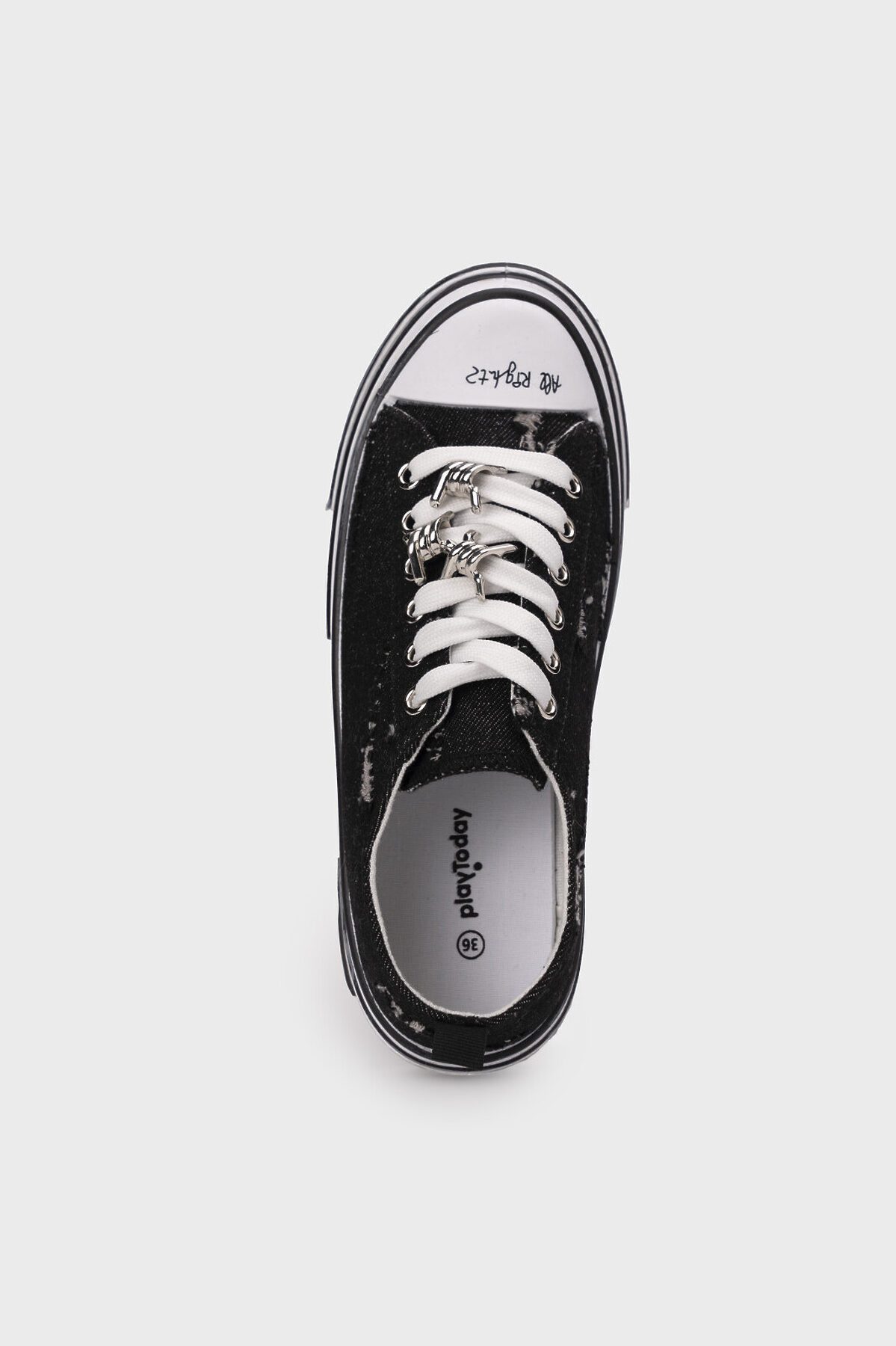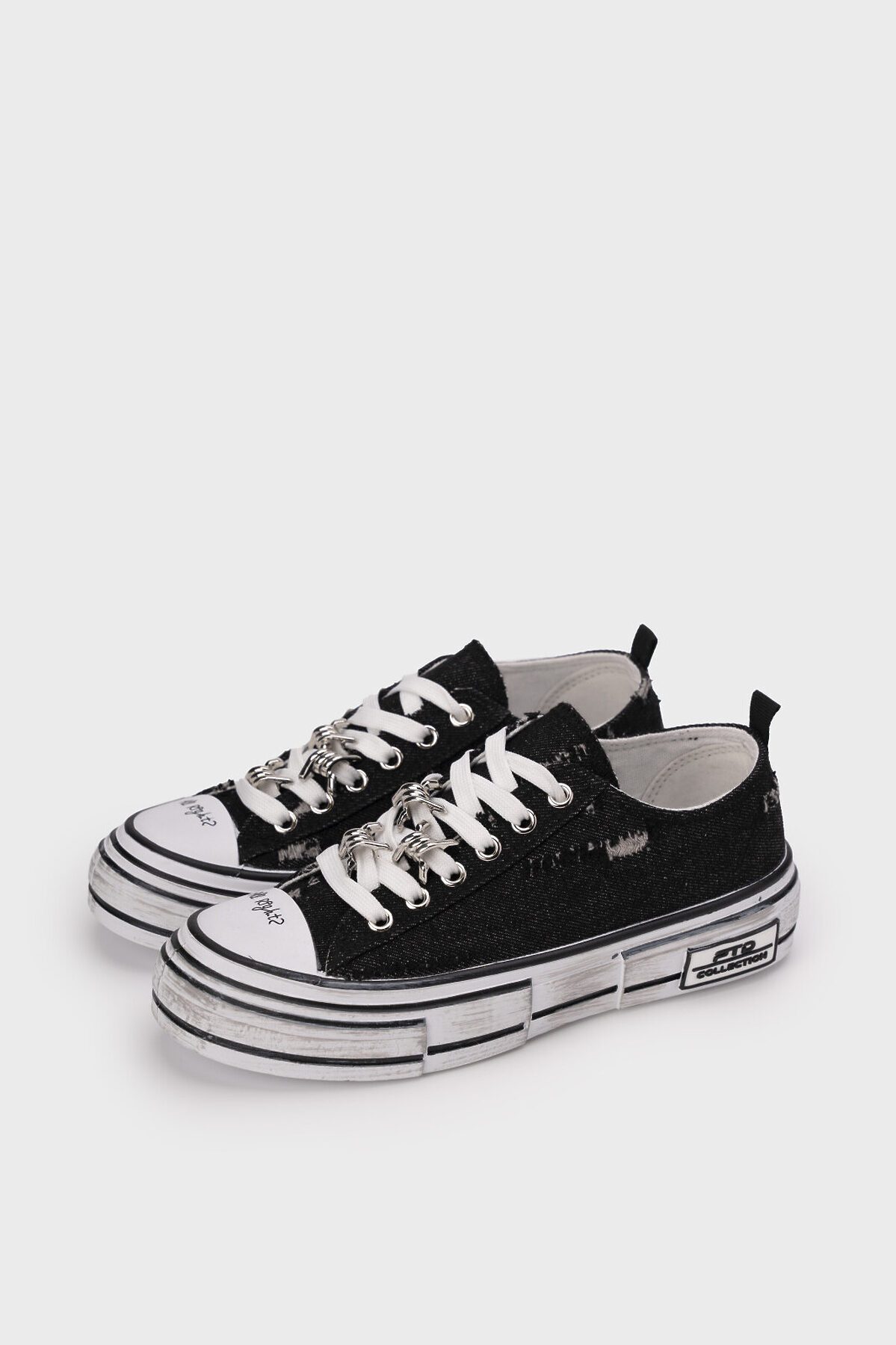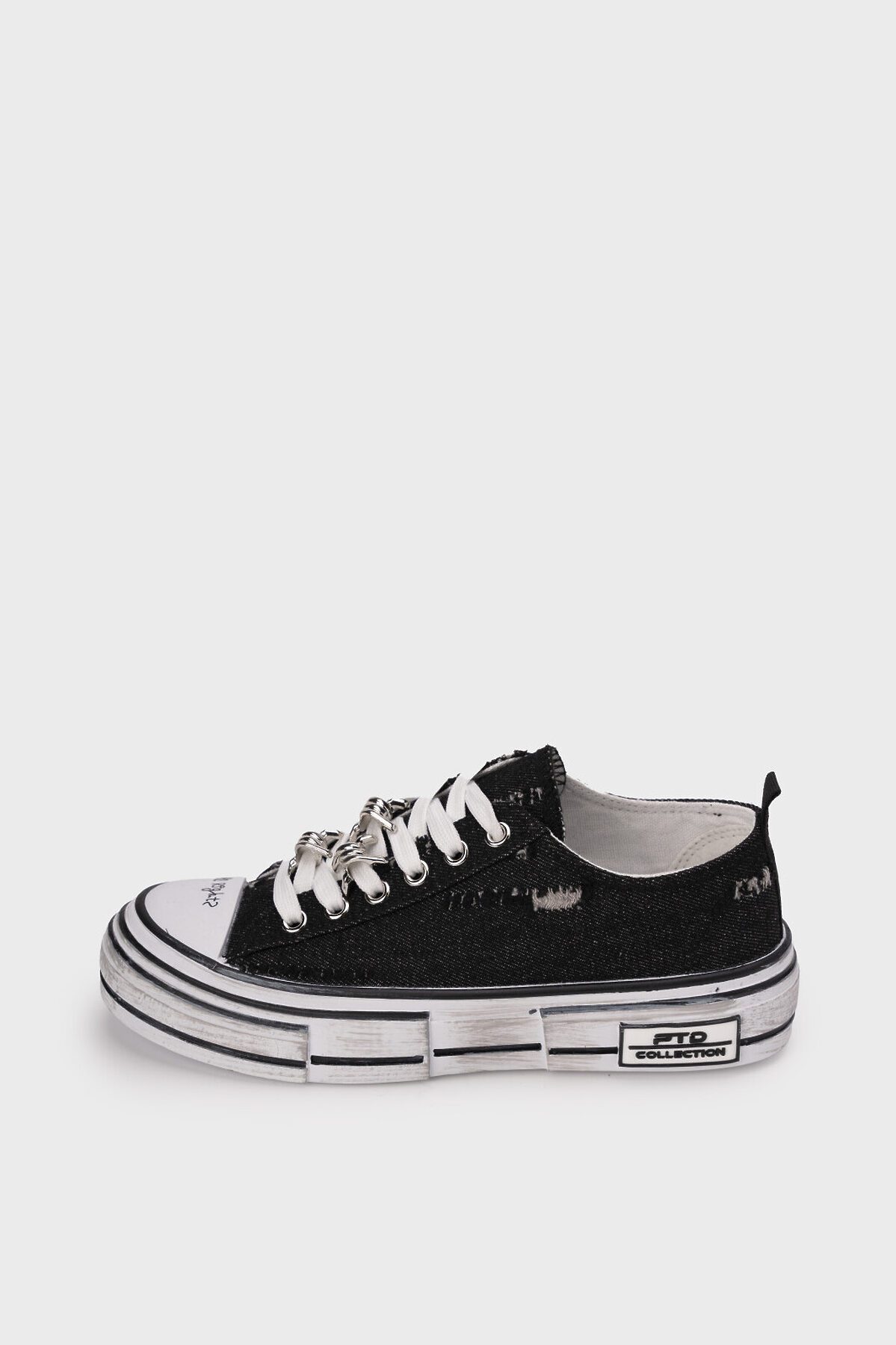 Стильные кеды на шнурках для мальчика подростка. Модель выполнена из рваной джинсы и декорирована металлической фурнитурой в стиле ROCK. Верх обуви выполнен из воздухопроницаемого текстиля. Текстильная хлопковая подкладка обладает высокой гигроскопичностью. Текстильная хлопковая стелька вынимается для просушки. Подошва из ПВХ легкая и гибкая, устойчива к истиранию. Подошва имеет отделку с эффектом DIRTY SHOES (грязная, потертая обувь).