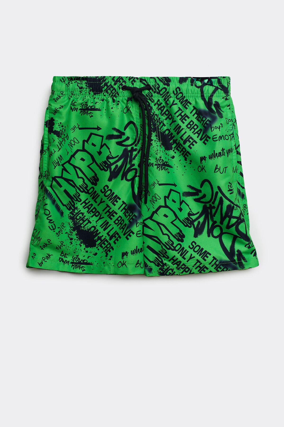 Плавательные шорты из быстросохнущего материала с водоотталкивающей пропиткой для мальчика подростка. Бордшорты для мальчика подростка (swimshort) средней длины. Модель с подкладкой из мягкой сетки в виде трусов, карманы из сетки. Пояс на резинке с дополнительной регулировкой по талии шнурком. Благодаря UF-защите, ткань сохраняет первоначальный вид даже при длительном пребывании на солнце.