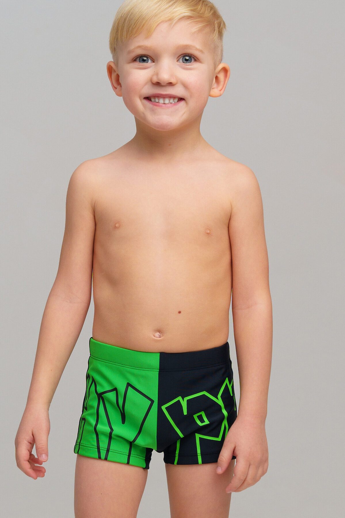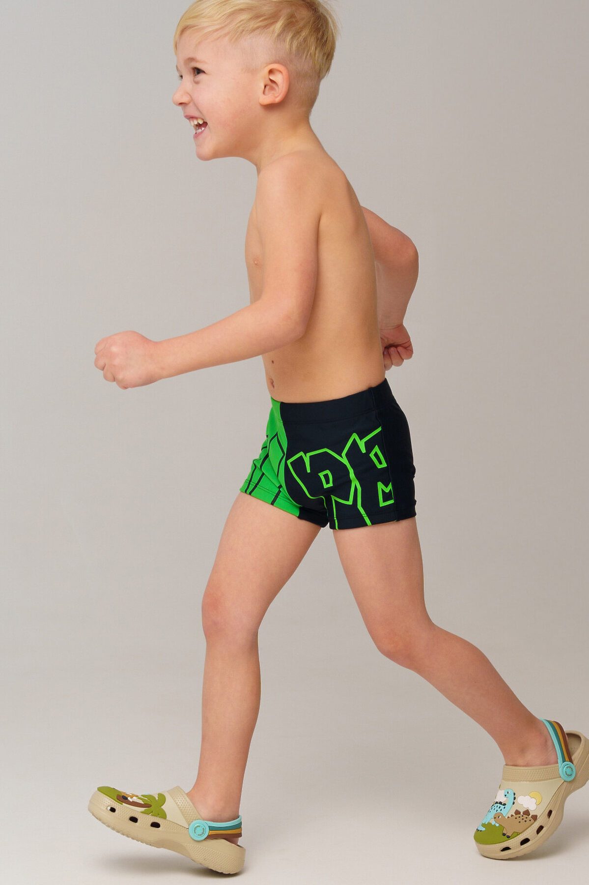 Плавки-шорты детские для мальчика. Плавки для пляжа и бассейна выполнены из быстросохнущего материала. Утяжка пояса шнурком. Благодаря хлор-защите и UF-защите ткань долго сохраняет первоначальный внешний вид.