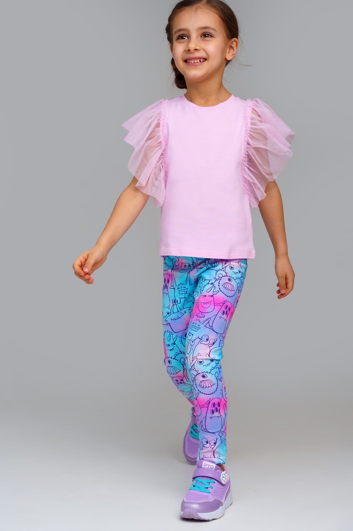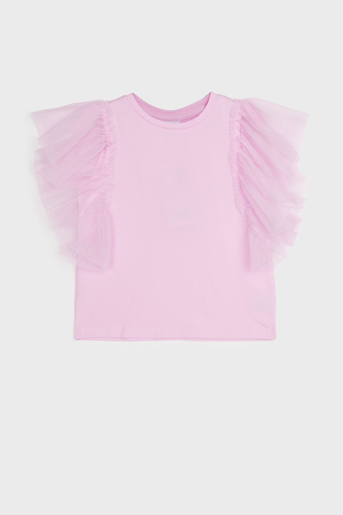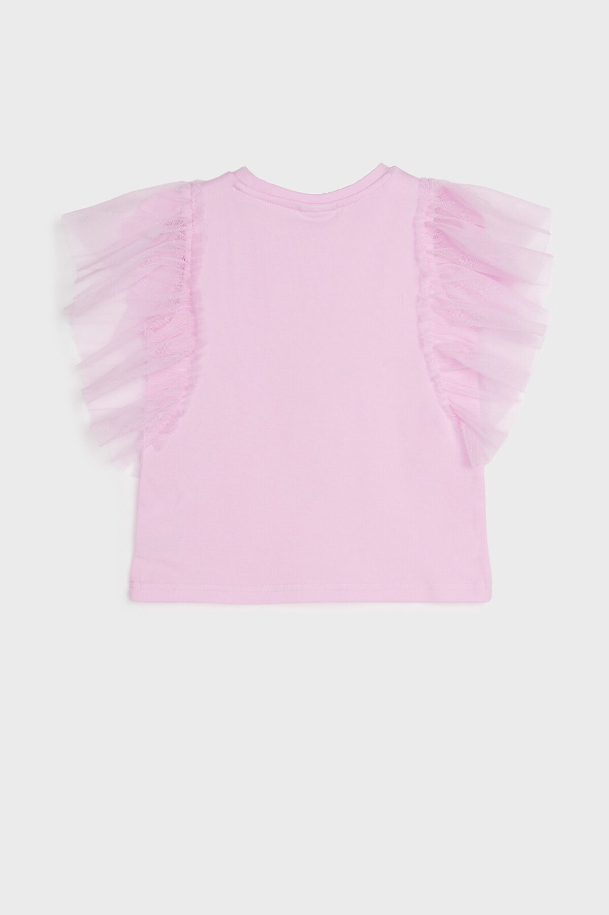 Футболка детская для девочки. Футболка с высоким содержанием хлопка 95%. Благодаря наличию эластана в составе ткани изделие проще в уходе и держит форму. Рукава-крылышки из сетки. Модель выполнена из качественного и приятного на ощупь трикотажа.