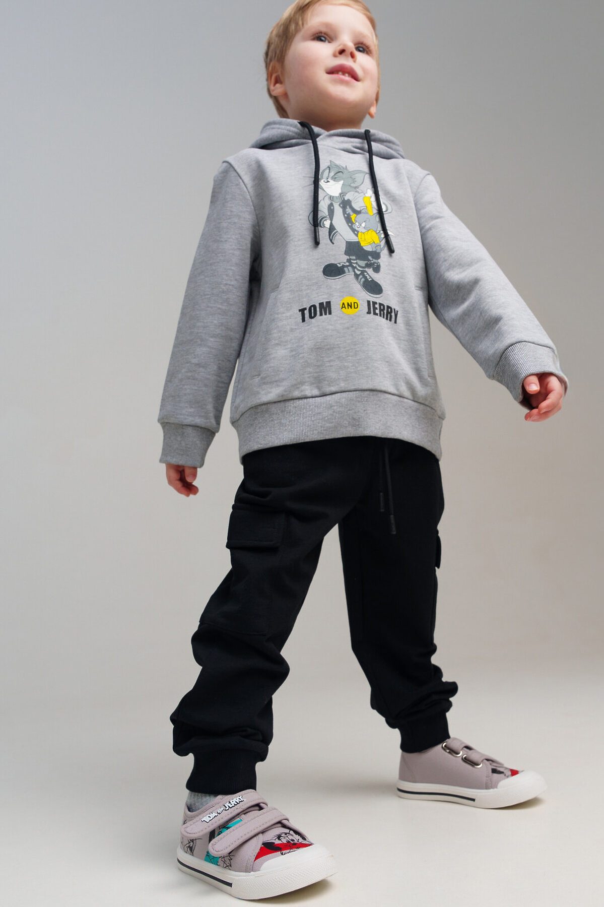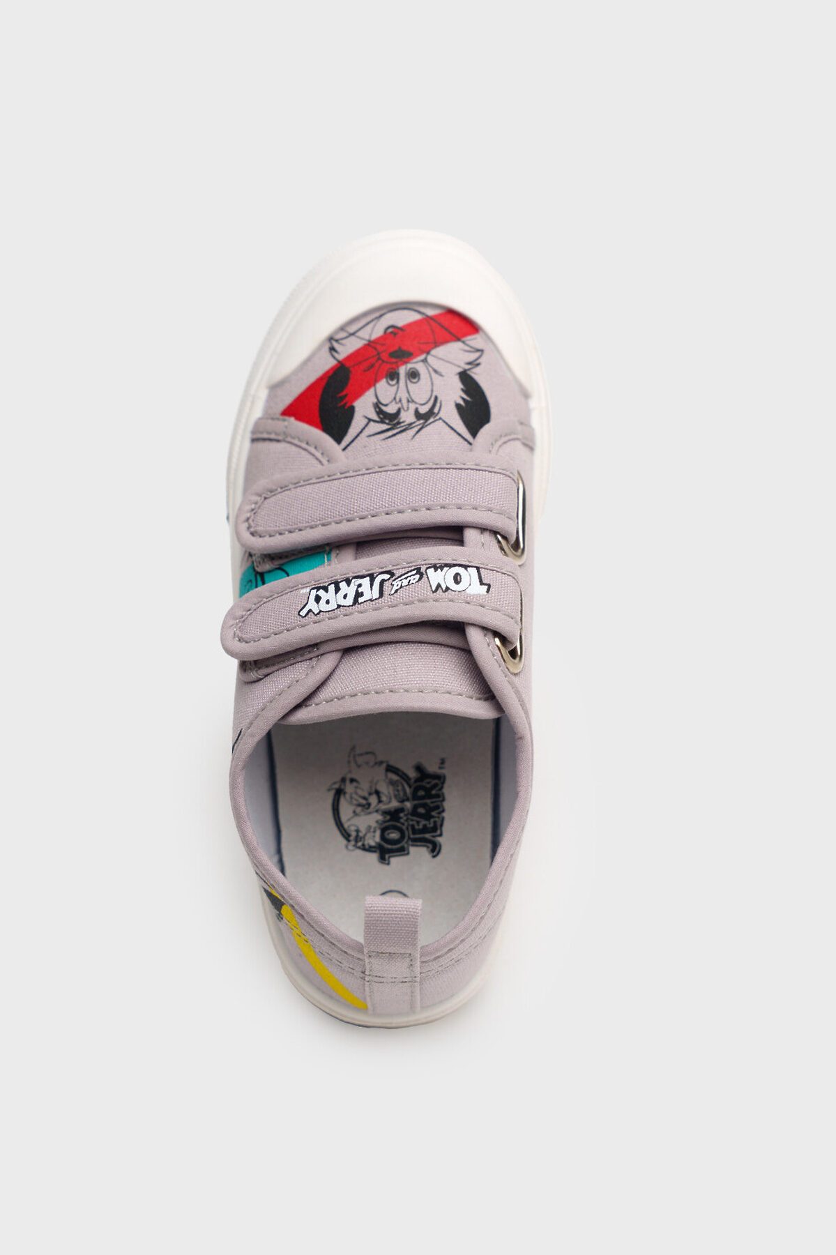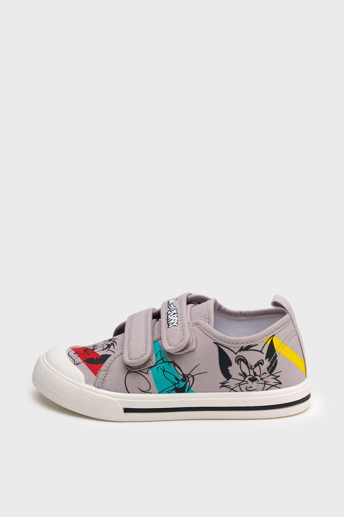 Кеды детские для мальчика. Стильные текстильные кеды с принтом любимых героев WARNER BROTHERS (Уорнер Бразерс): мышонком Джерри (Jerry) и котом Томом (Tom). Две застежки-липучки очень удобны при обувании. В обуви используется текстильная подкладка c 80% содержанием хлопка, которая обладает высокой гигроскопичностью. Стелька выполнена из свиной натуральной кожи и имеет анатомический элемент для поддержания свода стопы. Стелька съемная. Облегченная подошва из ПВХ гибкая, не скользит и устойчива к истиранию.