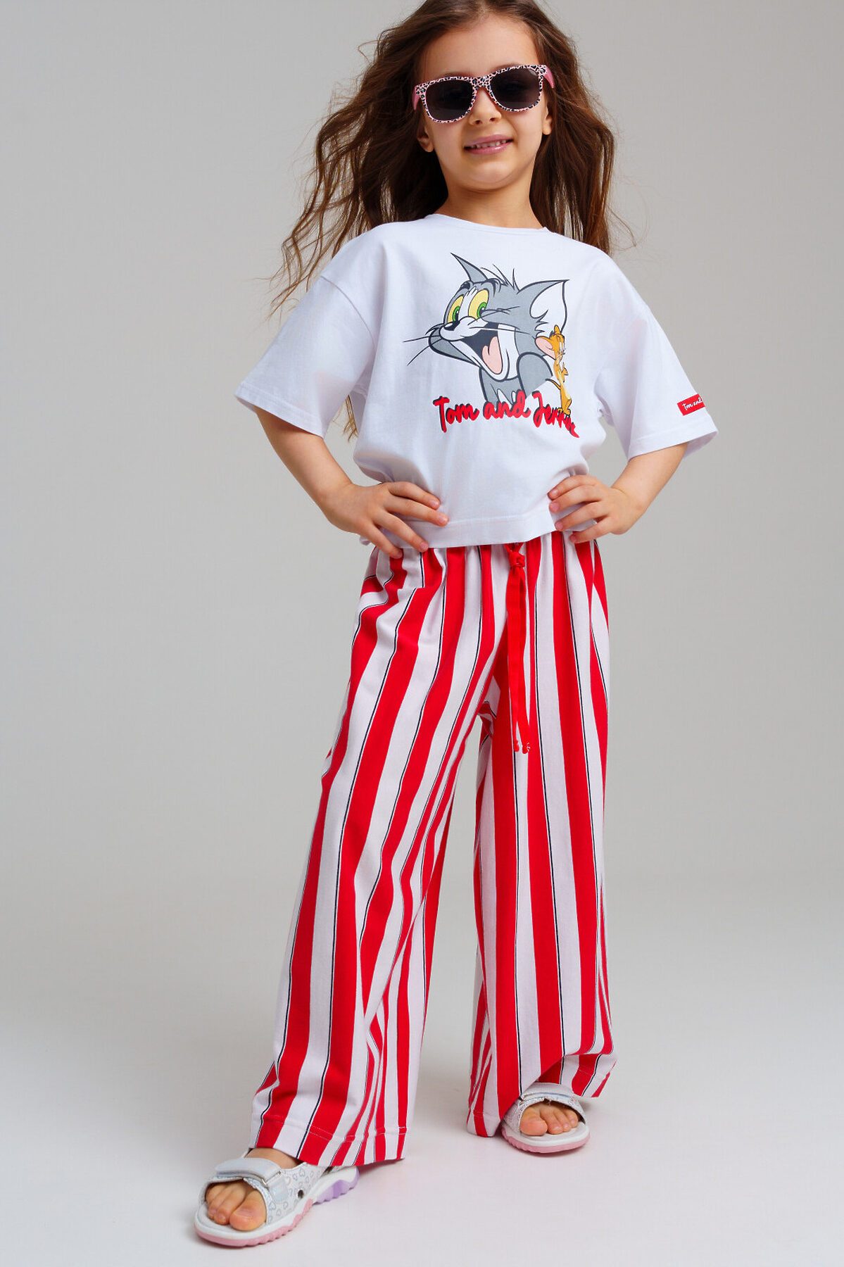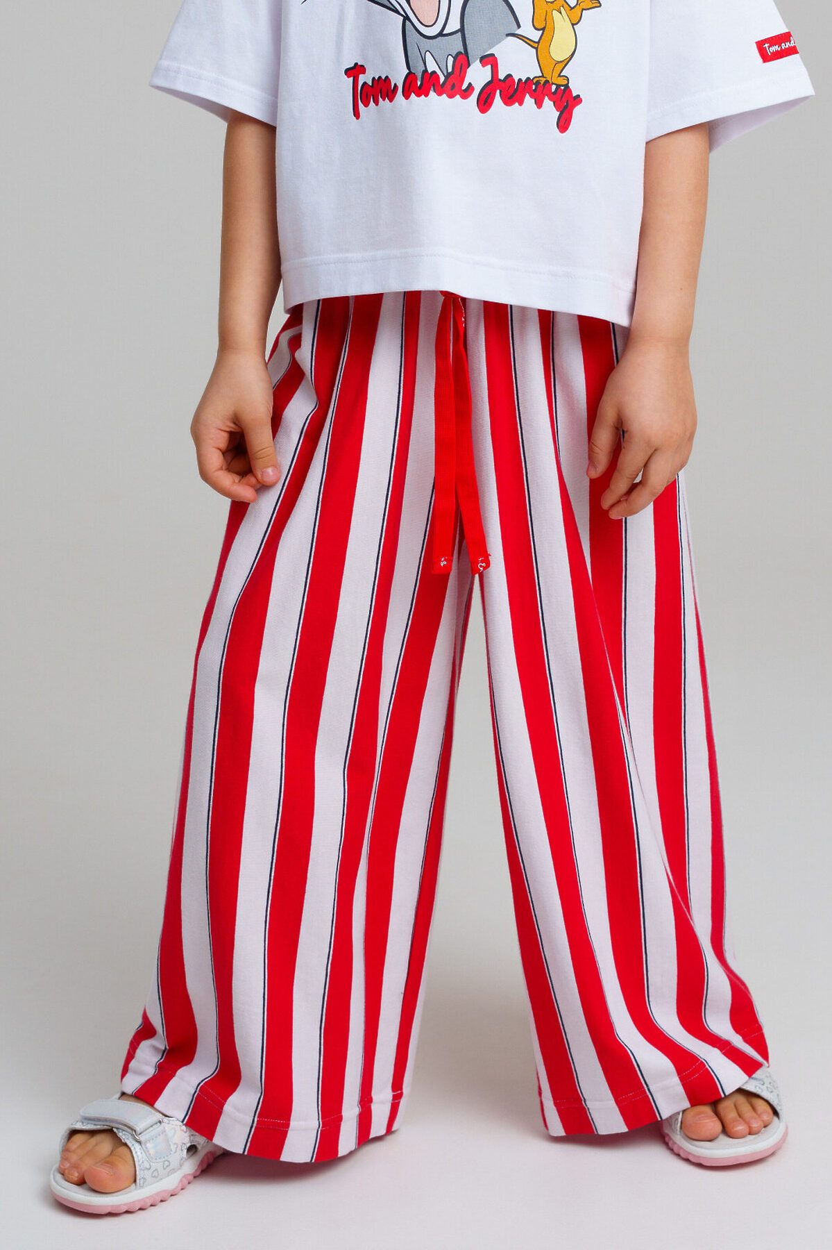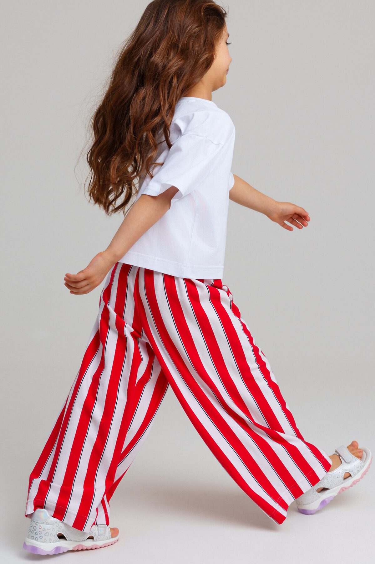 Брюки трикотажные для девочек PLAYTODAY, белый,красный