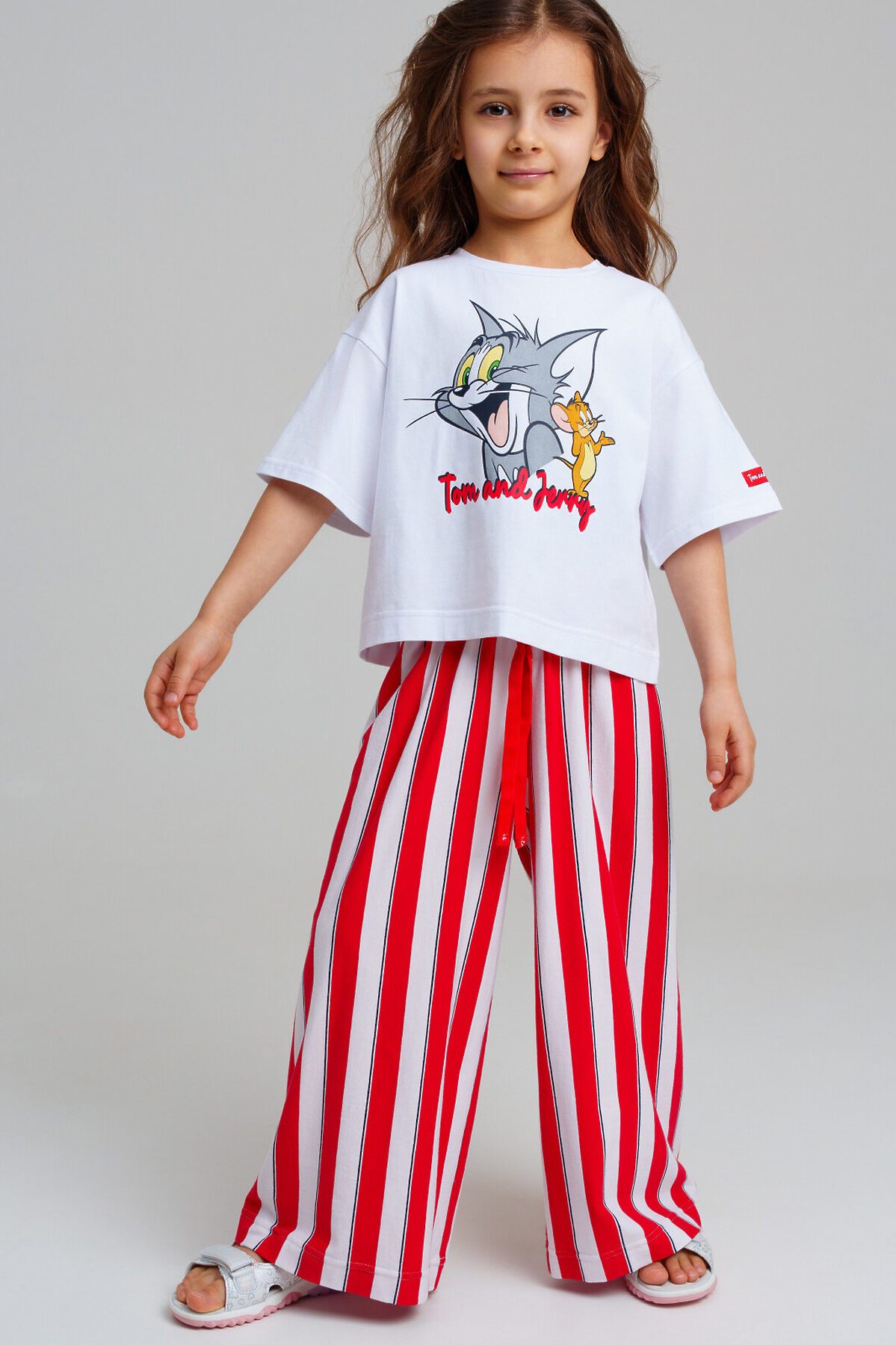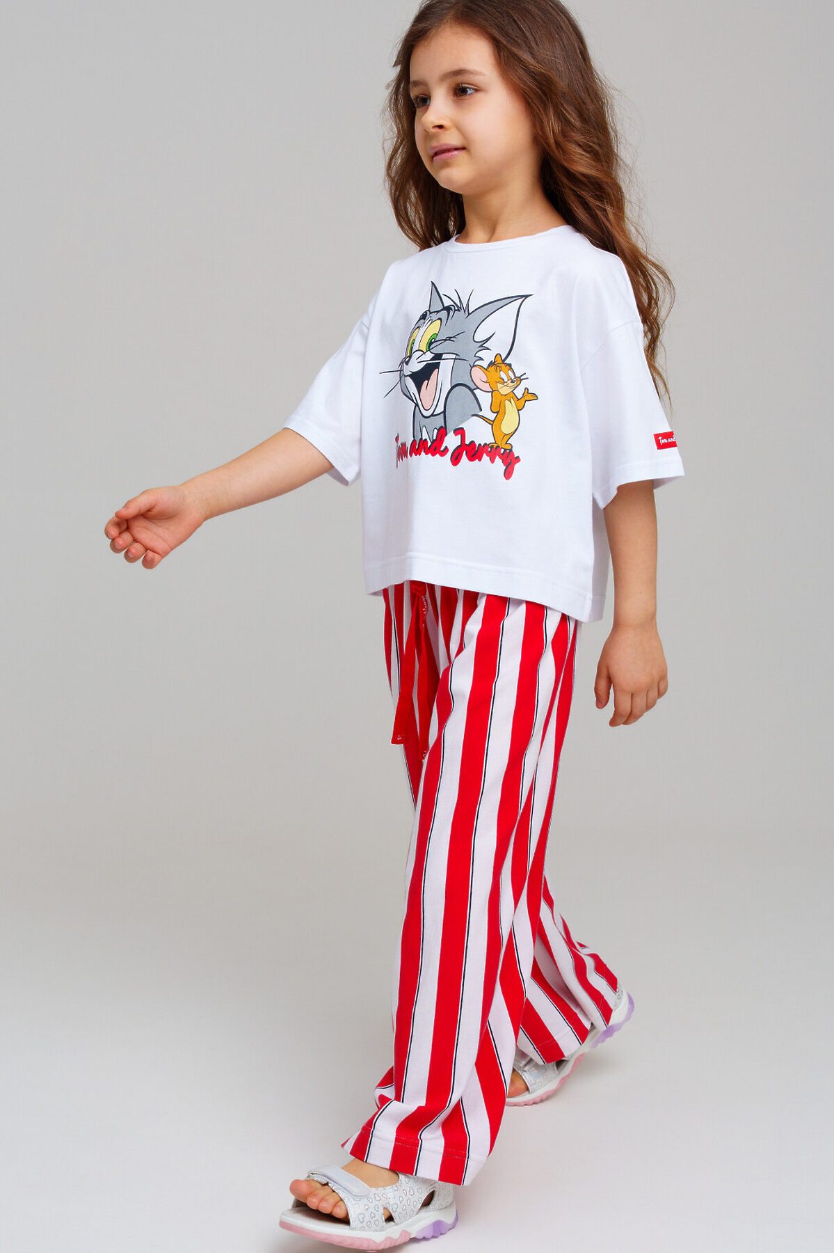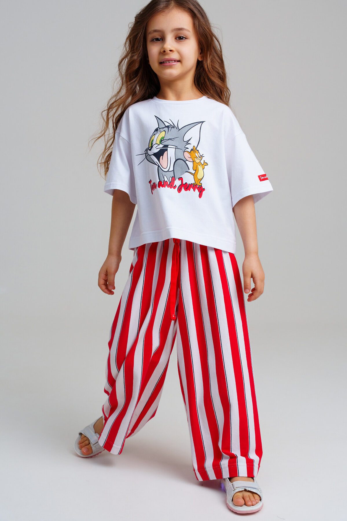 Брюки трикотажные для девочек PLAYTODAY, белый,красный