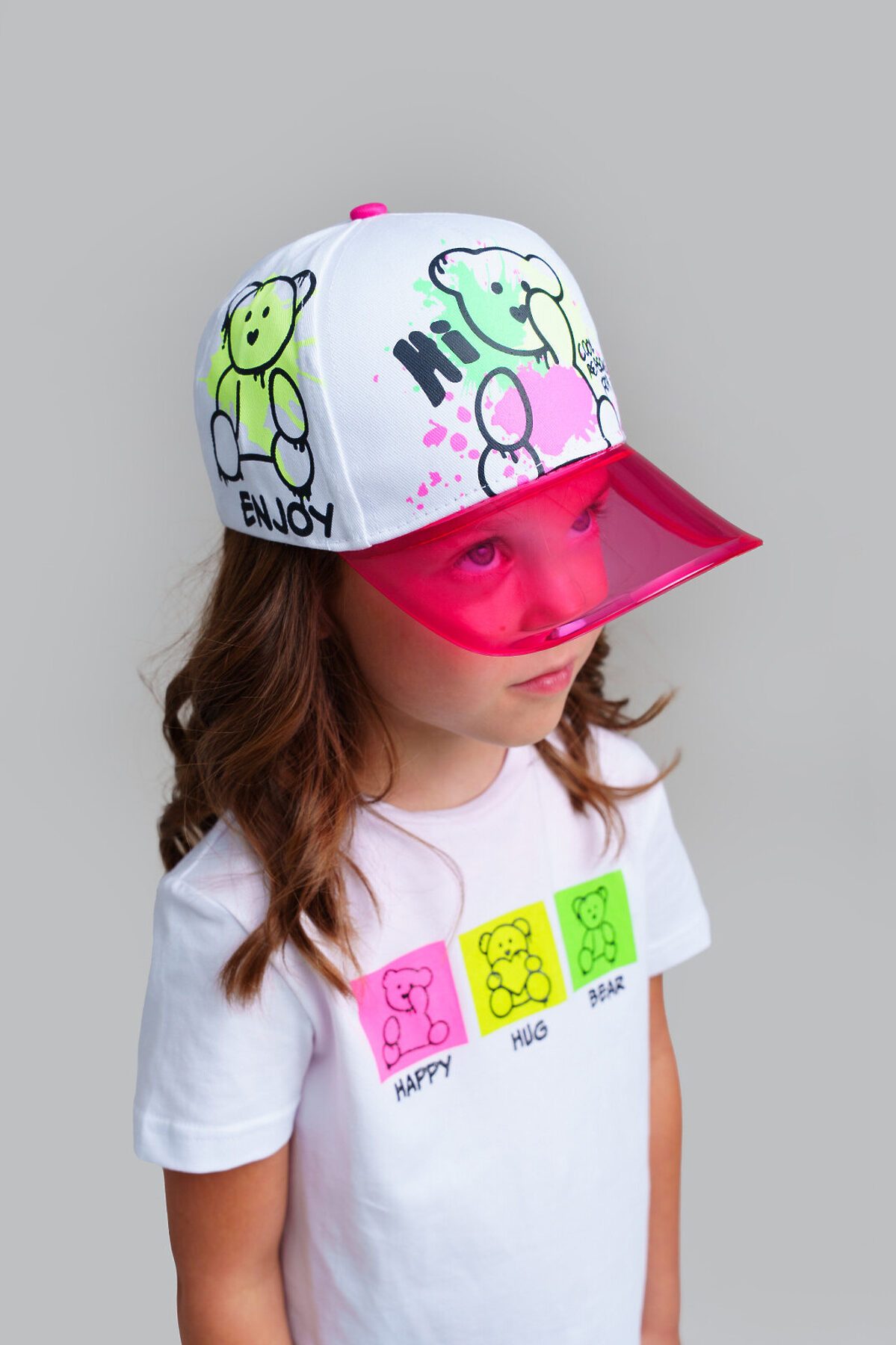 Кепка детская для девочки. Изогнутый прозрачный козырек защищает глаза от солнца и сохраняет лицо в тени. Регулировка ширины липучкой.