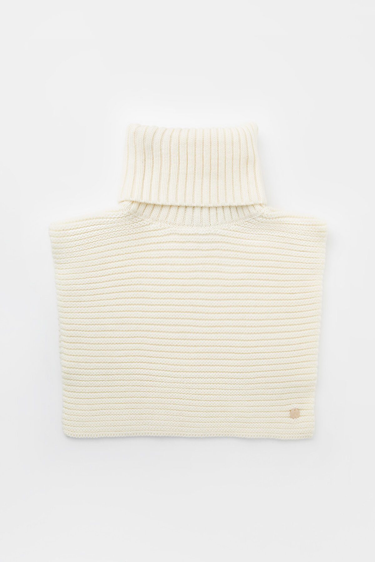 Уютная вязаная манишка с высоким воротником из шерсти и акрила. Шерсть в составе хорошо удерживает тепло, а волокна акрила делают изделие мягким и предотвращают деформацию и появление катышек. Лаконичный крой хорошо сочетается с верхней одеждой. Все вязаные изделия проходят дополнительную влажно-тепловую обработку по итальянской технологии, что гарантирует минимальную усадку во время носки. Сделано в России