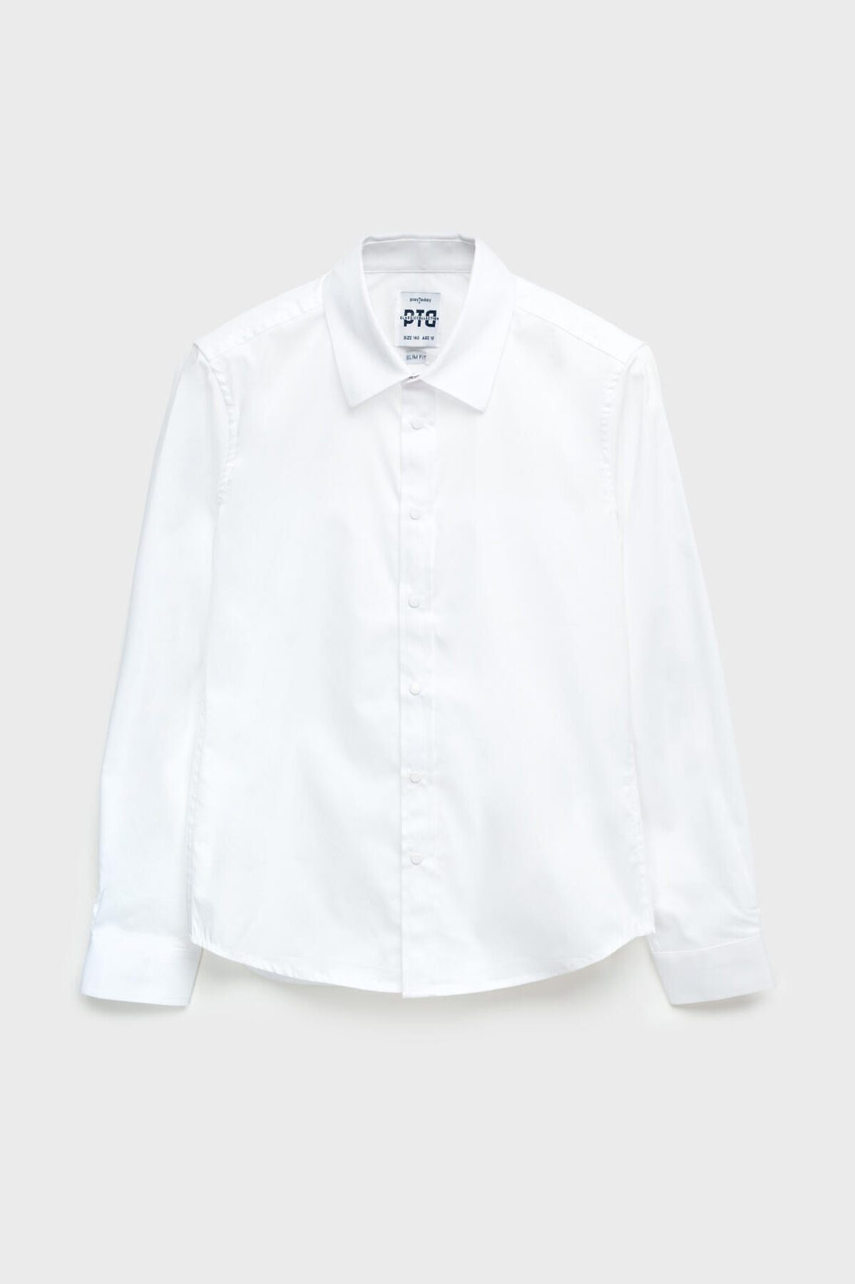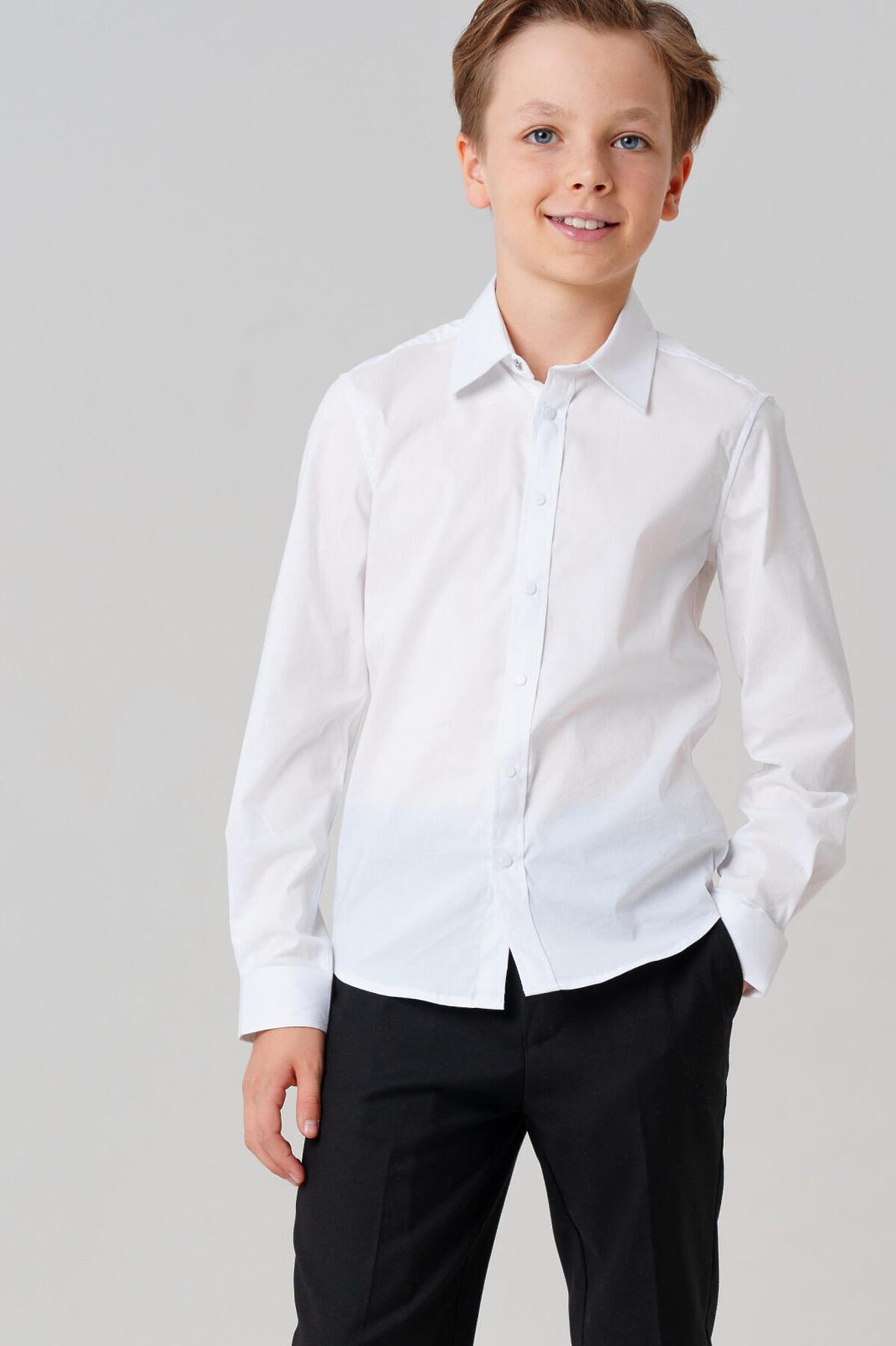 Сорочка текстильная для мальчиков (slim fit) Белая школьная рубашка для мальчика от бренда PlayToday — идеальный выбор на каждый учебный день и торжественный случай. Преимущества модели: + высокое содержание хлопка + приталенный силуэт + аккуратный воротник и планка на кнопках + универсальный белый цвет + легкий уход Эта строгая, лаконичная, элегантная рубашка для мальчика с длинным рукавом — настоящая классика школьного гардероба. Она легко впишется в повседневный образ и придаст нужную строгость для торжественных мероприятий: 1 сентября, классных собраний и выпускных. Универсальный дизайн, сдержанный стиль и продуманный крой делают эту рубашку незаменимой в гардеробе школьника. Ткань с высоким содержанием хлопка дарит коже комфорт в течение всего учебного дня — в классе, на перемене и по дороге домой. Модель не раздражает кожу, не перегревает — идеальна для активных подростков. Приталенная рубашка с длинным рукавом застёгивается на классические кнопки, а воротник держит форму даже после многократных стирок. Белый цвет делает её универсальной — её можно надеть и с жилетом, и под школьный пиджак из коллекции PlayToday, а также дополнить галстуком или бабочкой. Это не просто школьная рубашка — это база, с которой начинается любой продуманный образ.