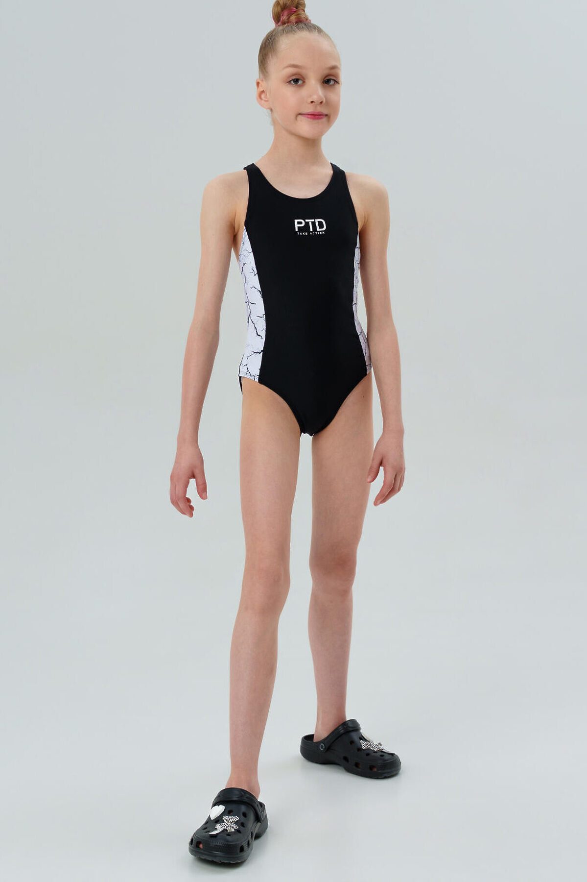 Слитный черный купальник для бассейна для девочки-подростка от PlayToday — идеальный выбор для тренировок и активного плавания! Преимущества модели: + хлороустойчивая ткань + быстросохнущий материал + анатомический крой + умеренная компрессия + универсальный черный цвет + прочная износостойкая ткань + легкий уход Этот модный слитный купальник для девочки-подростка создан специально для регулярных занятий плаванием, тренировок в бассейне и активного спорта. Материал с защитой от хлора устойчив к воздействию воды и солнца, не выгорает и не растягивается, сохраняя первоначальный вид даже после множества стирок и тренировок. Крой продуман до мелочей — анатомическая форма поддерживает тело, обеспечивая комфорт и полную свободу движений во время плавания, старта и поворотов. Умеренная компрессия помогает правильной посадке, не натирает и не мешает. Совет по стилю: дополните этот трендовый купальник удобной шапочкой для плавания, халатом и шлепками — и ваш юный спортсмен готов к покорению новых рекордов!