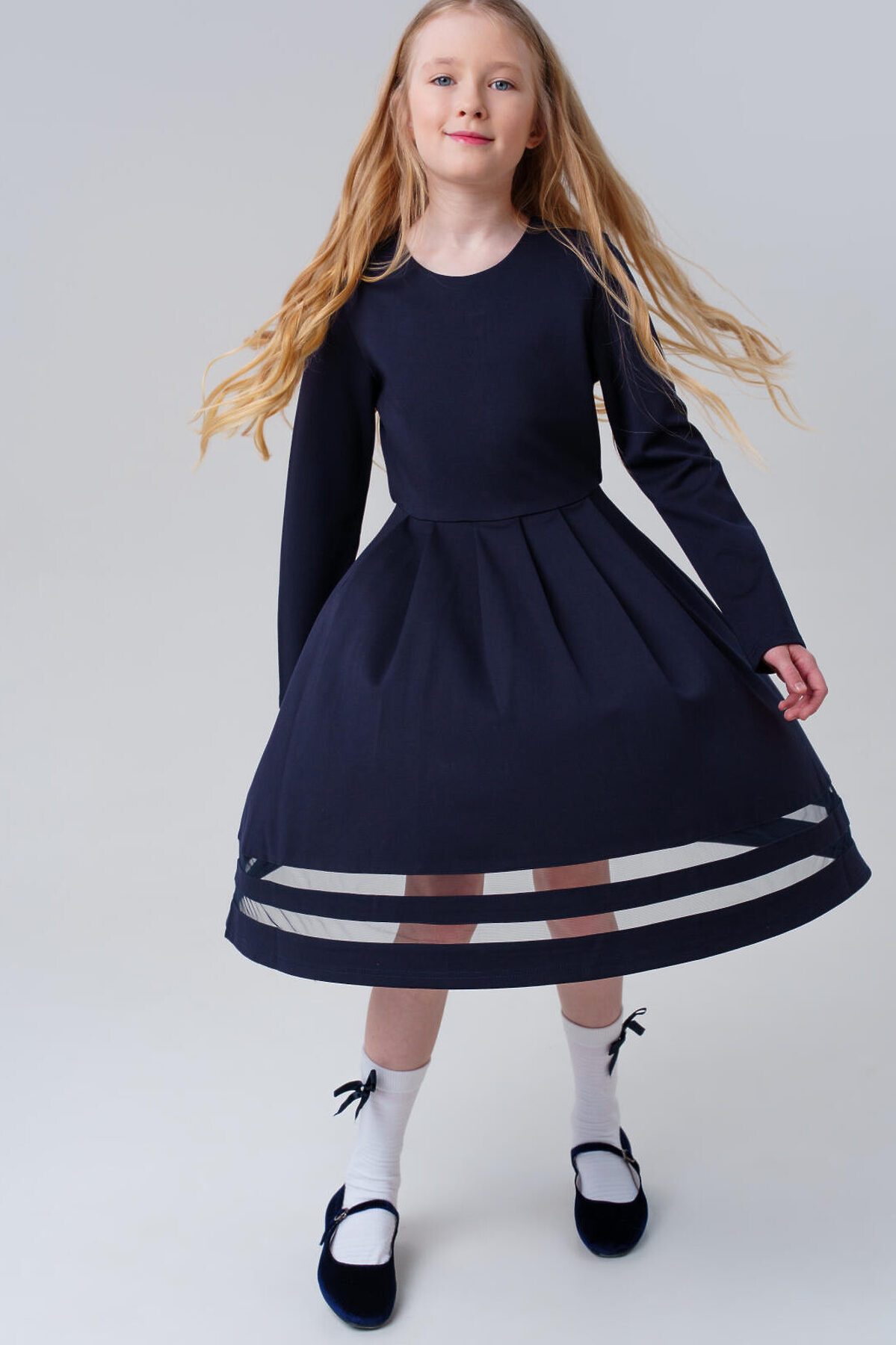 Классическое тёмно-синее школьное трикотажное платье для девочки подростка от PlayToday — стильный, комфортный и практичный элемент школьного гардероба. Идеально подходит для ежедневной учёбы, школьных мероприятий и торжеств, подчёркивая аккуратный и элегантный образ. Преимущества модели: + мягкий трикотаж с высоким содержанием вискозы (68%) + посадка Regular + удобная застёжка на молнию + элегантный декор из сетки + универсальный тёмно-синий цвет + легкий уход Это трикотажное подростковое платье для девочек выполнено из мягкого и приятного к телу материала с вискозой, который прекрасно держит форму, легко дышит и остаётся аккуратным на протяжении всего дня. Благодаря удобной посадке универсальное детское платье для школы не сковывает движений и позволяет ребёнку чувствовать себя комфортно и уверенно на уроках и мероприятиях. Стильная вставка из сетки добавляет образу лёгкости и делает это стильное трикотажное платье для подростков отличным выбором не только на каждый день, но и для особых случаев — 1 сентября, школьных праздников и торжественных событий. Совет по стилю: дополните элегантное синие платье для школьницы белыми колготками или гольфами от PlayToday и классическими туфлями — получится идеальный школьный комплект. В прохладную погоду образ гармонично дополнит трикотажный кардиган или жилет бренда.