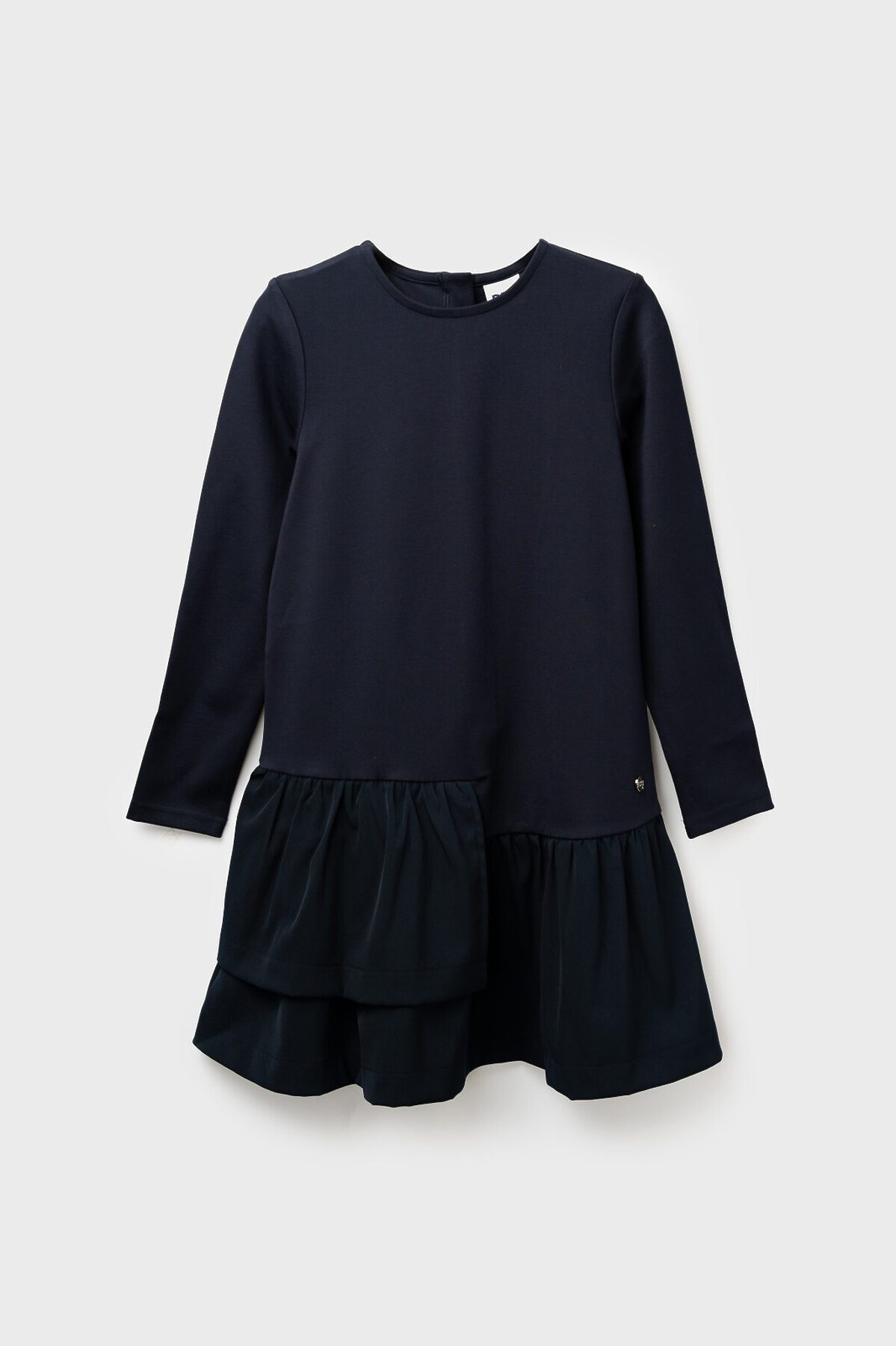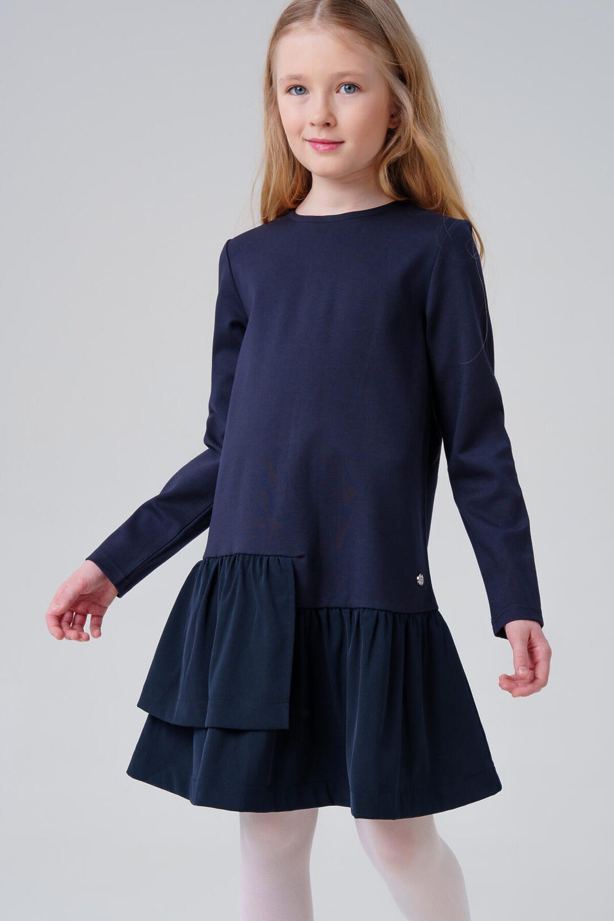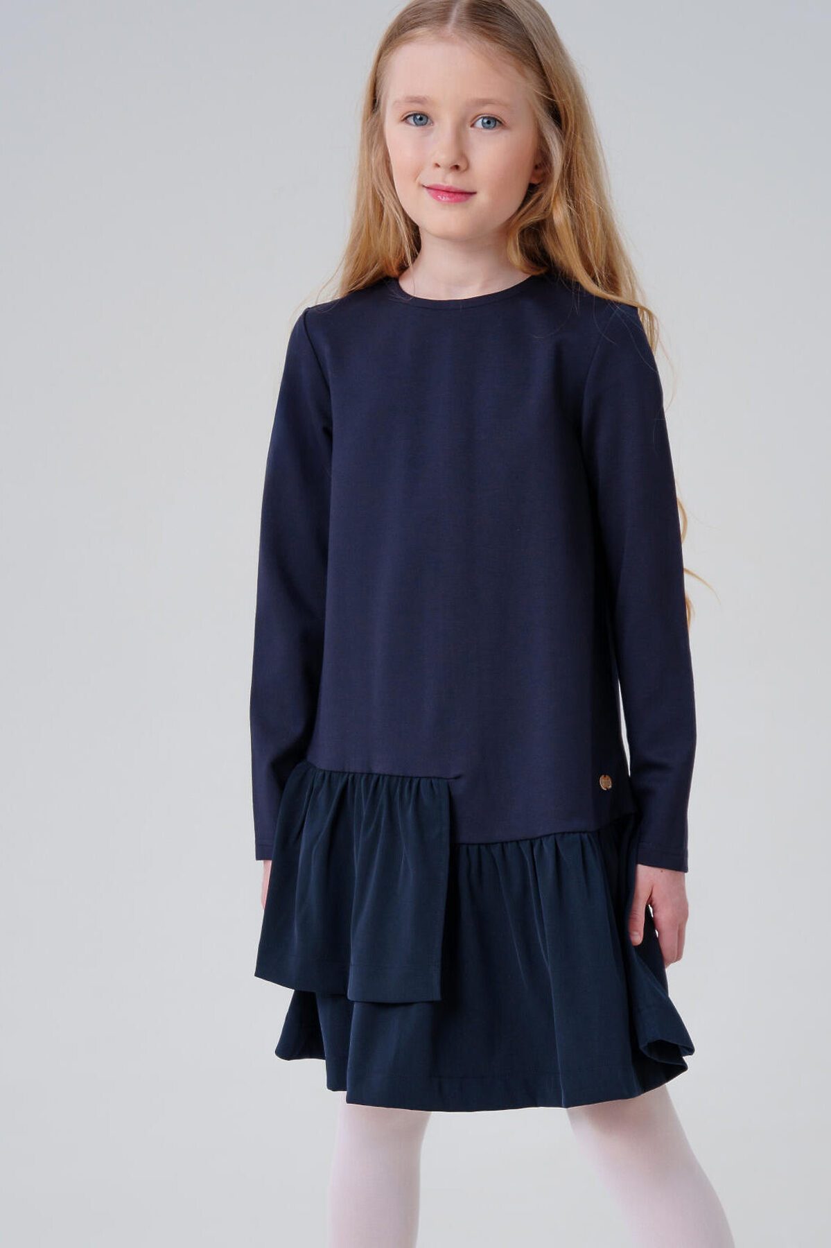 Классическое тёмно-синее школьное платье из трикотажа для девочки подростка от PlayToday — стильный и комфортный выбор для учёбы, торжеств и особенных дней. Модель идеально соответствует школьному дресс-коду и при этом остаётся удобной и современной. Преимущества модели: + комфортная посадка + верх выполнен из мягкого трикотажа + юбка из текстиля + потайная молния сзади + универсальный тёмно-синий цвет + легкий уход Это нарядное школьное платье для подростков сочетает комфорт и строгость классического образа. Верхняя часть выполнена из эластичного трикотажа, который мягко прилегает к телу и не стесняет движений, а элегантная юбка из текстиля придаёт образу структуру и изящество. Благодаря удобной молнии на спинке, строгое подростковое платье для девочек легко надевать даже без посторонней помощи. Базовое детское платье для школьницы подходит как для ежедневной носки, так и для торжественных мероприятий — линейки, концерты, праздники, 1 сентября или последний звонок. Совет по стилю: сочетайте это школьное темно-синие платье с классическими туфлями, балетками и жакетами от PlayToday — получится завершённый и аккуратный образ для любого школьного дня.