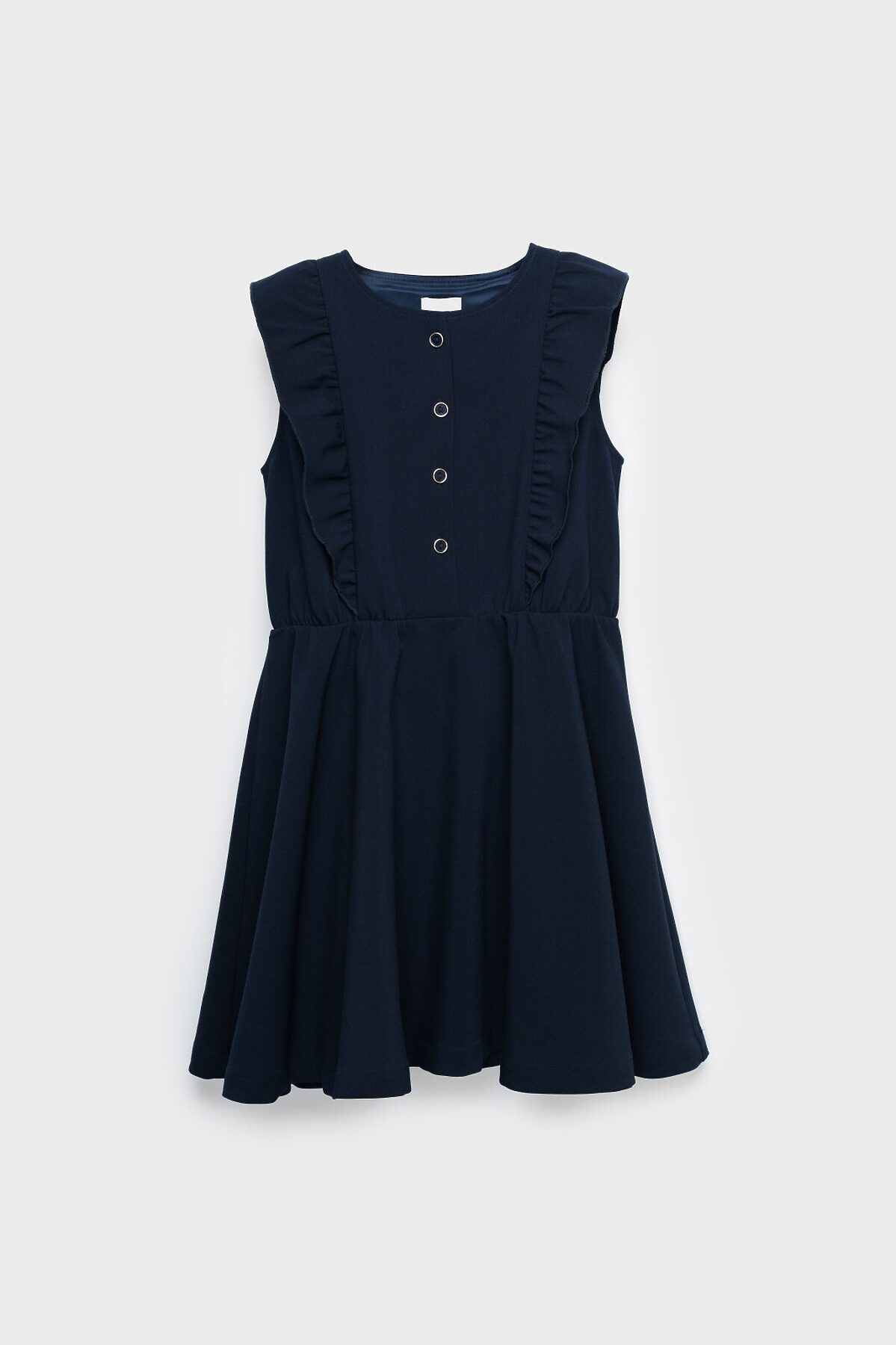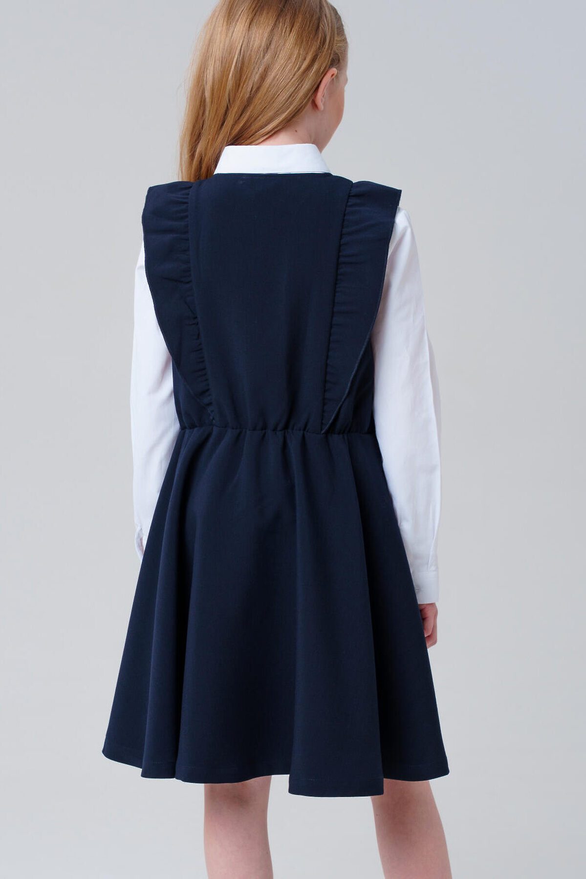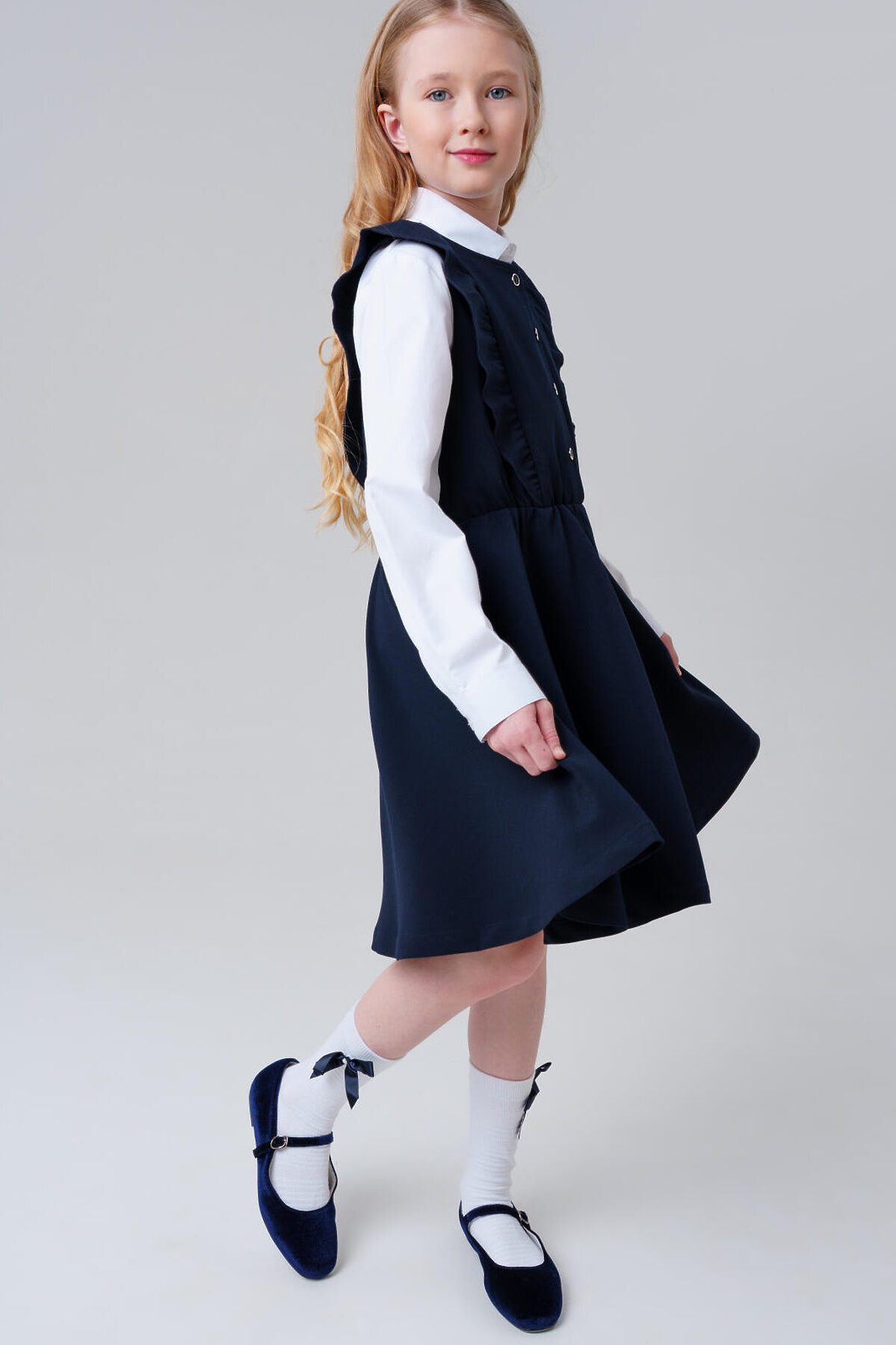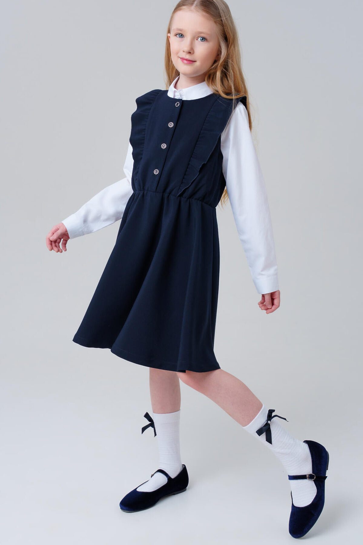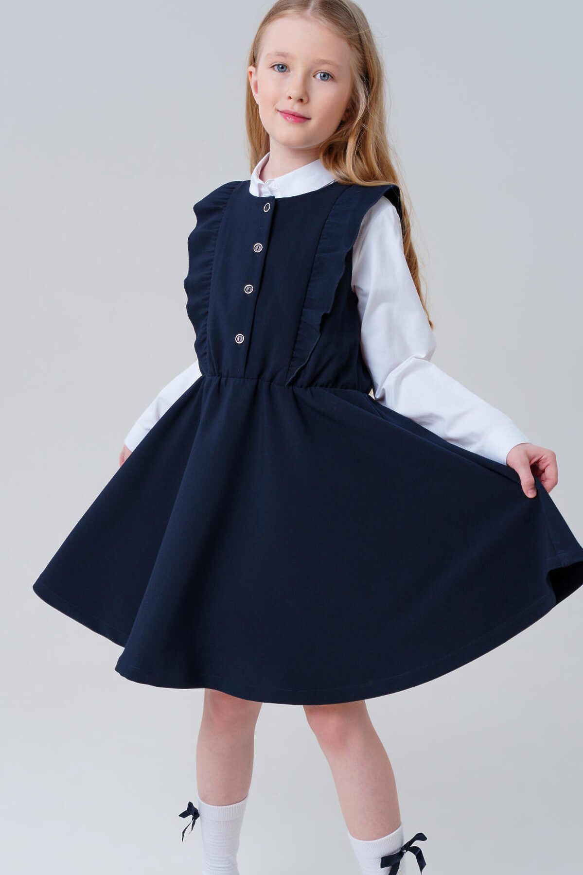 Классический тёмно-синий школьный текстильный сарафан non iron для девочки подростка от PlayToday — элегантное и удобное платье, которое идеально подойдёт и для повседневных уроков, и для торжественных школьных мероприятий. Такая модель — настоящая находка для гардероба школьницы: универсальная, практичная и стильная. Преимущества модели: + посадка Comfort + ткань non-iron + планка на пуговицах + элегантный декор из рюш + плотный текстиль + универсальный тёмно-синий цвет + легкий уход Этот синий подростковый сарафан для школы выполнен из приятного на ощупь материала, который не только красиво смотрится, но и удобен в носке в течение всего дня. Благодаря свойствам non-iron ткань не мнётся, не требует глажки и отлично сохраняет аккуратность даже после активных занятий. Универсальный школьный сарафан для подростков подойдёт как для начала учебного года, так и для будней в середине четверти.